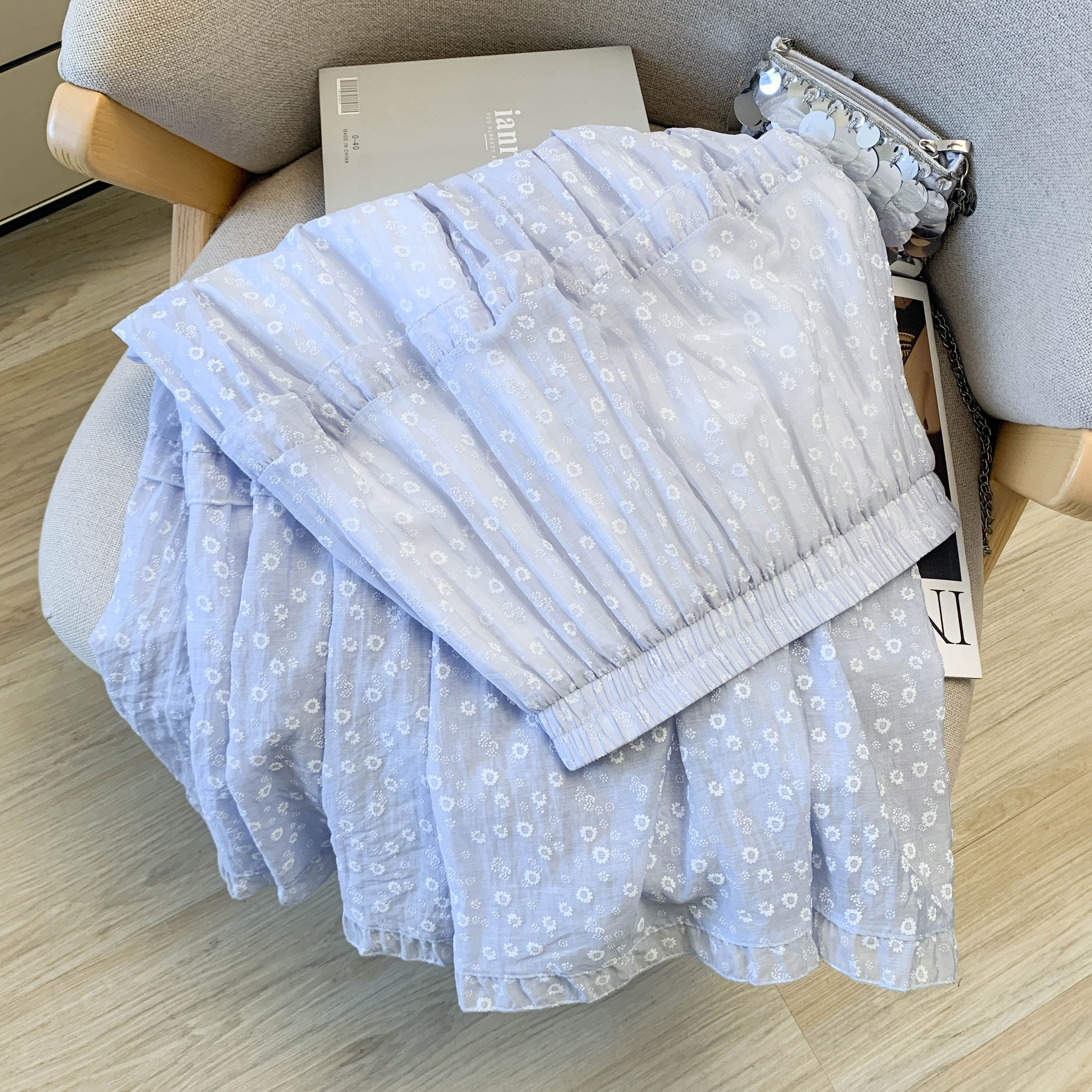 실사 2026 여름 새로운 패션 사실 투피스 세트 둘 착용 방귀 커튼 캐주얼 바지 다용도 스트레이트 9 포인트 와이드 레그 팬츠
