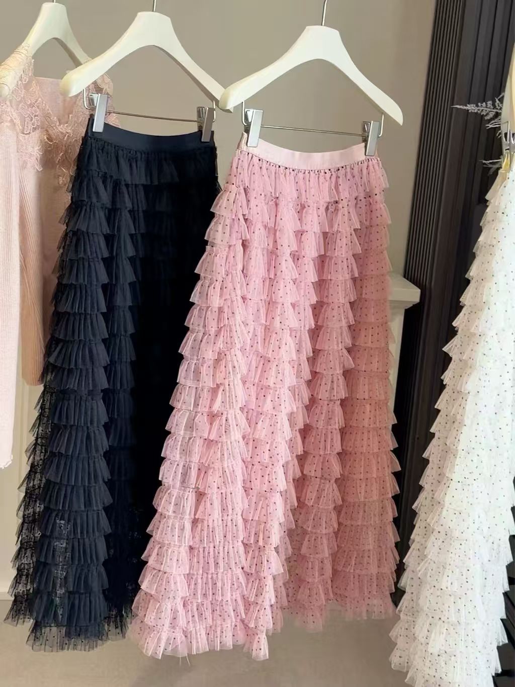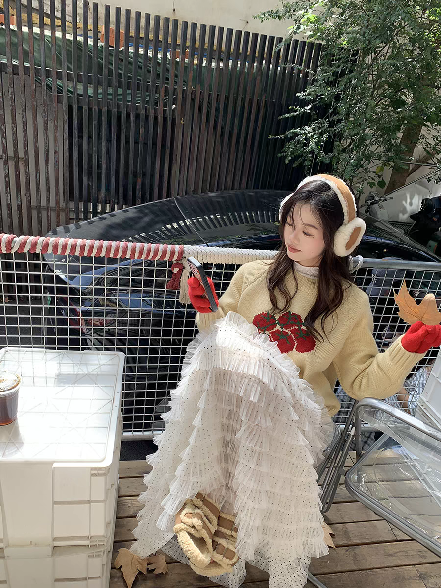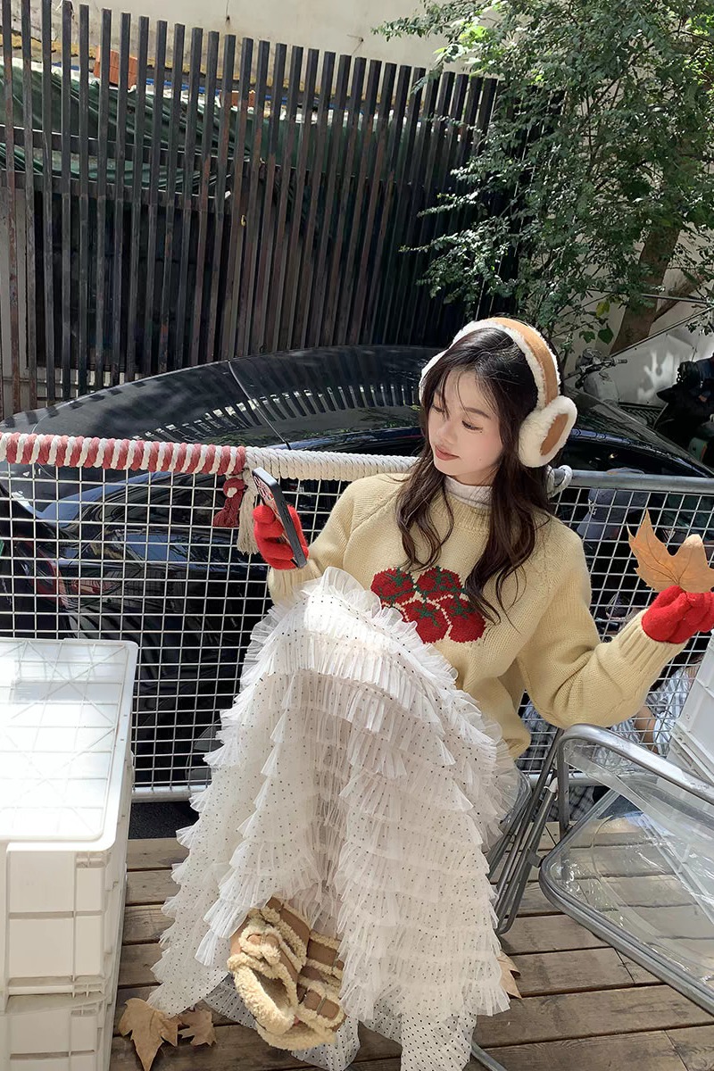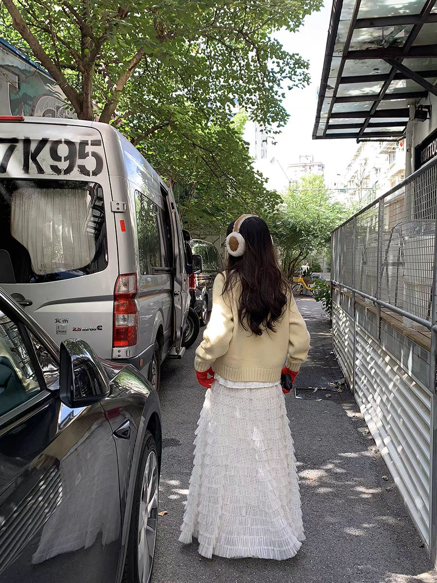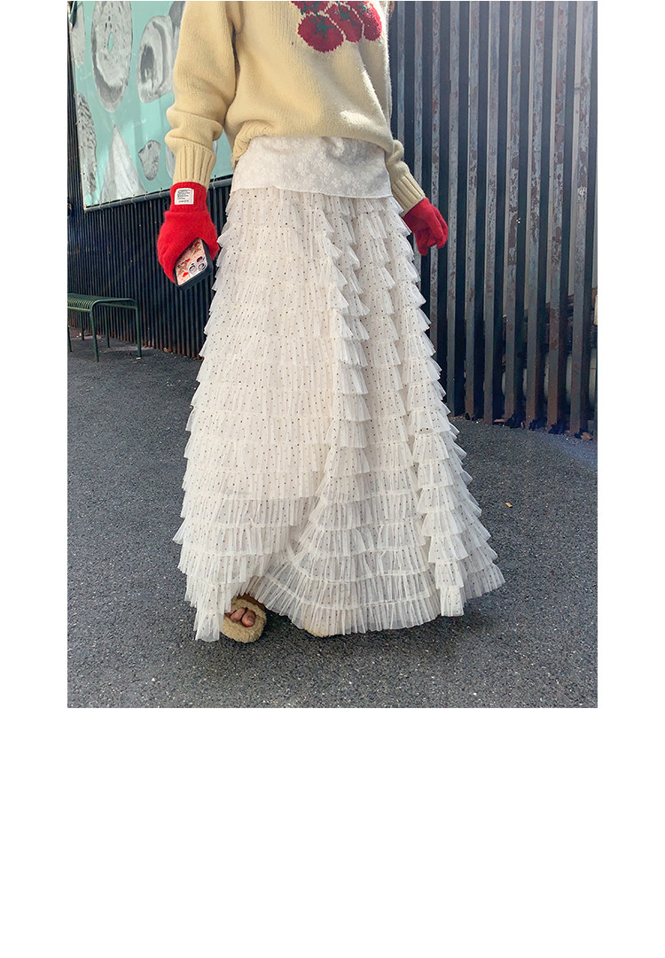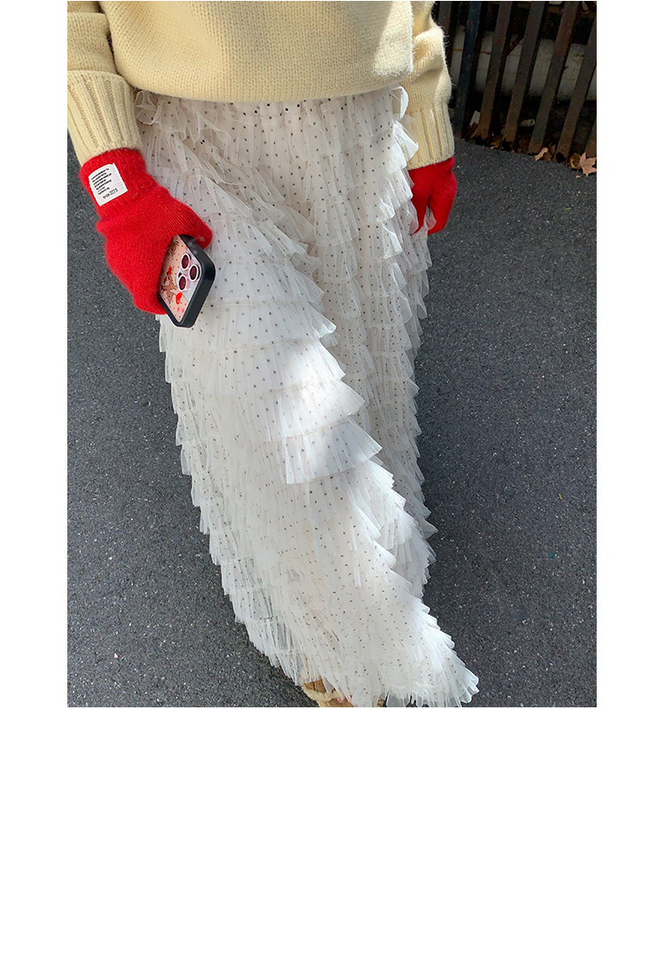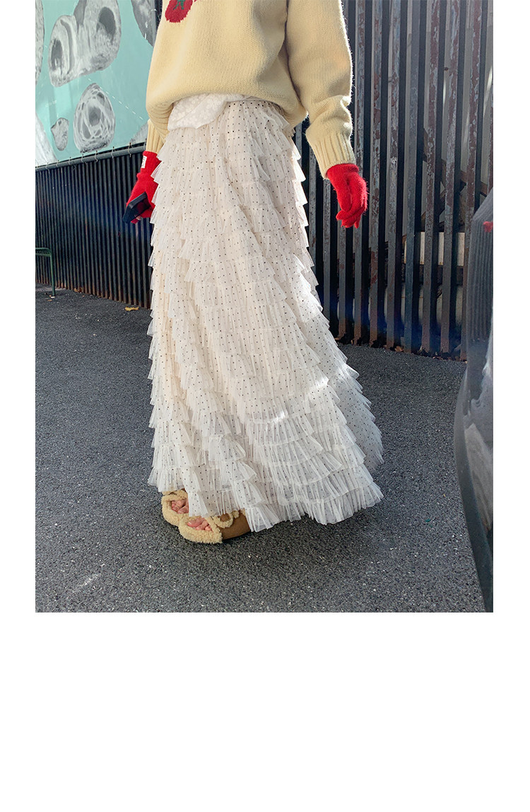 달콤한 도움말 도트 무늬 망사 케이크 드레스 2026 가을 요정 가스 퍼프 롱 코트 거즈 스커트 계층의 감각 한 마디 반신 스커트 여성