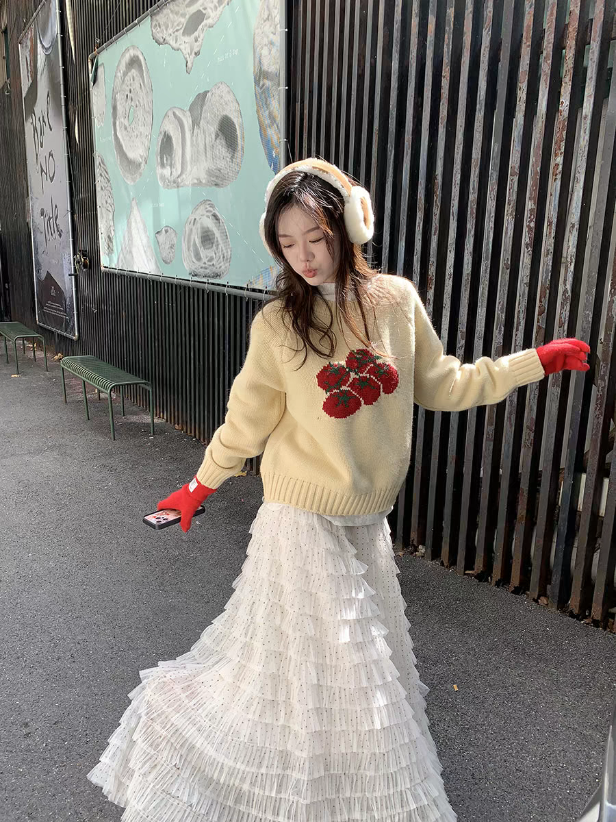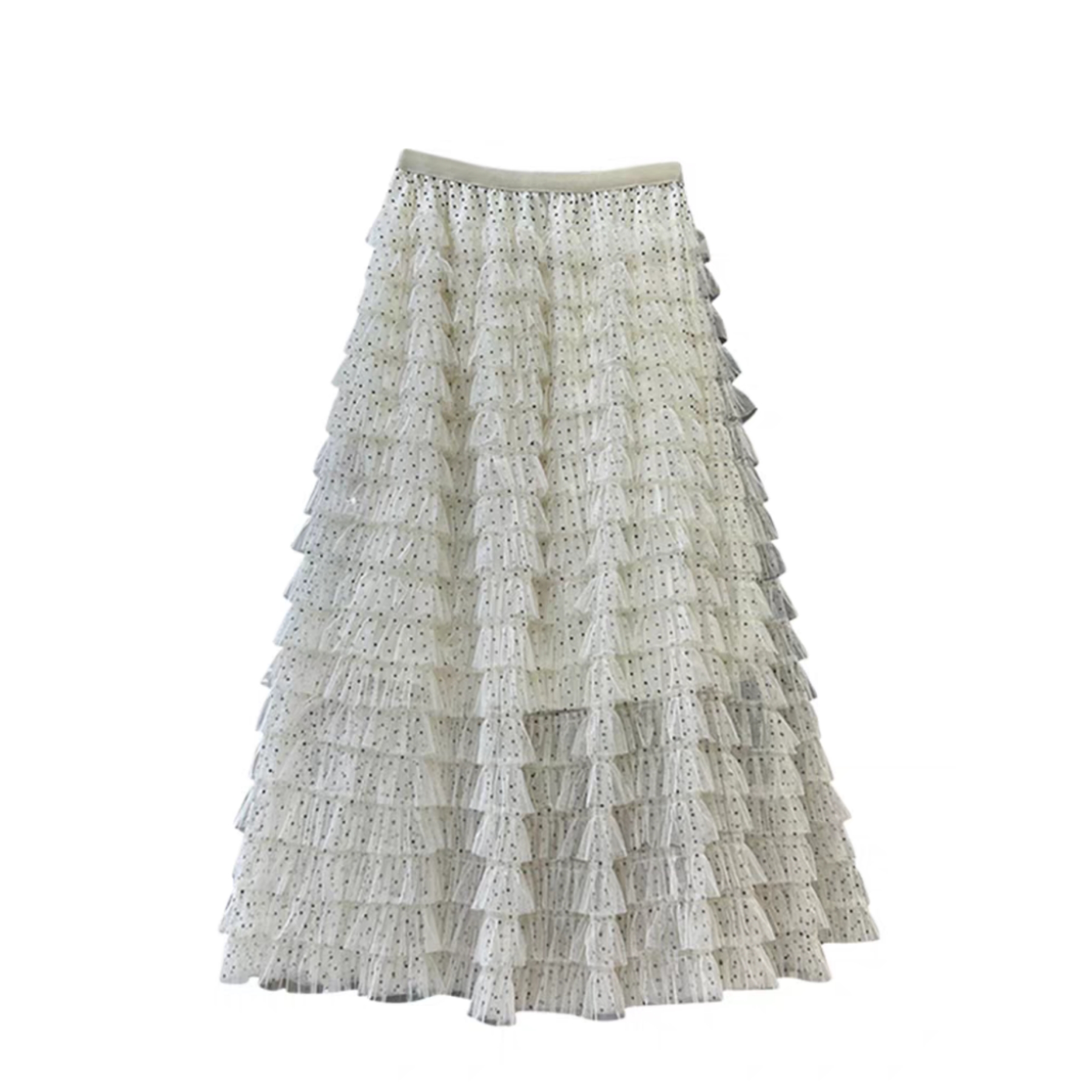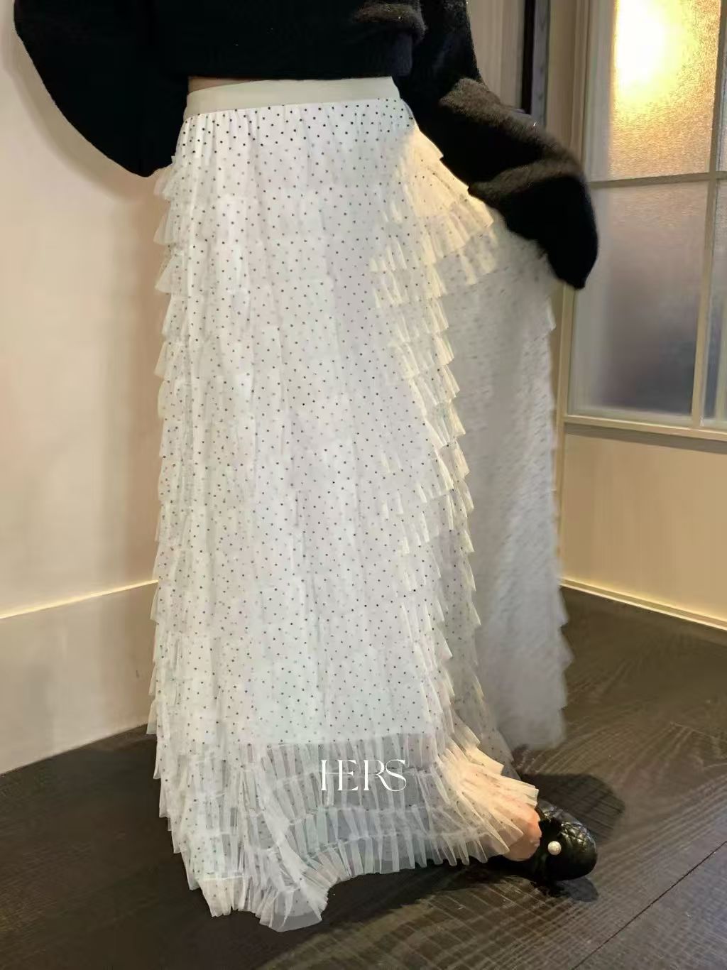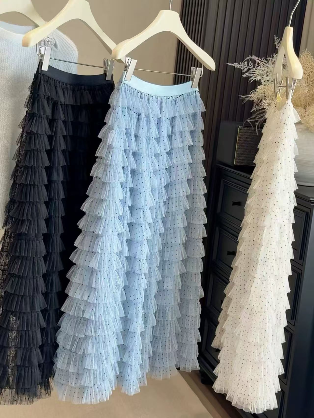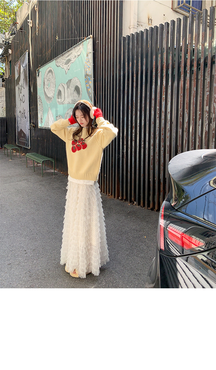 달콤한 도움말 도트 무늬 망사 케이크 드레스 2026 가을 요정 가스 퍼프 롱 코트 거즈 스커트 계층의 감각 한 마디 반신 스커트 여성