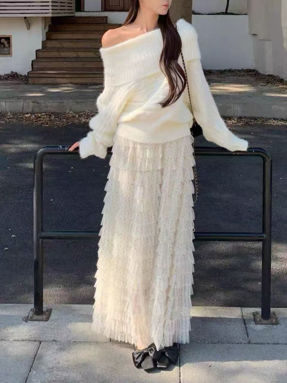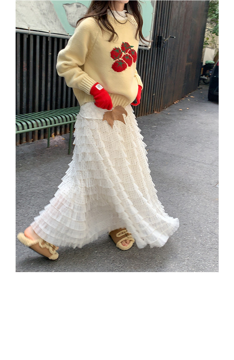 유럽 역 2026 봄 가을 하이웨이스트 망사 목이버섯 레이스 화이트 반신 스커트 여성 케이크 드레스 롱 코트 거즈 스커트