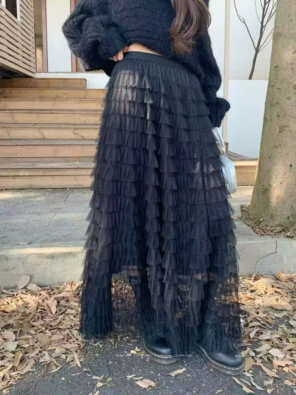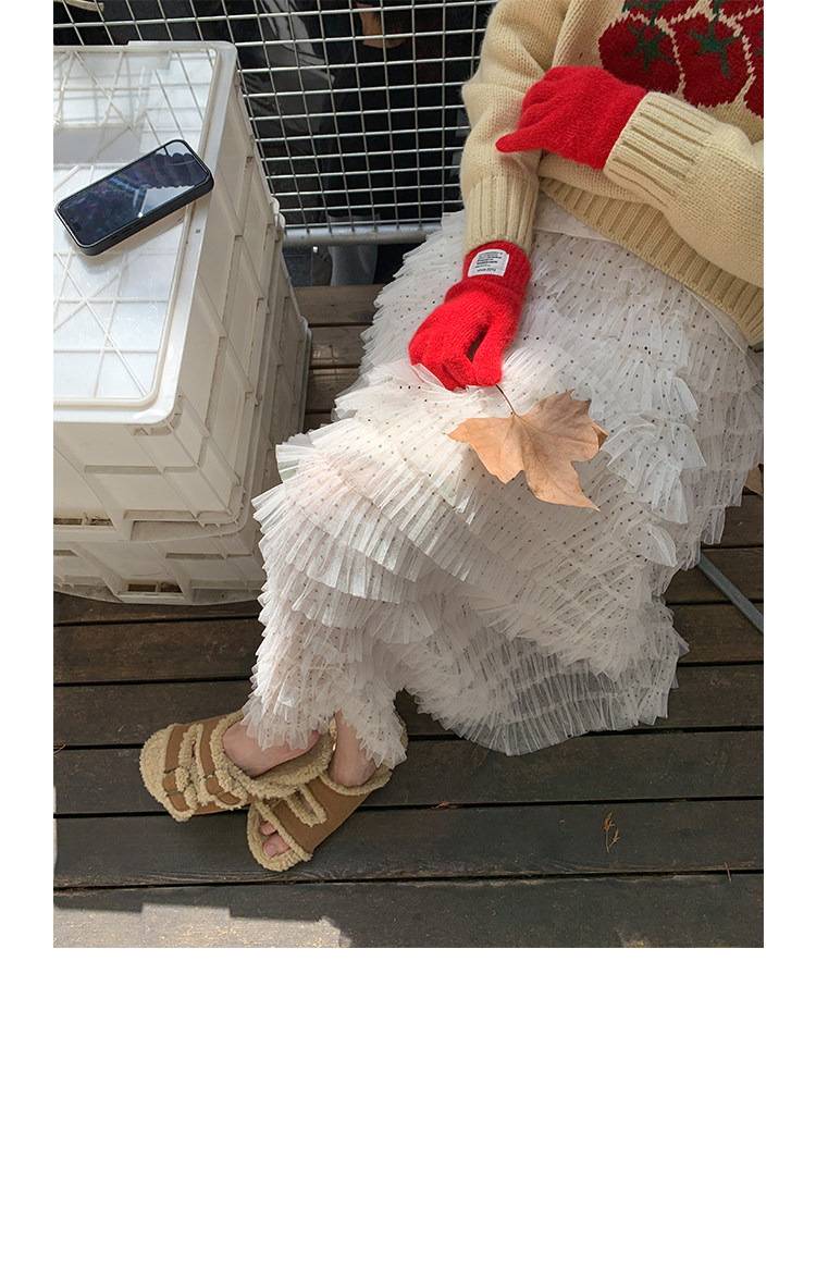 프랑스식 새로운 품격 단색 가을 겨울 요정 치마 다용도 하이웨이스트 슬림해 보이는 불규칙 디자인 센스 망사 반신 스커트