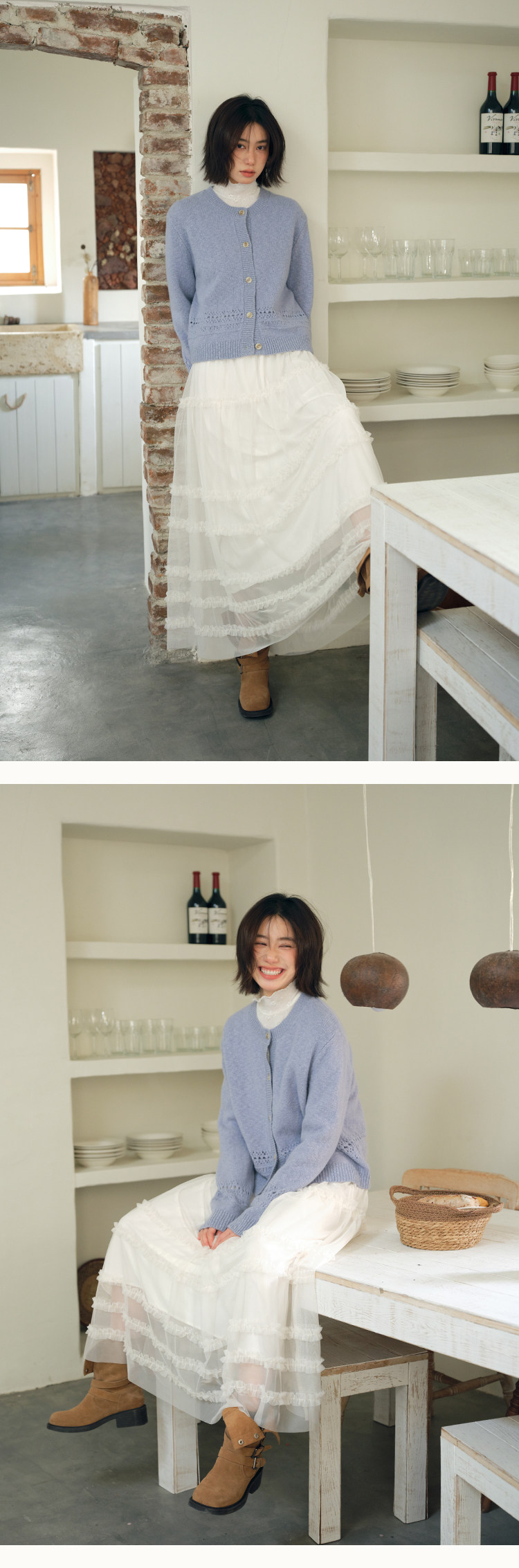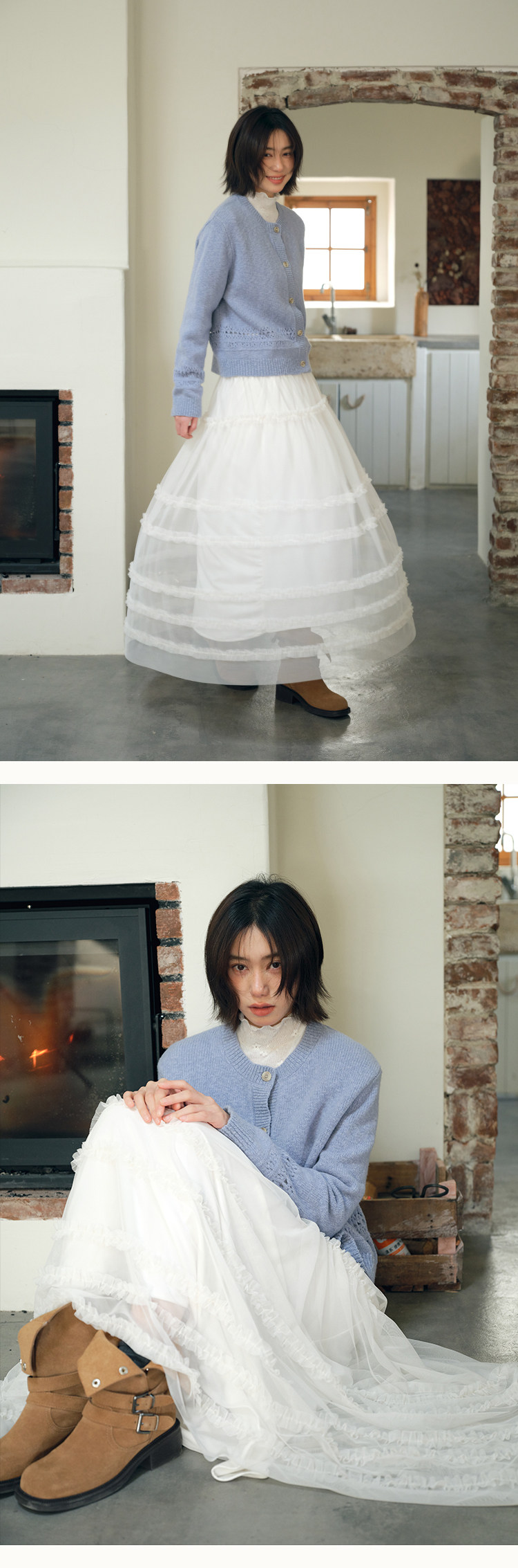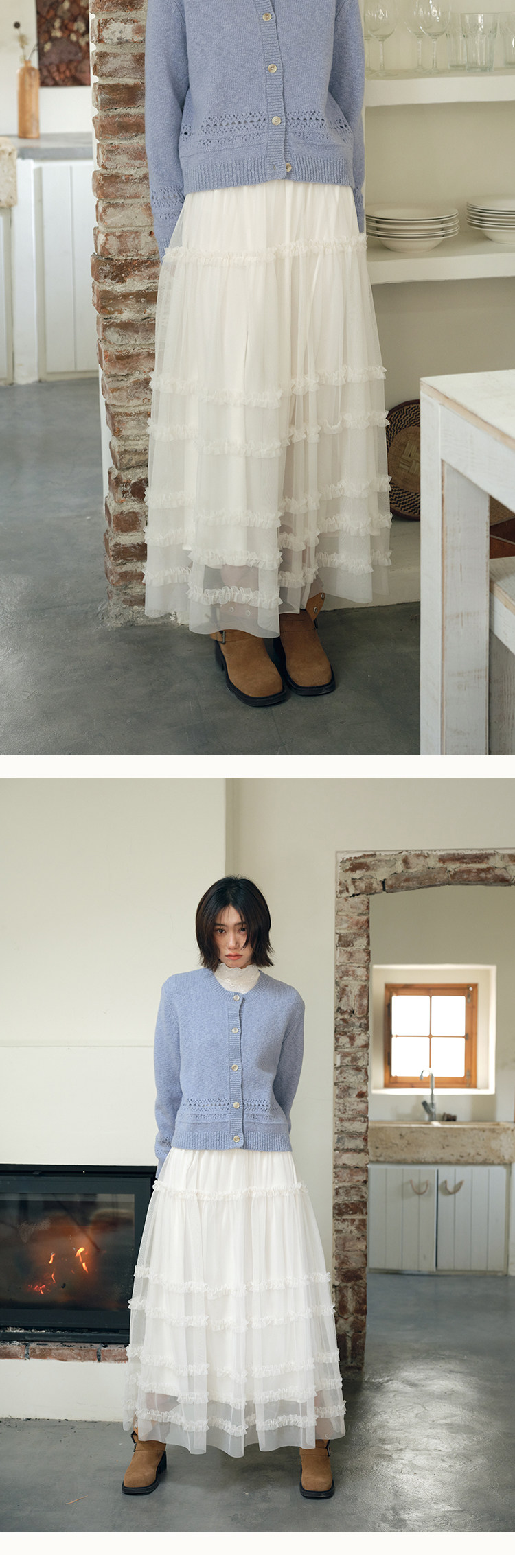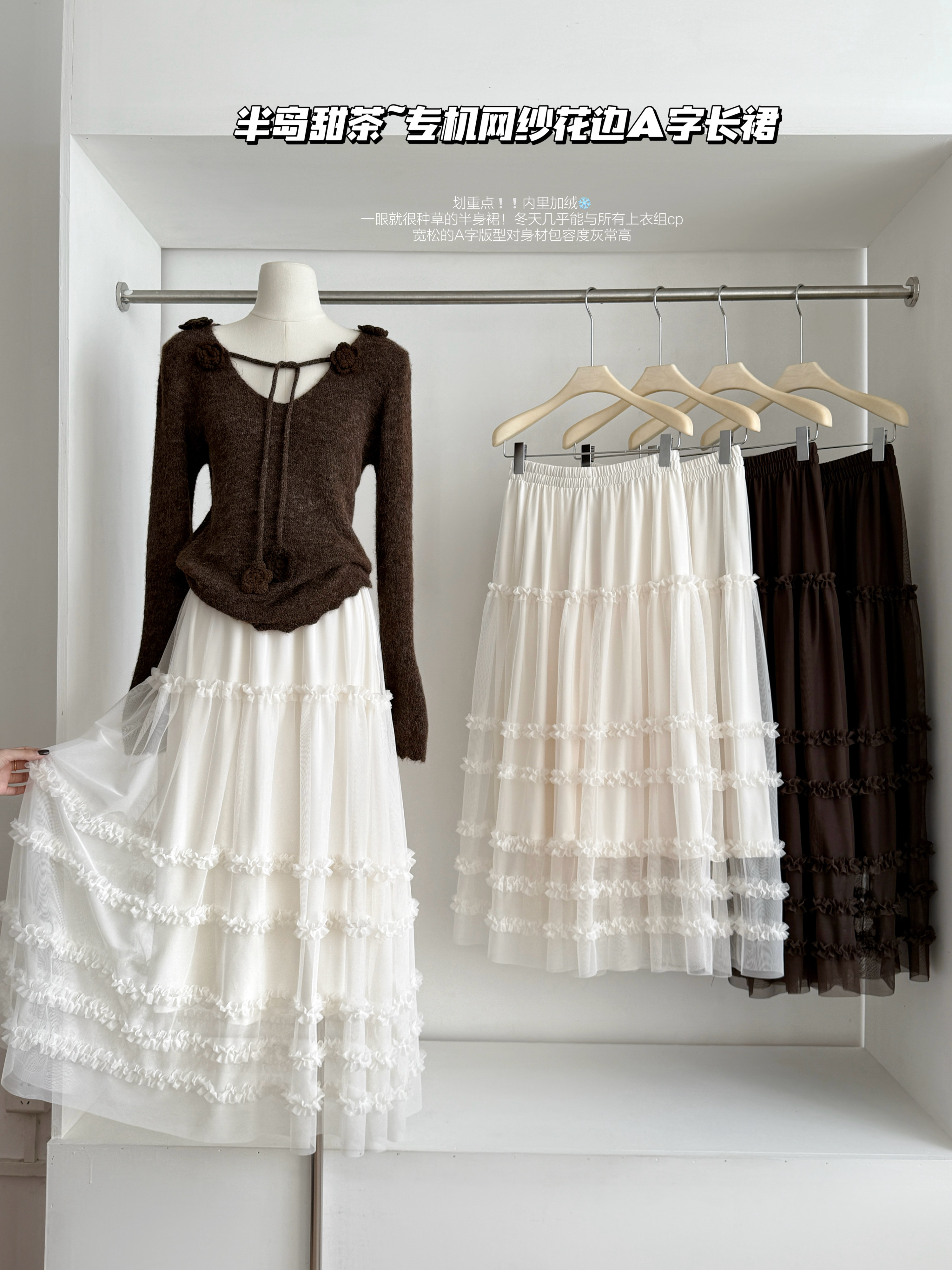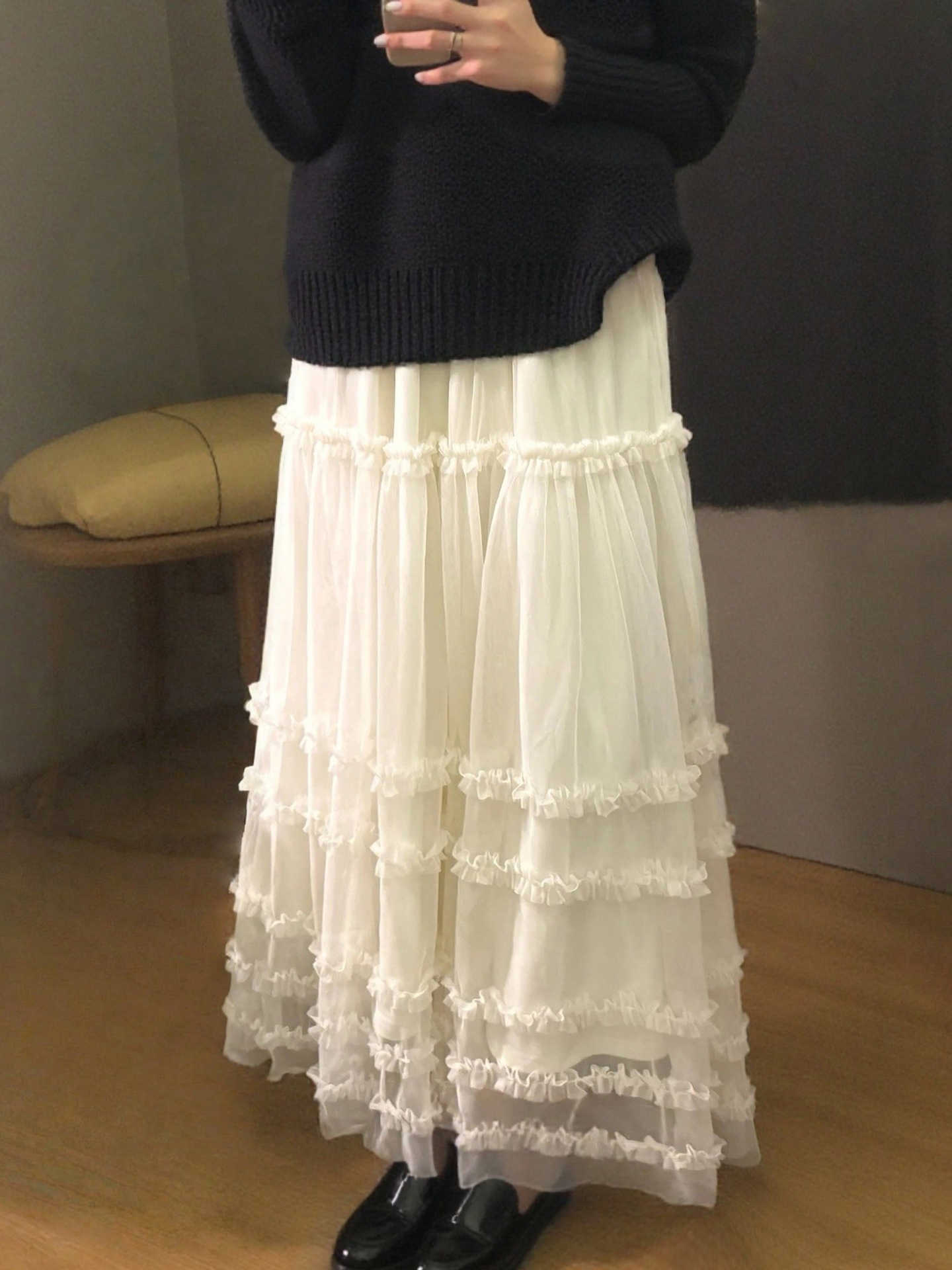 유럽 역 2026 봄 가을 하이웨이스트 망사 목이버섯 레이스 화이트 반신 스커트 여성 케이크 드레스 롱 코트 거즈 스커트