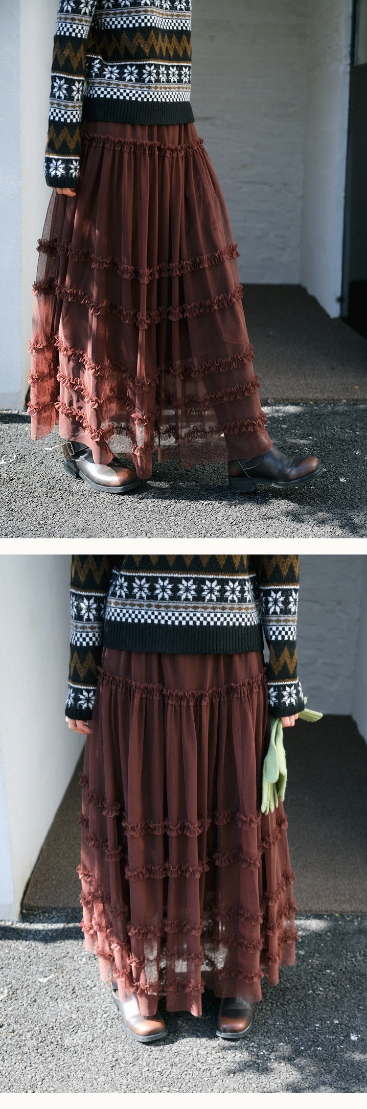 봄날 ootd 착용 가져 가라. 플리츠 스커트 반신 스커트 여성 열린 봄 2026 새로운 이른 봄 플리츠 롱 코트 장기 치마