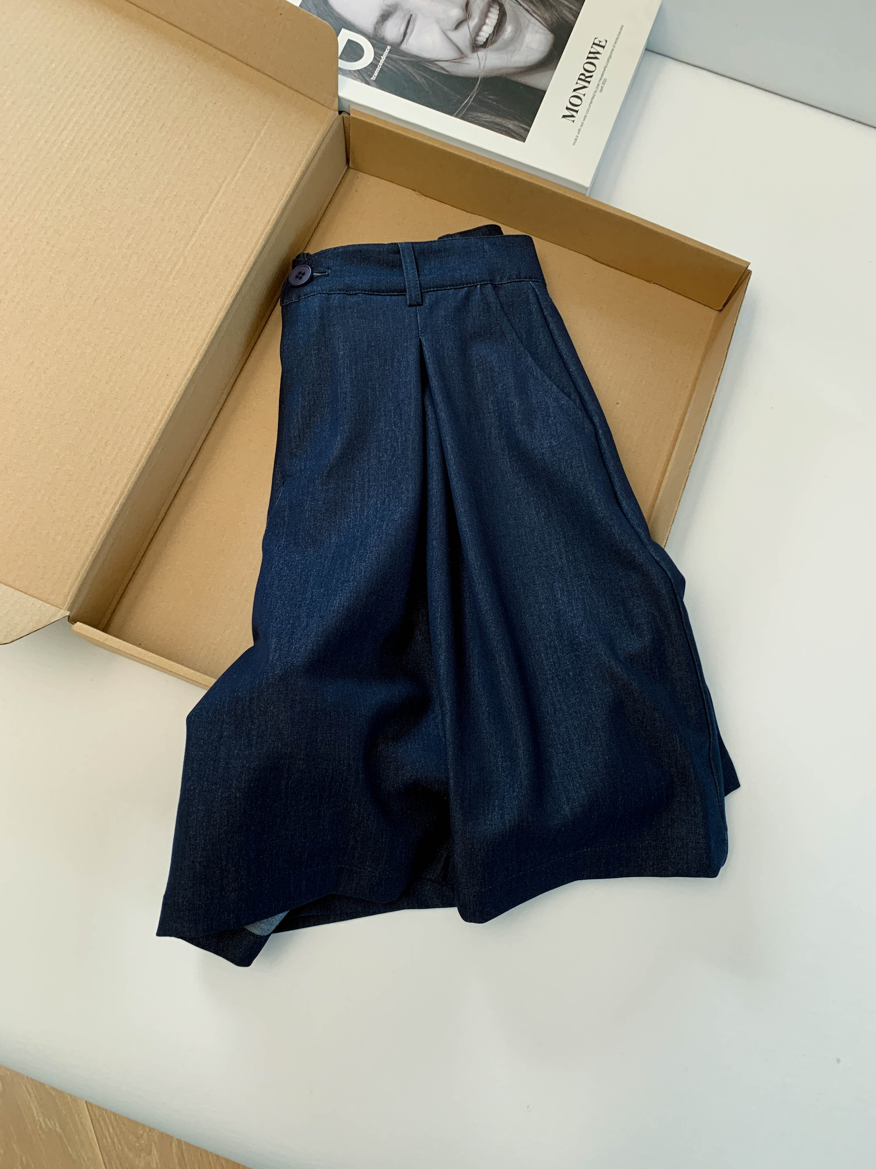 실사 2026 여름 새로운 패션 사실 투피스 세트 둘 착용 방귀 커튼 캐주얼 바지 다용도 스트레이트 9 포인트 와이드 레그 팬츠