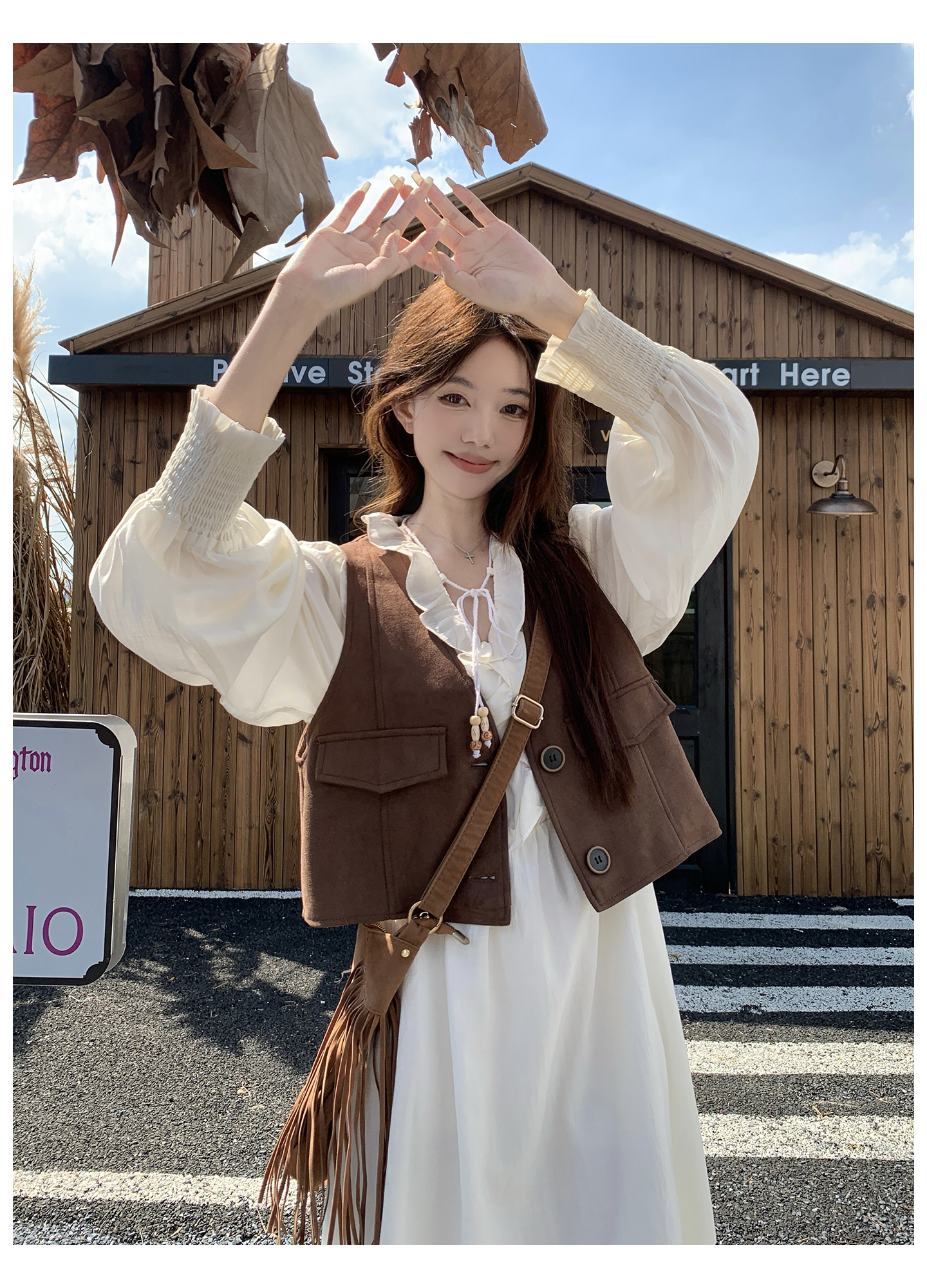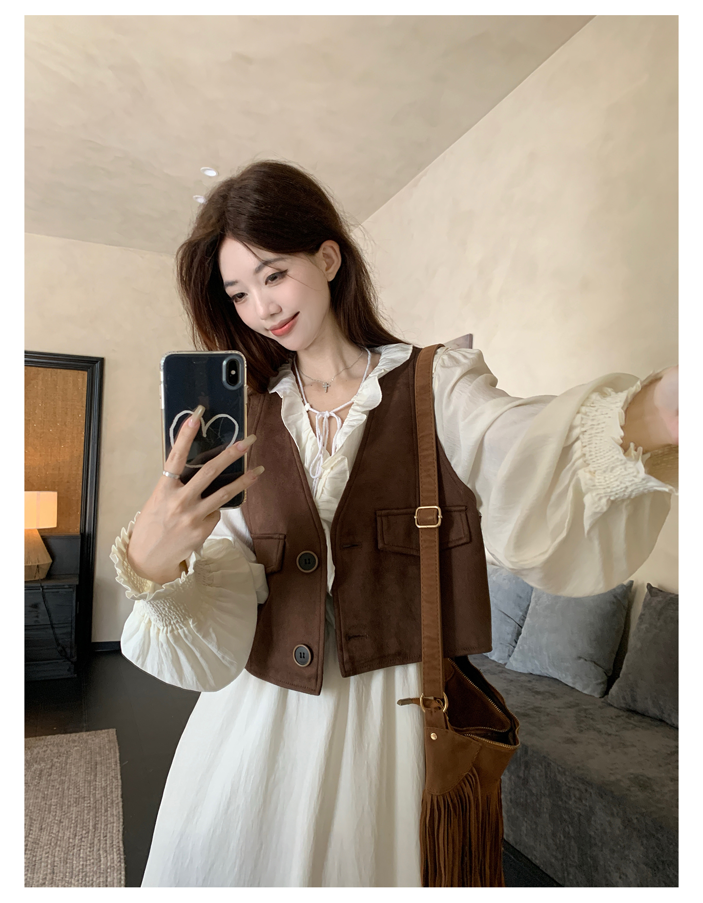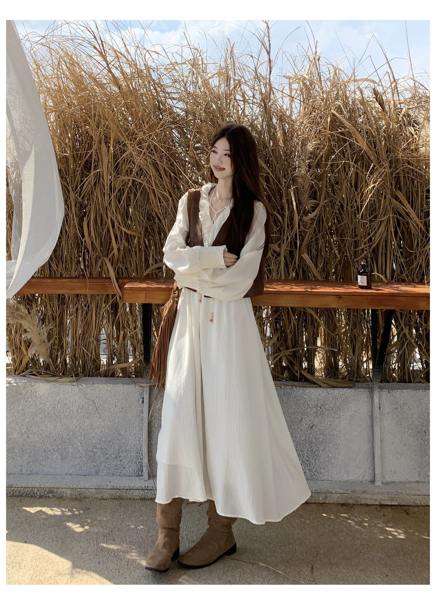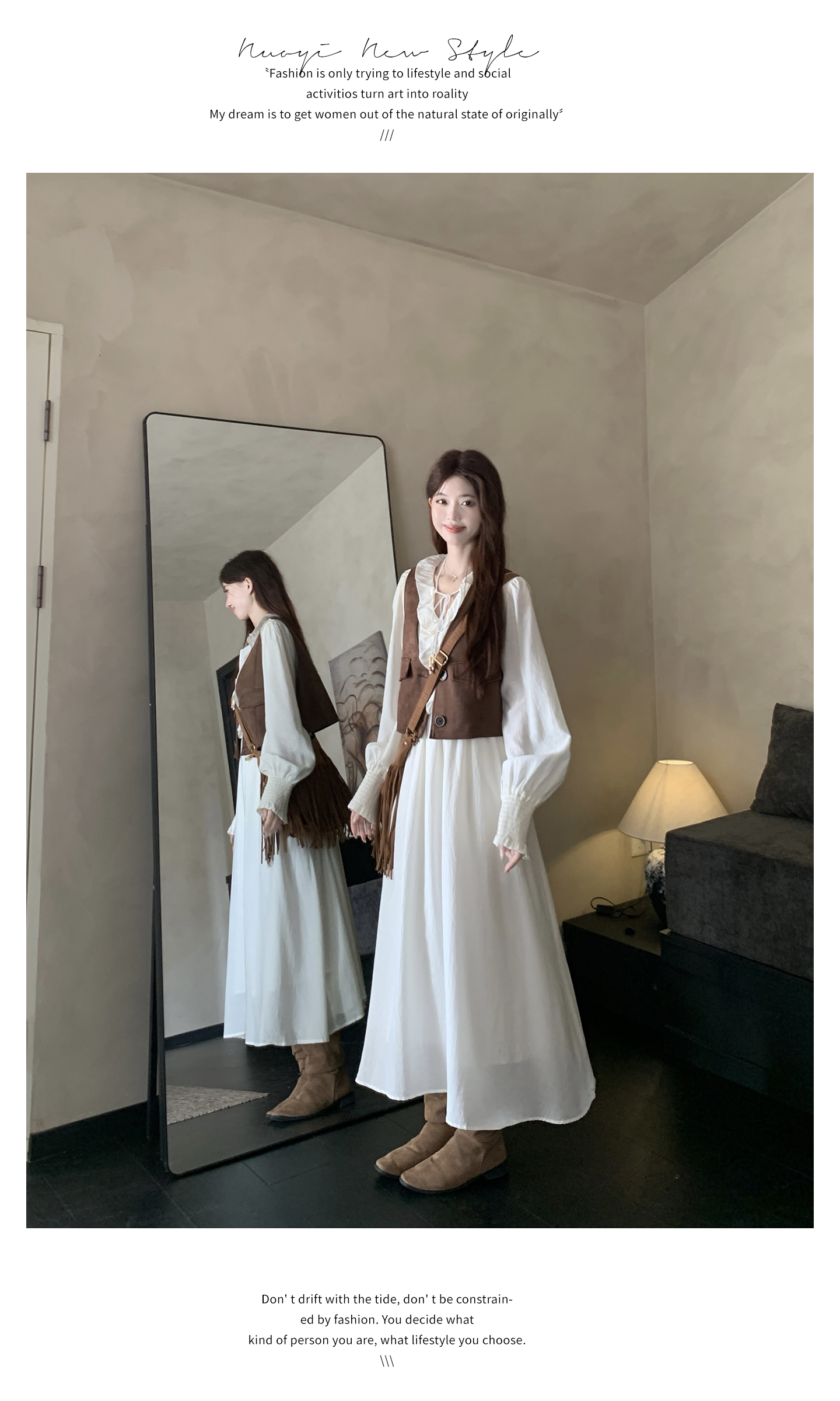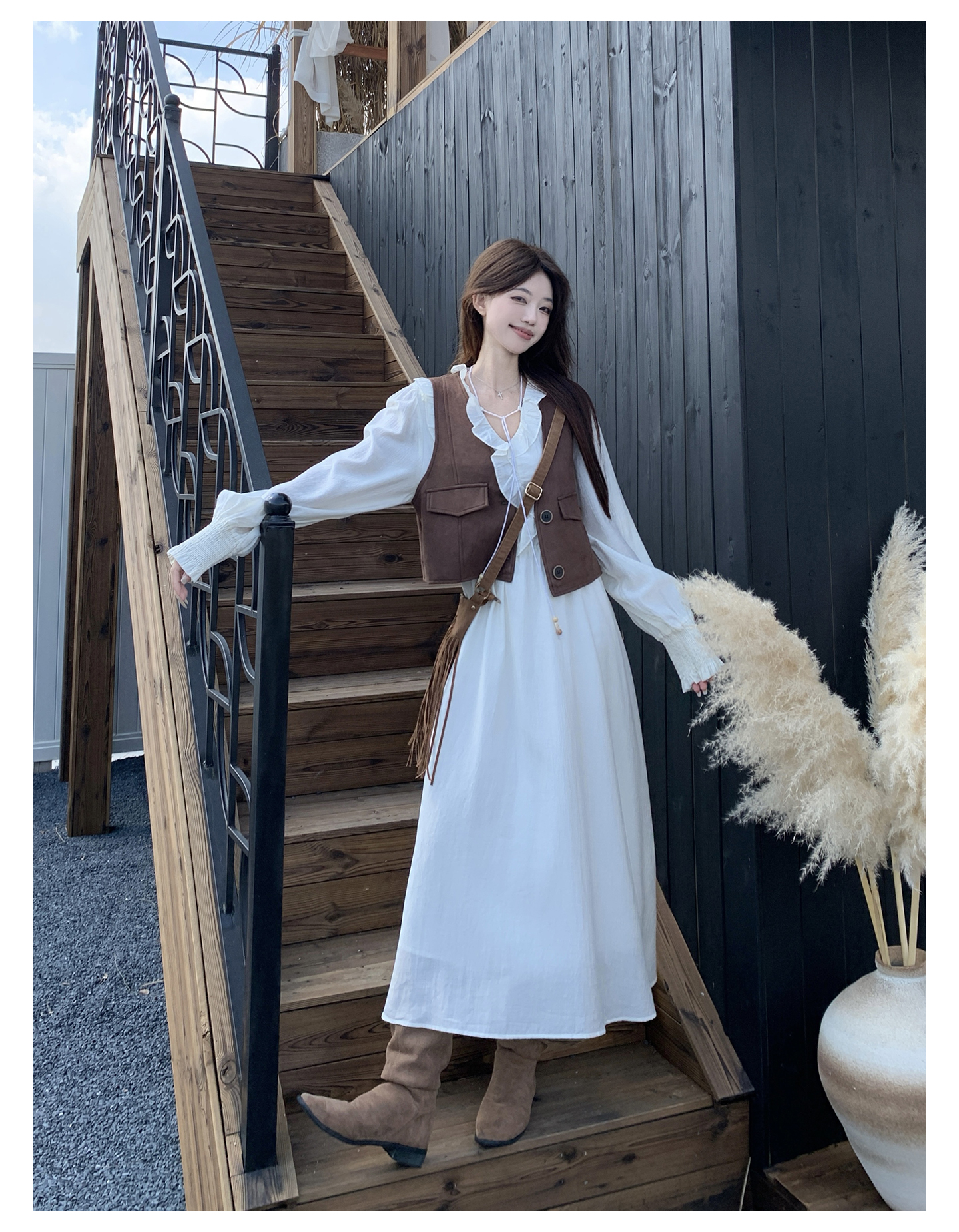 실사 스웨이드 원단 베스트 세트 여성 드레스 봄 한 부서 느긋한 바람 휴가 전원 빅 사이즈 투피스 세트
