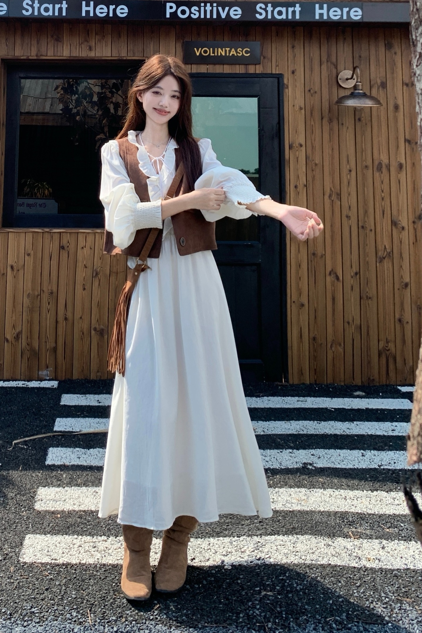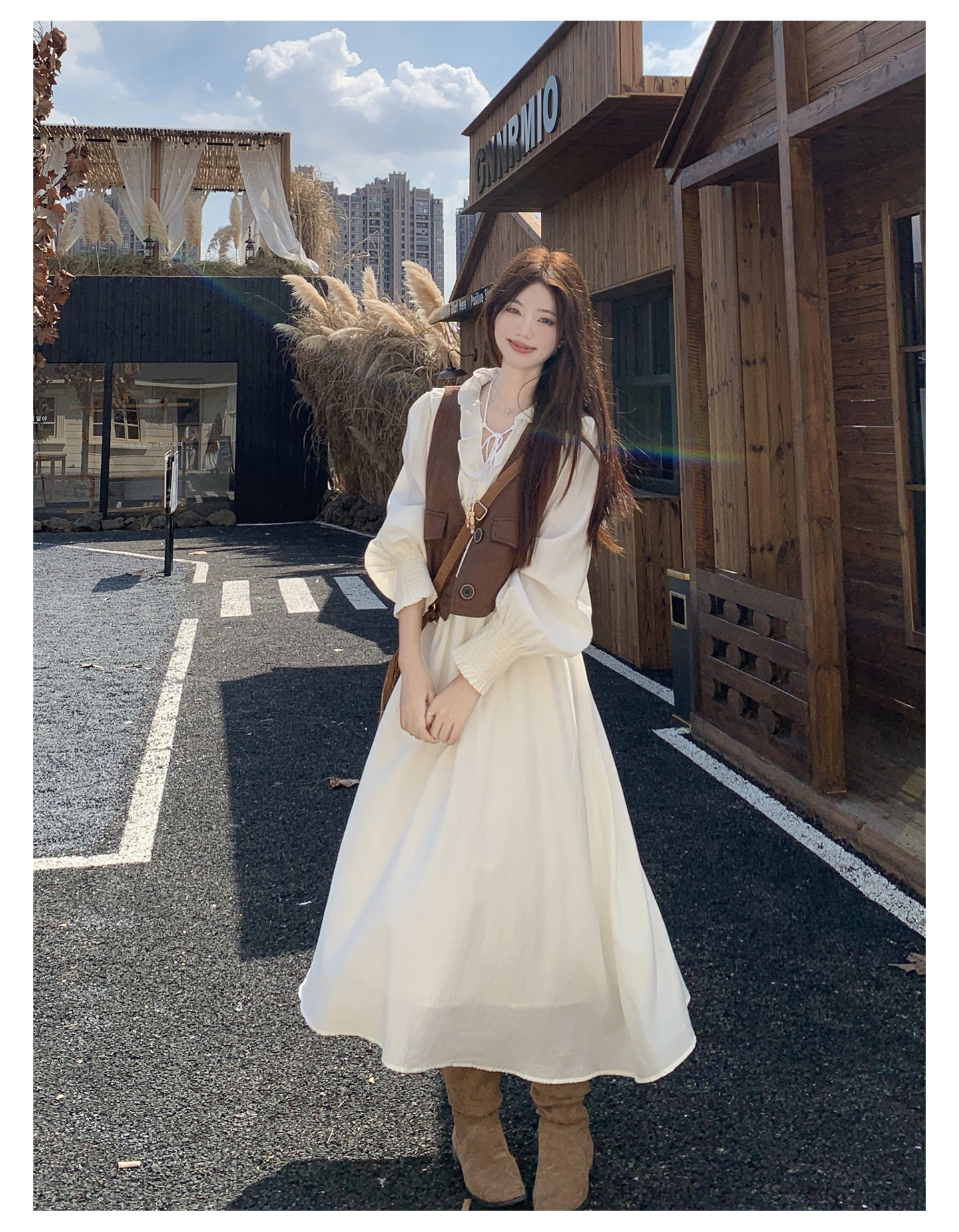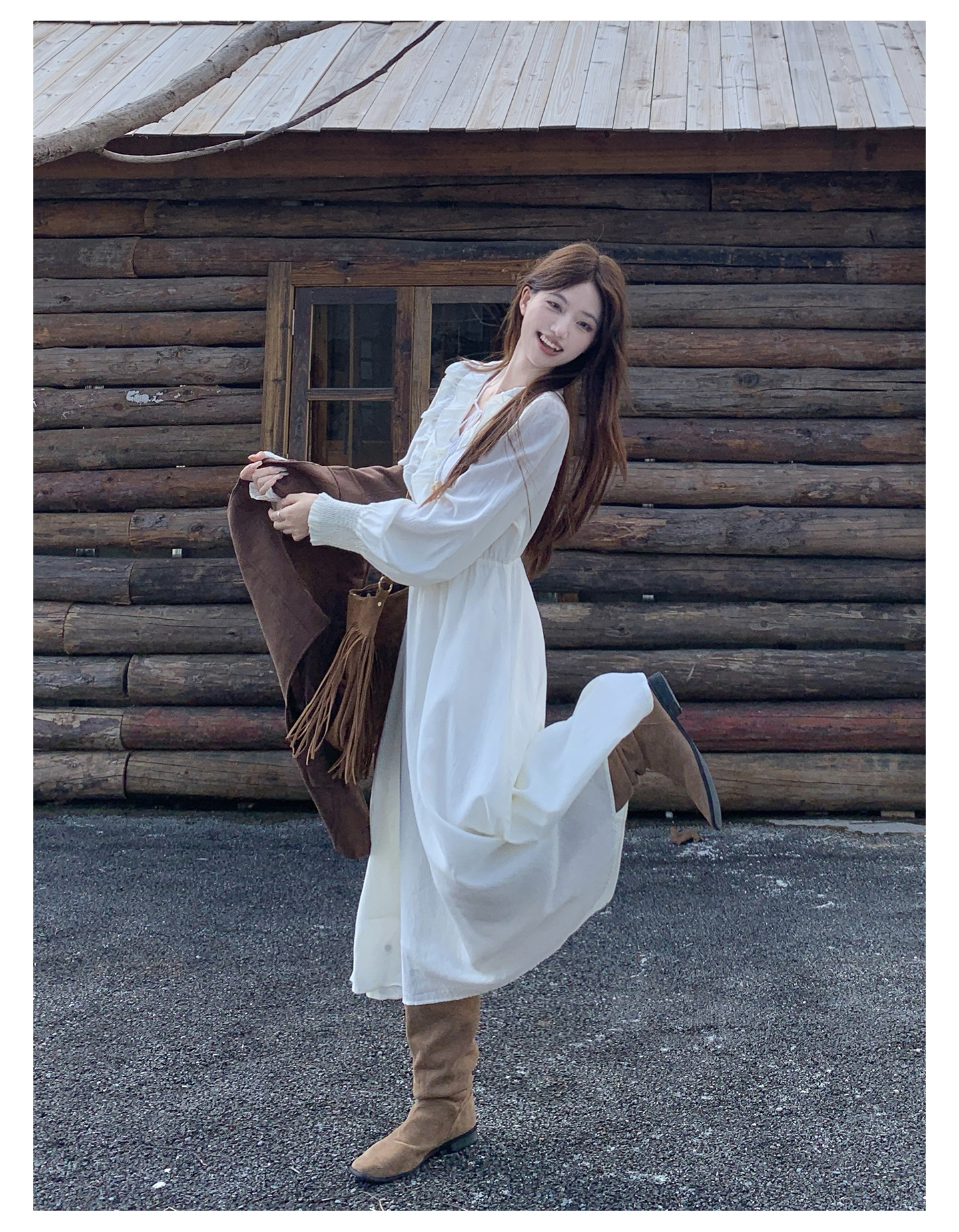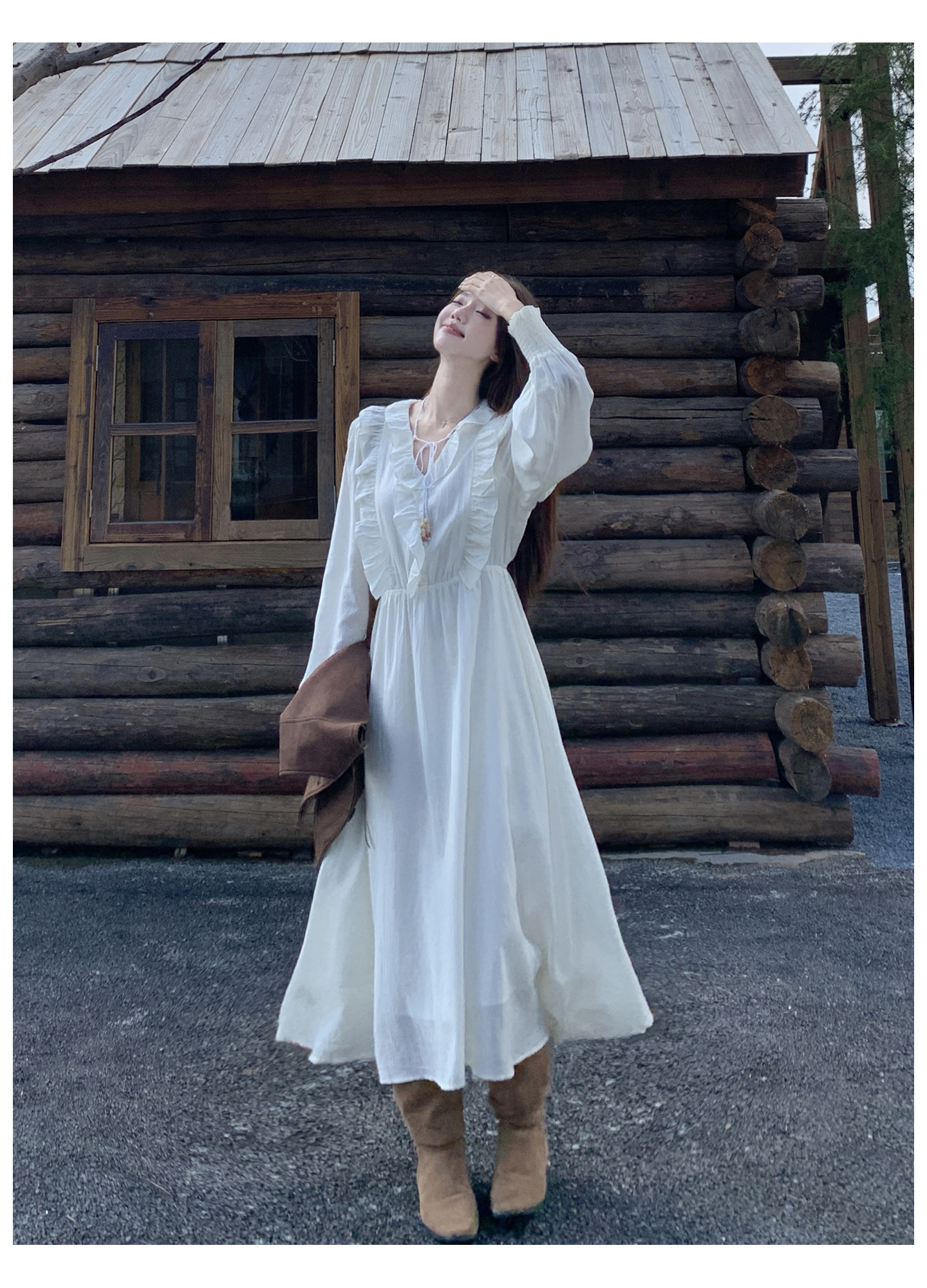 실사 가을 프랑스식 고급 센스 V넥 긴팔 드레스 2026 이른 봄 새로운 아름다운 치마 허리 수축 롱 스커트