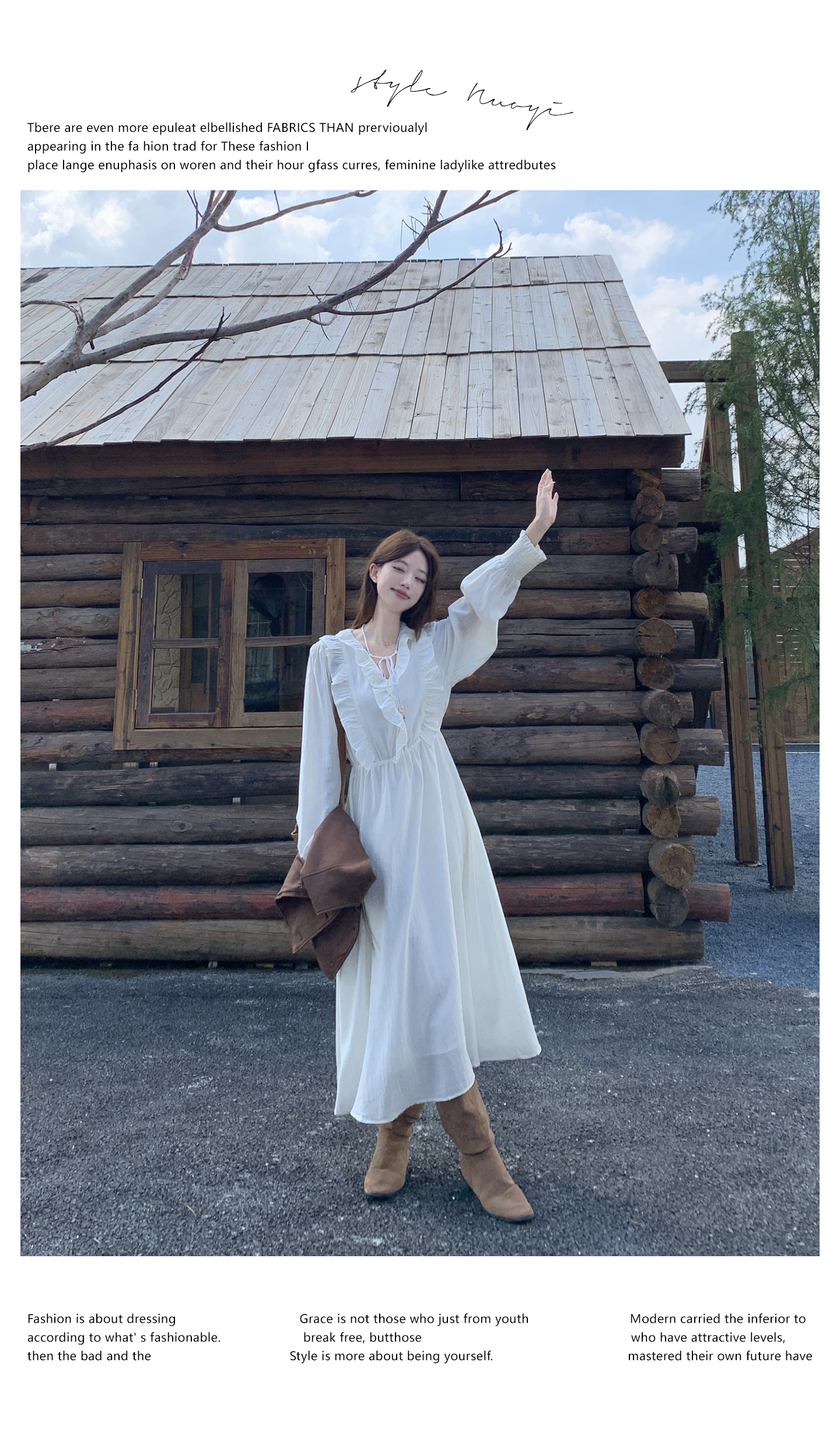 실사 빅 사이즈 여성 의류 2026 봄 아모이 중식 점프 슈트 치마 세트 헤일로 염색 길다 치마 V넥 나팔 긴팔