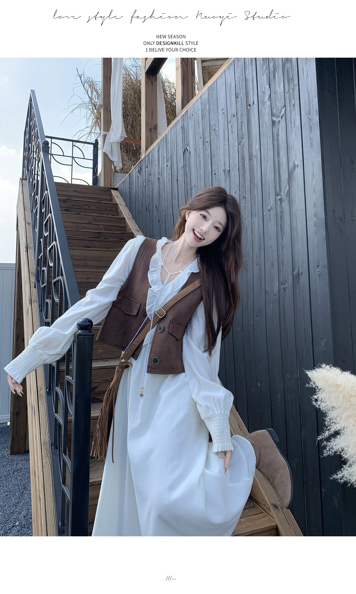 실사 작은 키 레이스 바지를 입는 셔츠 맨위 투피스 드레스 새로운 빅 사이즈 스웨이드 원단 조끼 스커트