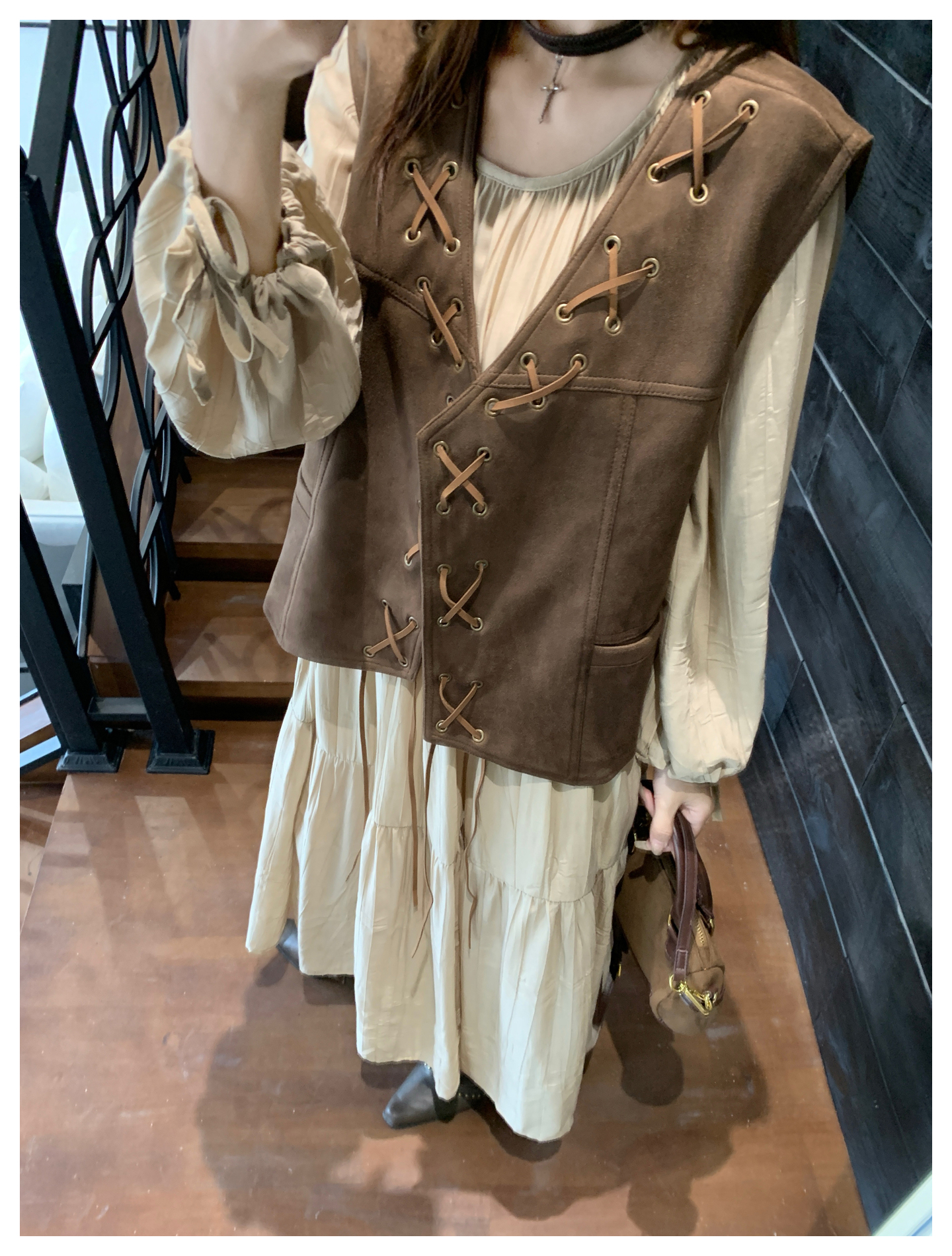실사 작은 키 레이스 바지를 입는 셔츠 맨위 투피스 드레스 새로운 빅 사이즈 스웨이드 원단 조끼 스커트