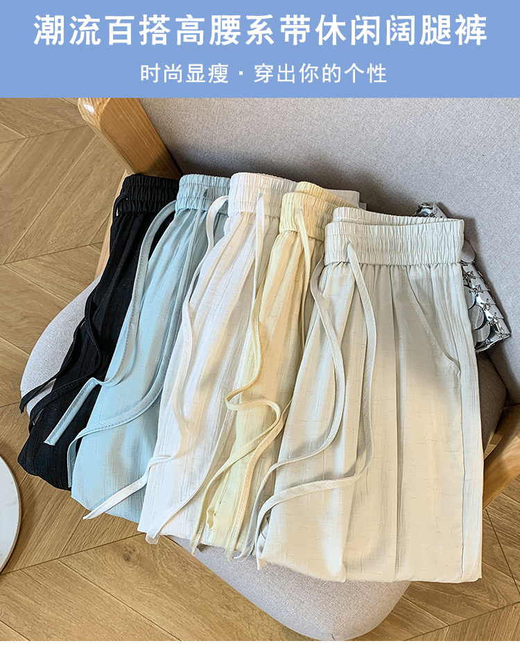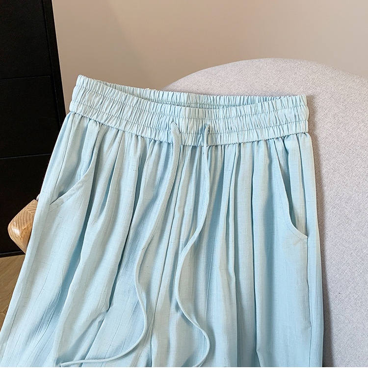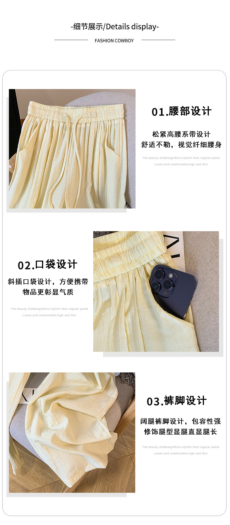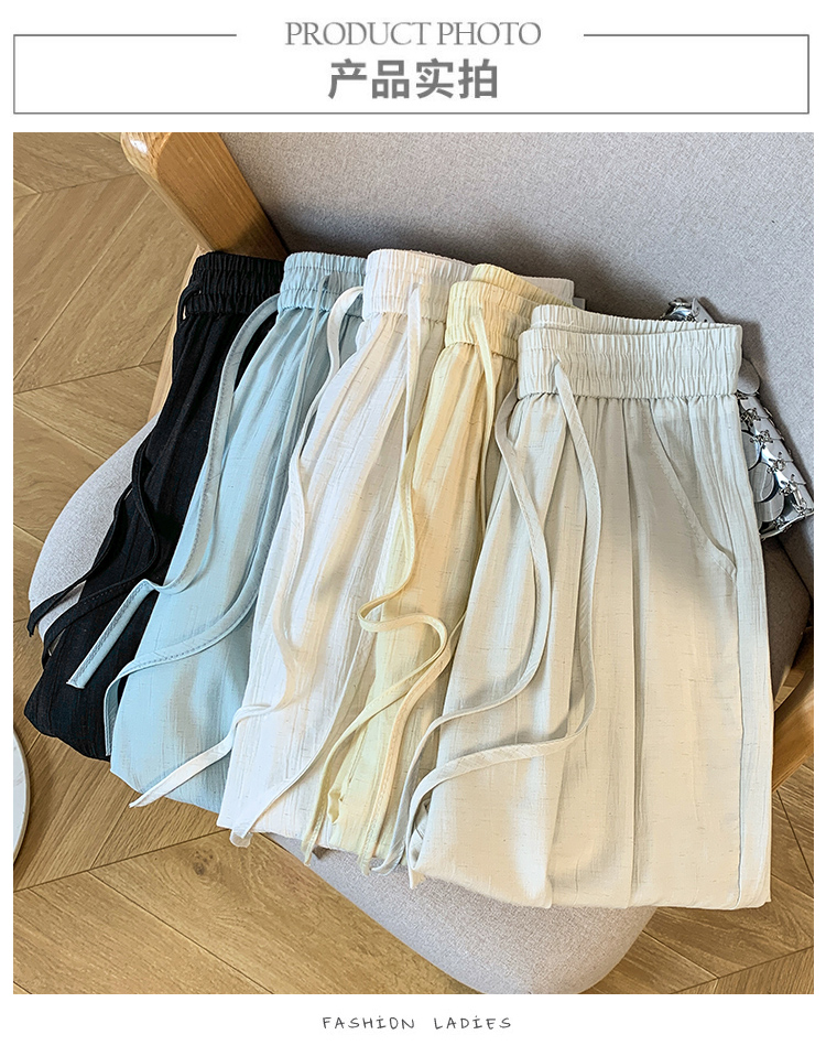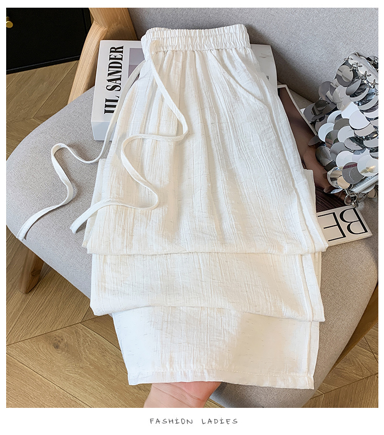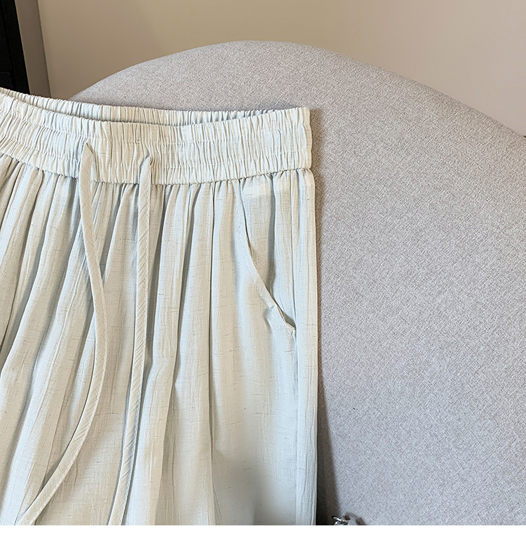 실사 여름 새로운 허리밴드 아마 목이버섯 레이스 루즈핏 9 포인트 와이드 레그 팬츠 여성 레저 다용도 스트레이트 팬츠