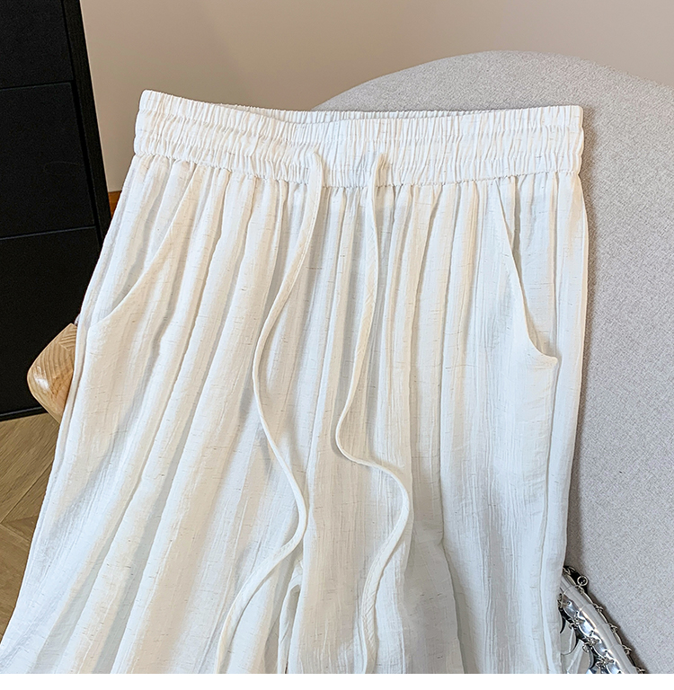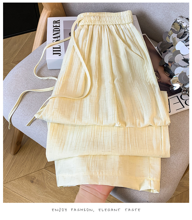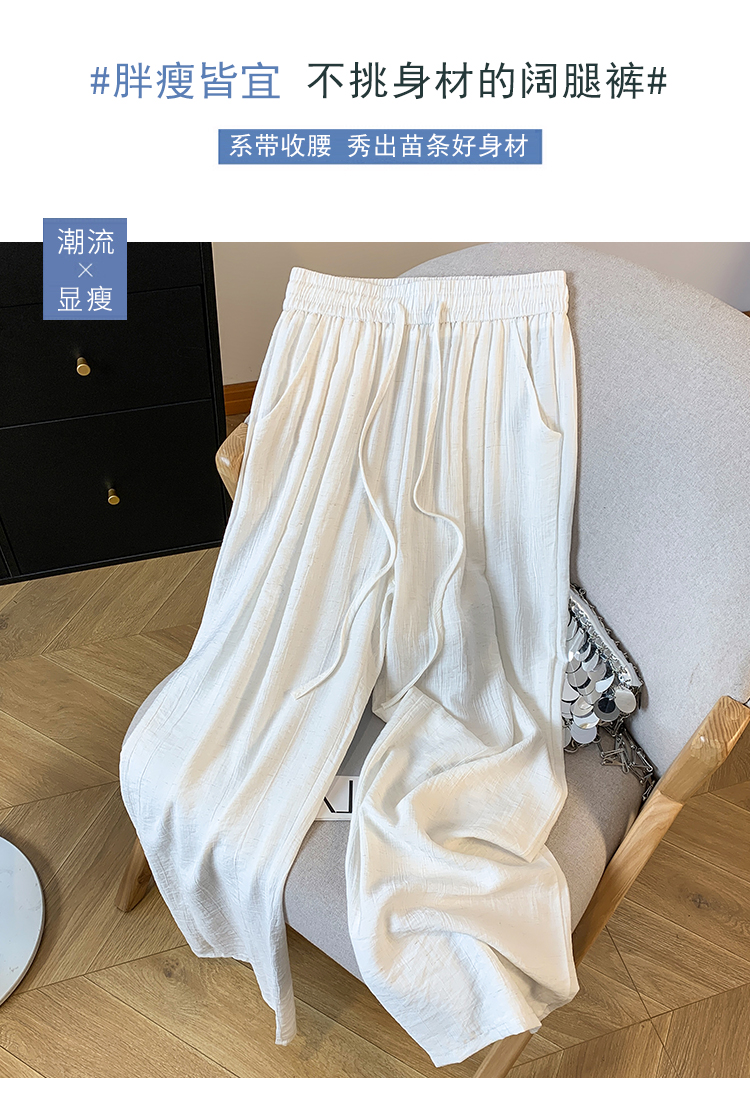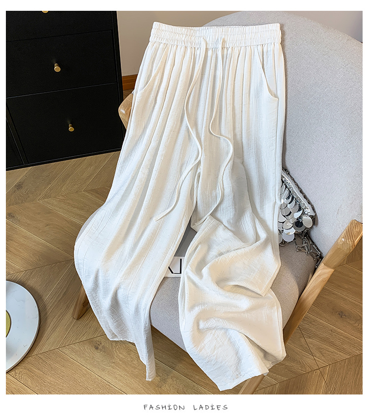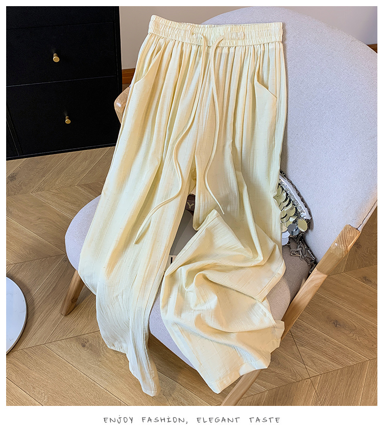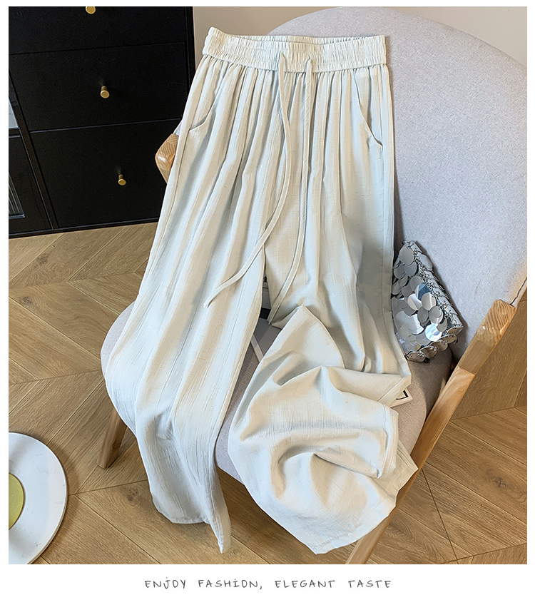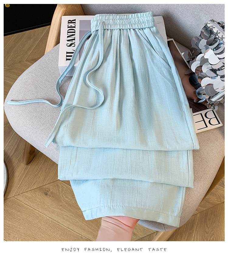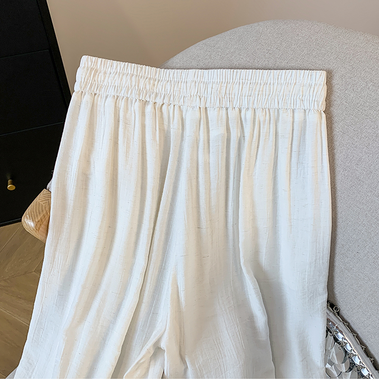 실사 여름 새로운 허리밴드 아마 목이버섯 레이스 루즈핏 9 포인트 와이드 레그 팬츠 여성 레저 다용도 스트레이트 팬츠