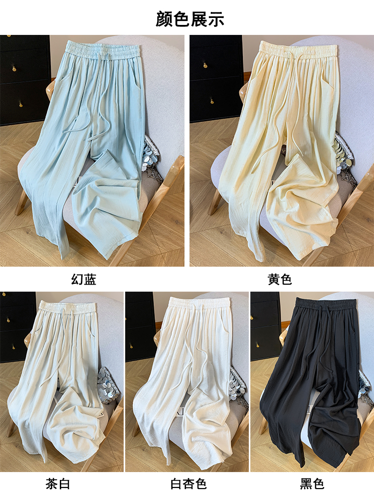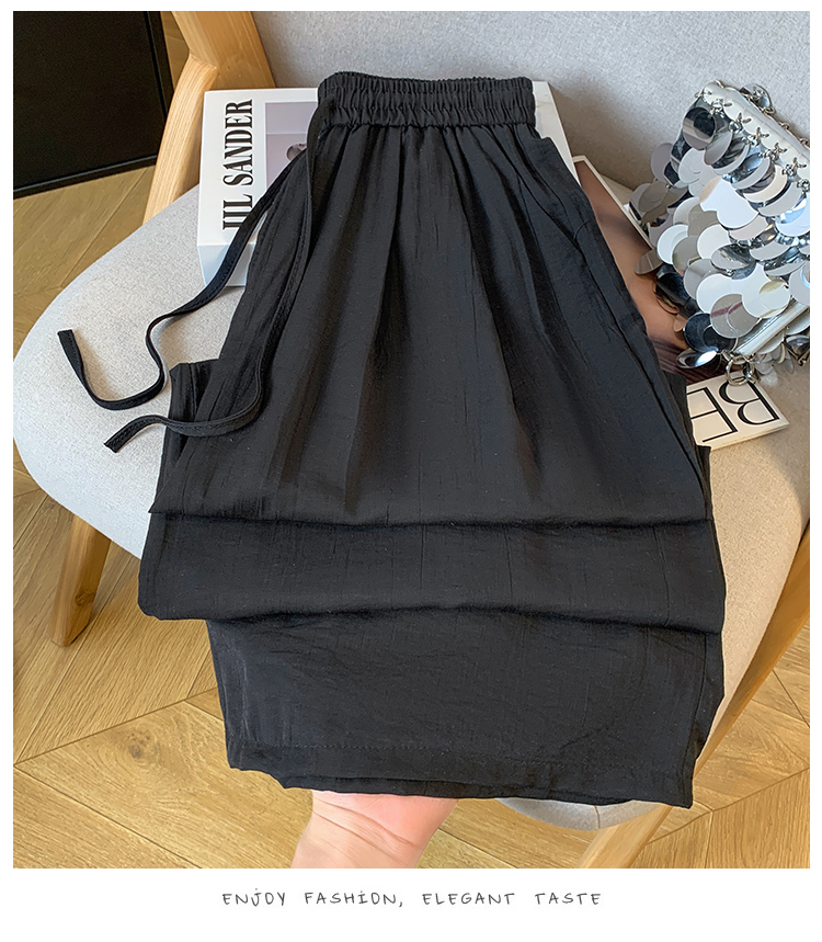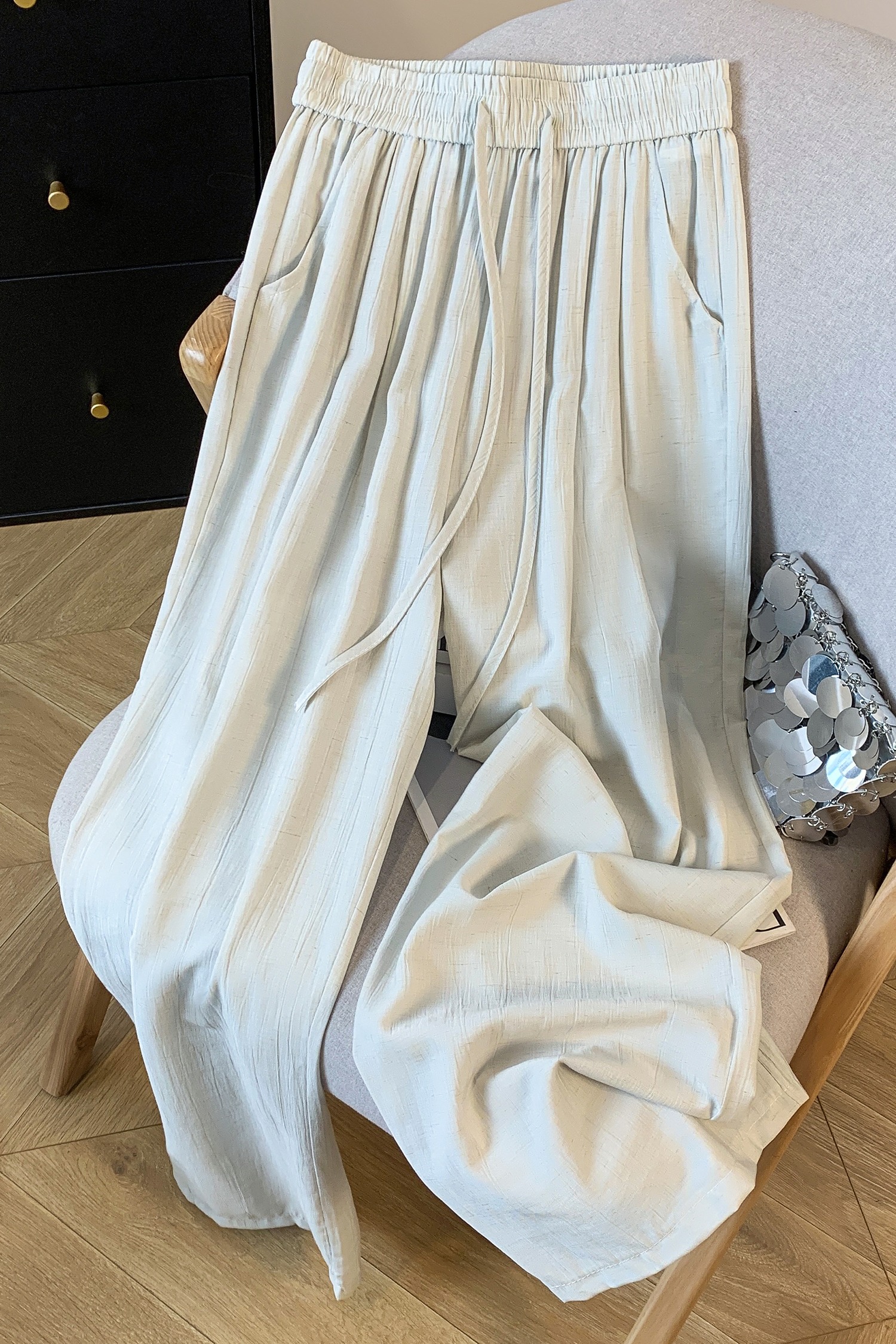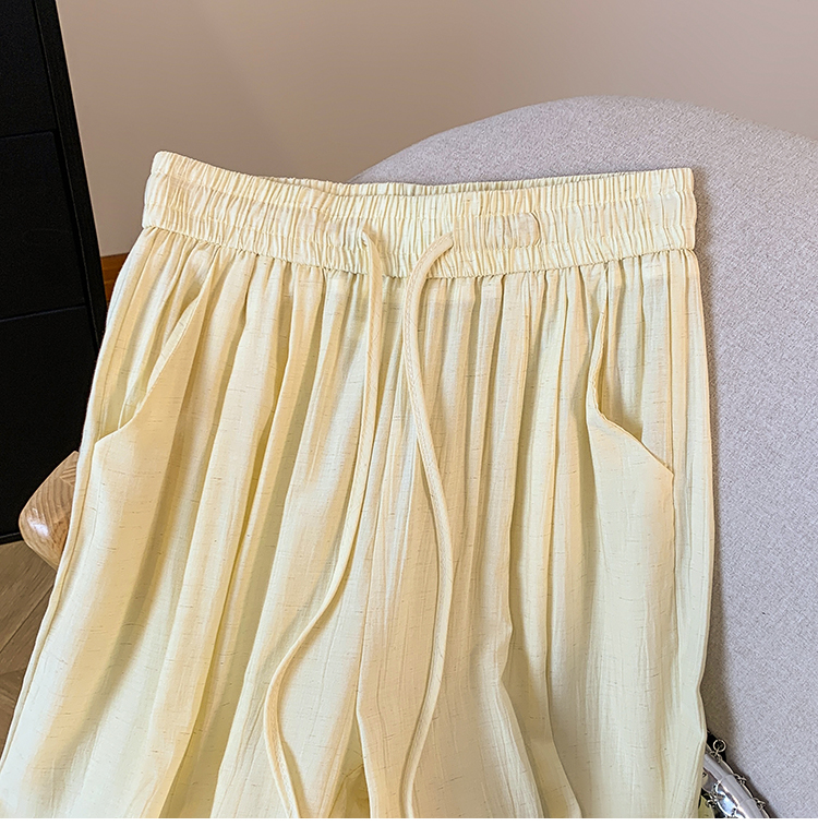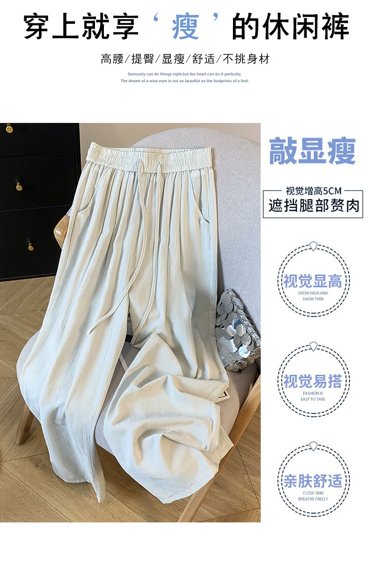 실사 여름 새로운 허리밴드 아마 목이버섯 레이스 루즈핏 9 포인트 와이드 레그 팬츠 여성 레저 다용도 스트레이트 팬츠