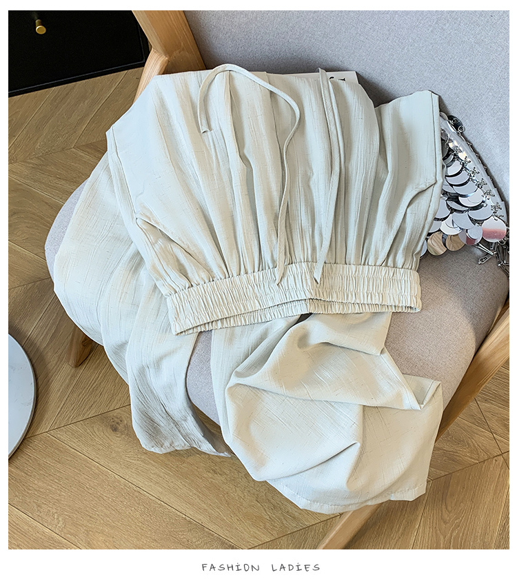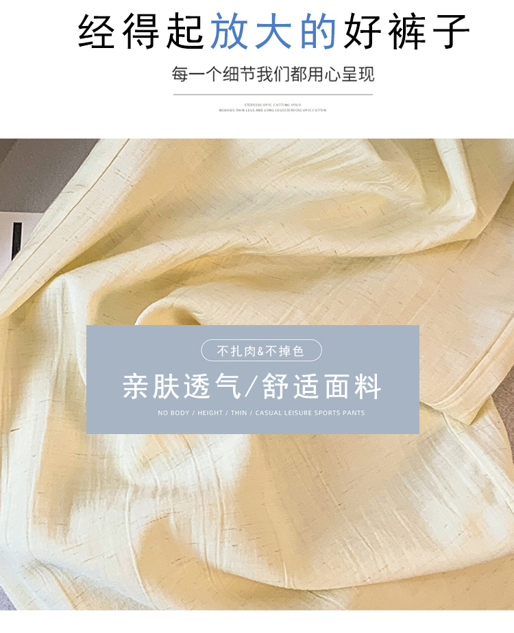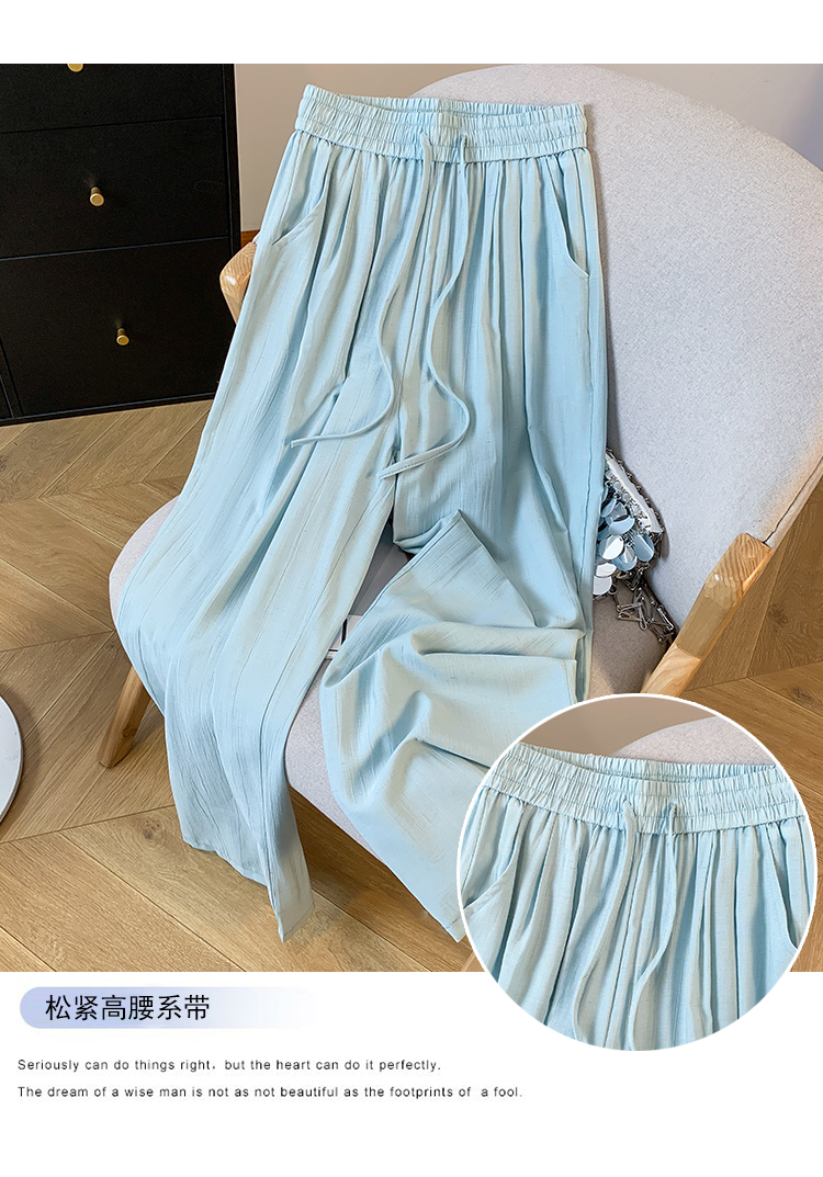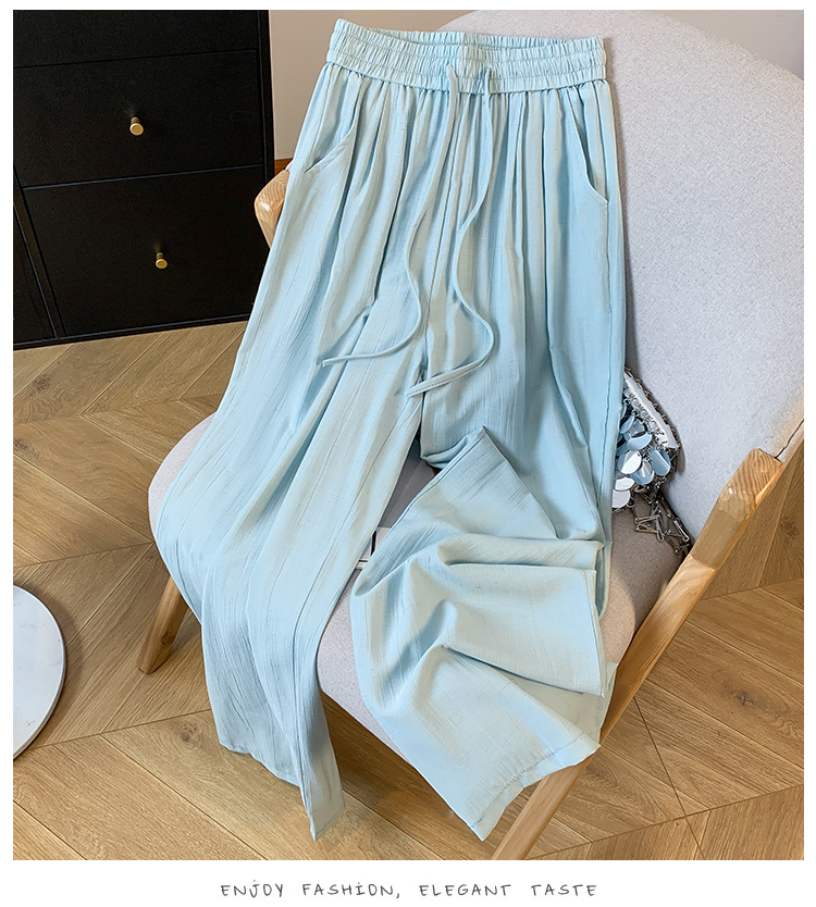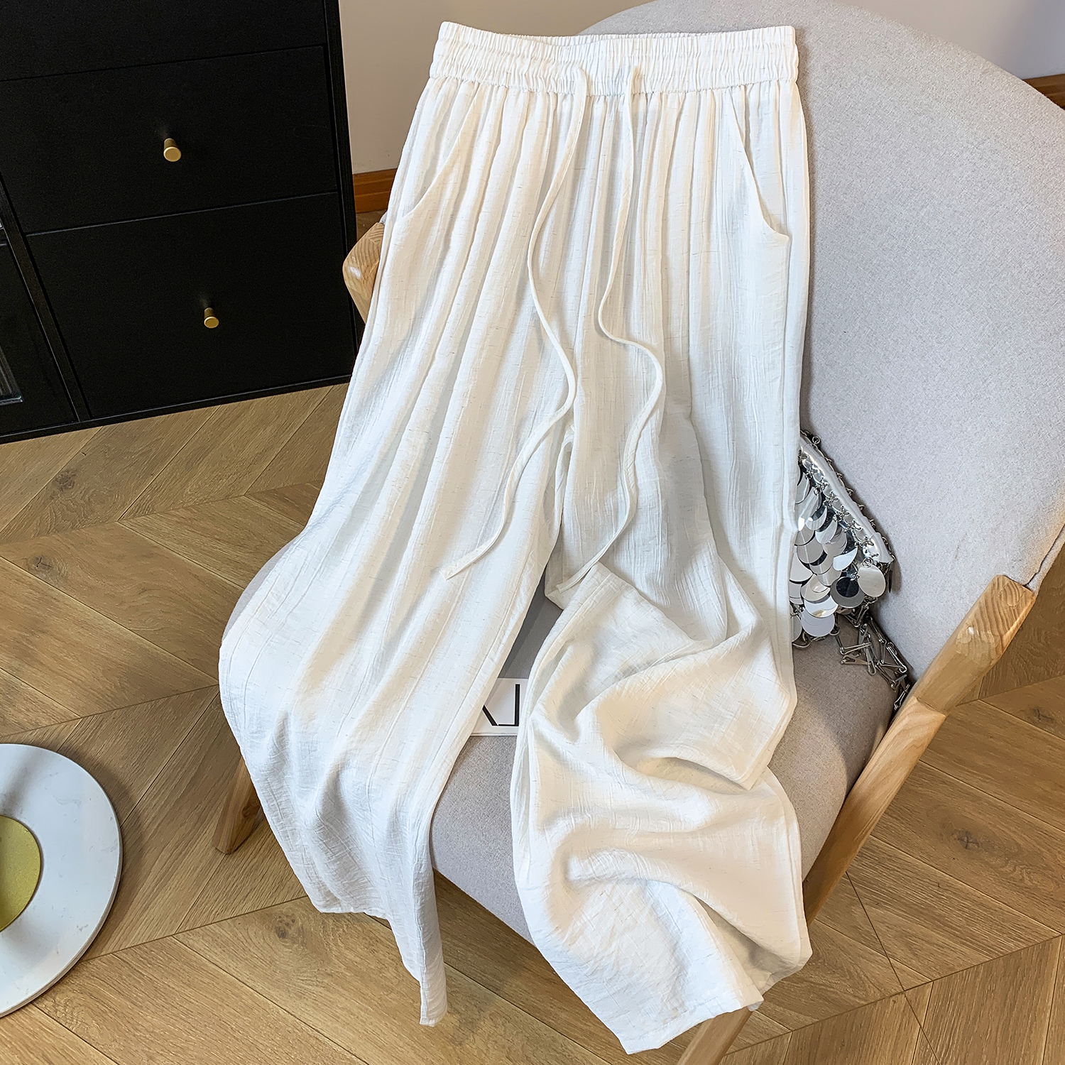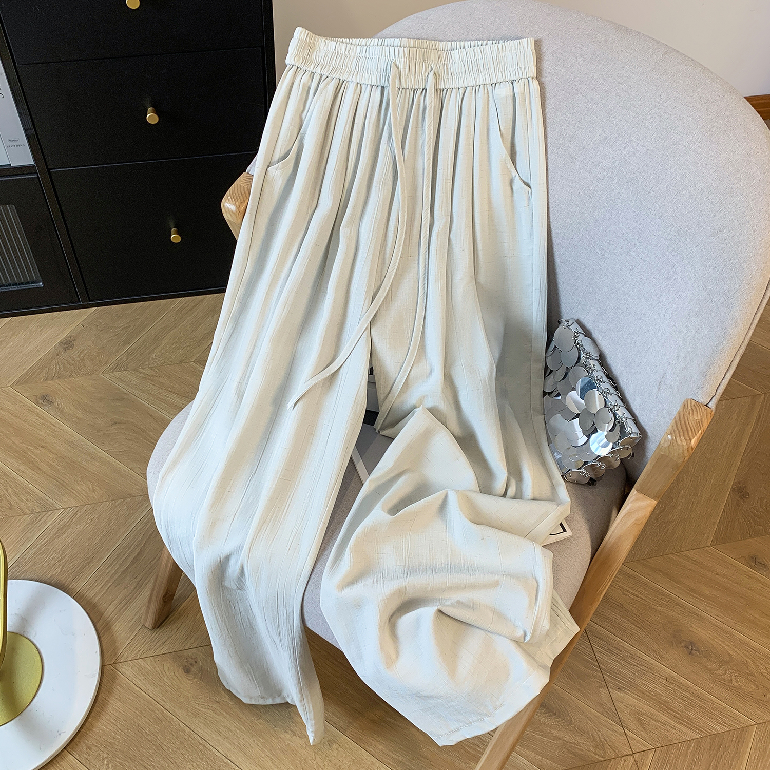 실사 여름 새로운 허리밴드 아마 목이버섯 레이스 루즈핏 9 포인트 와이드 레그 팬츠 여성 레저 다용도 스트레이트 팬츠