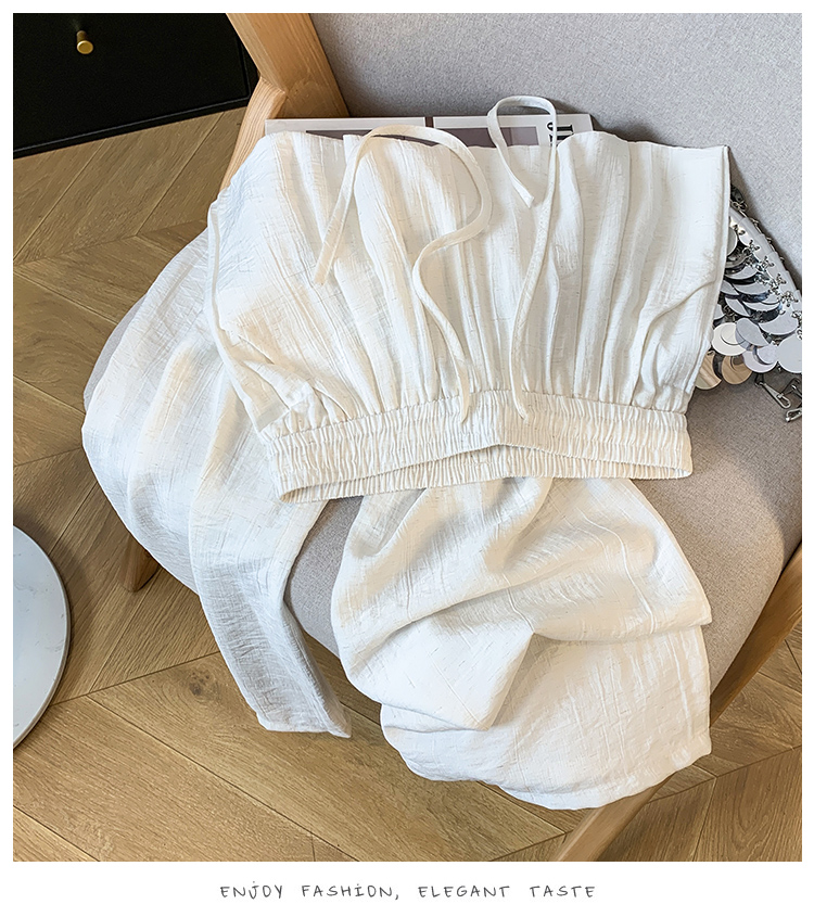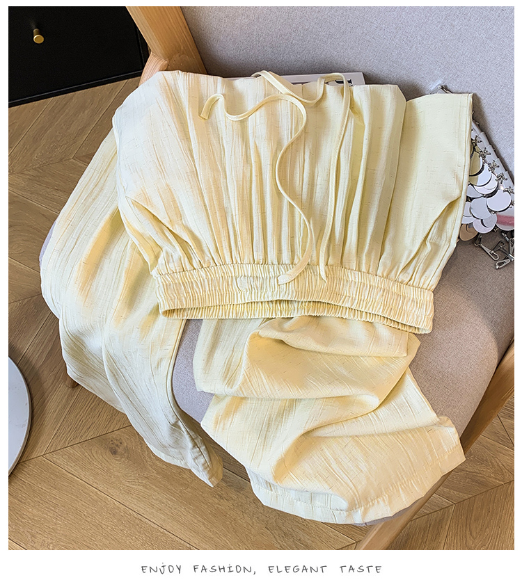 실사 2026 여름 새로운 패션 사실 투피스 세트 둘 착용 방귀 커튼 캐주얼 바지 다용도 스트레이트 9 포인트 와이드 레그 팬츠