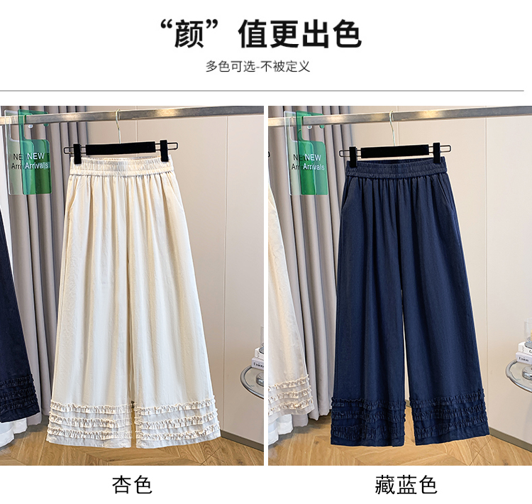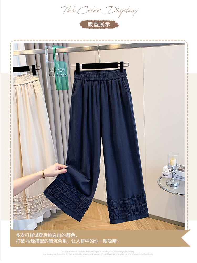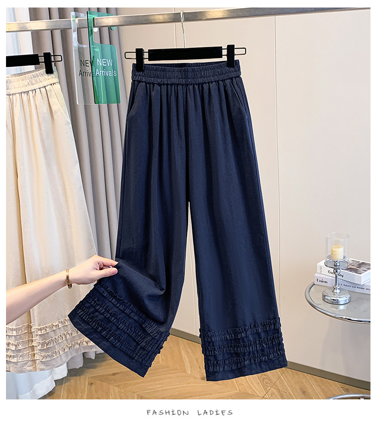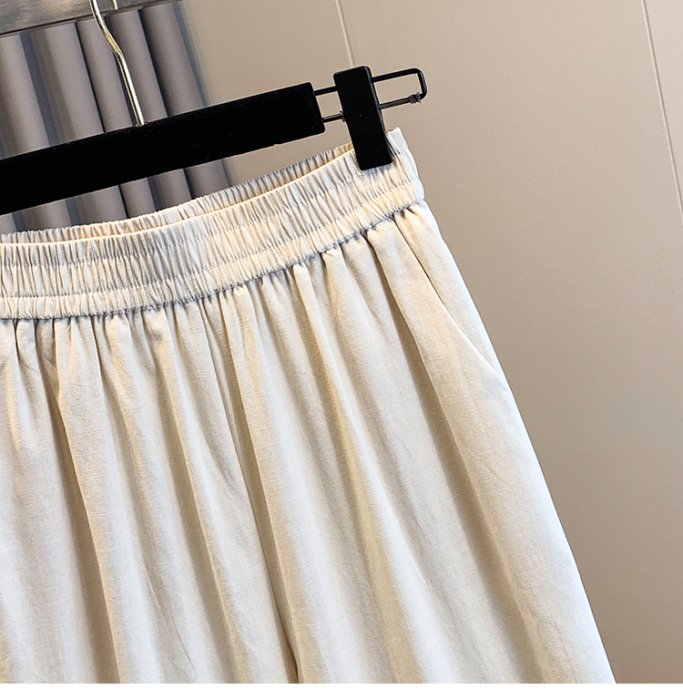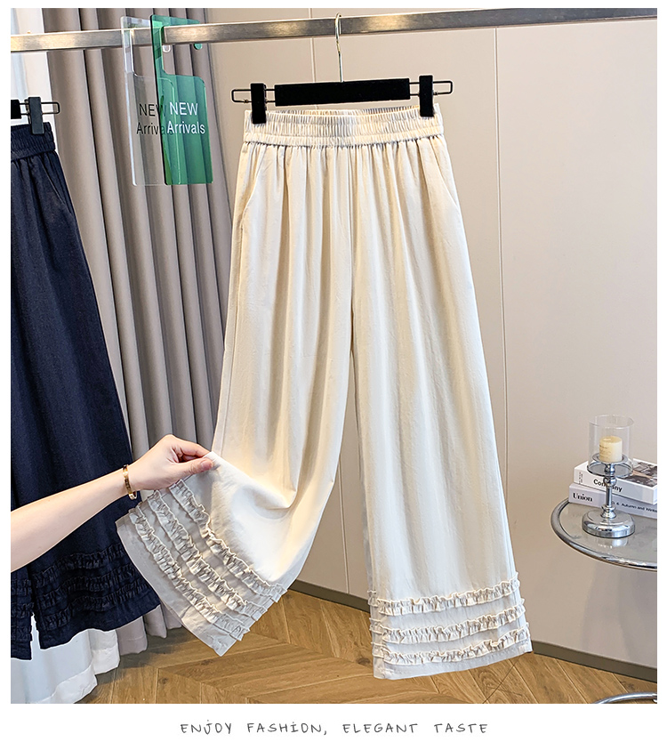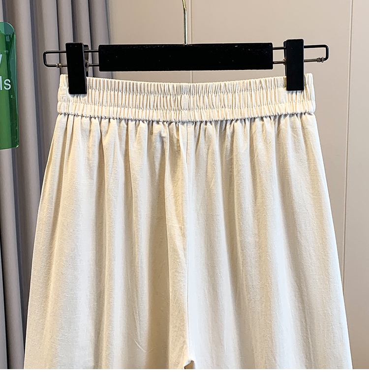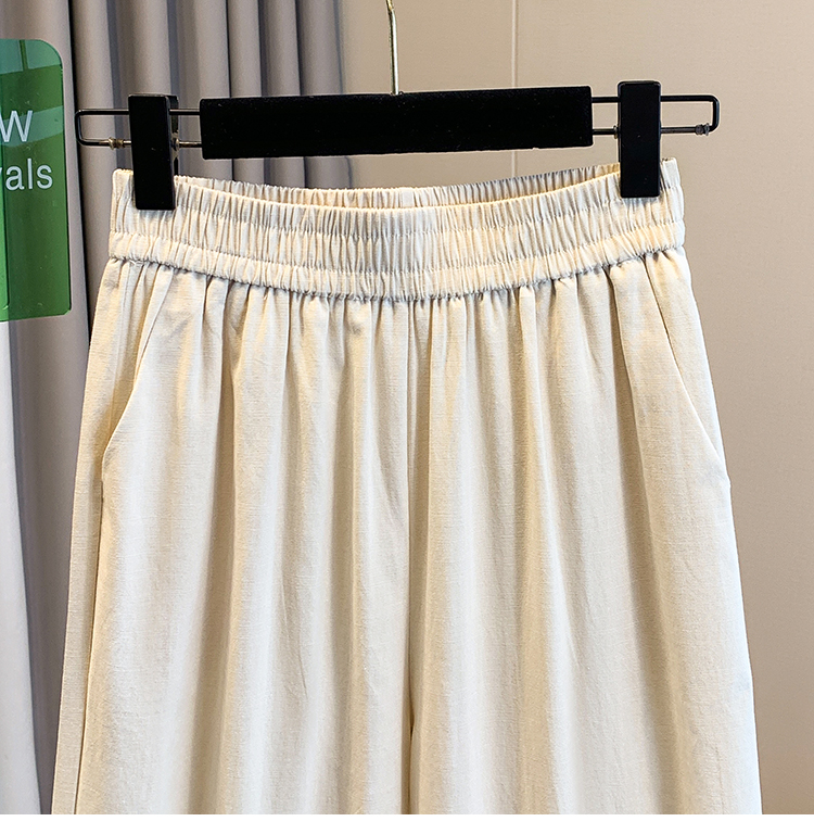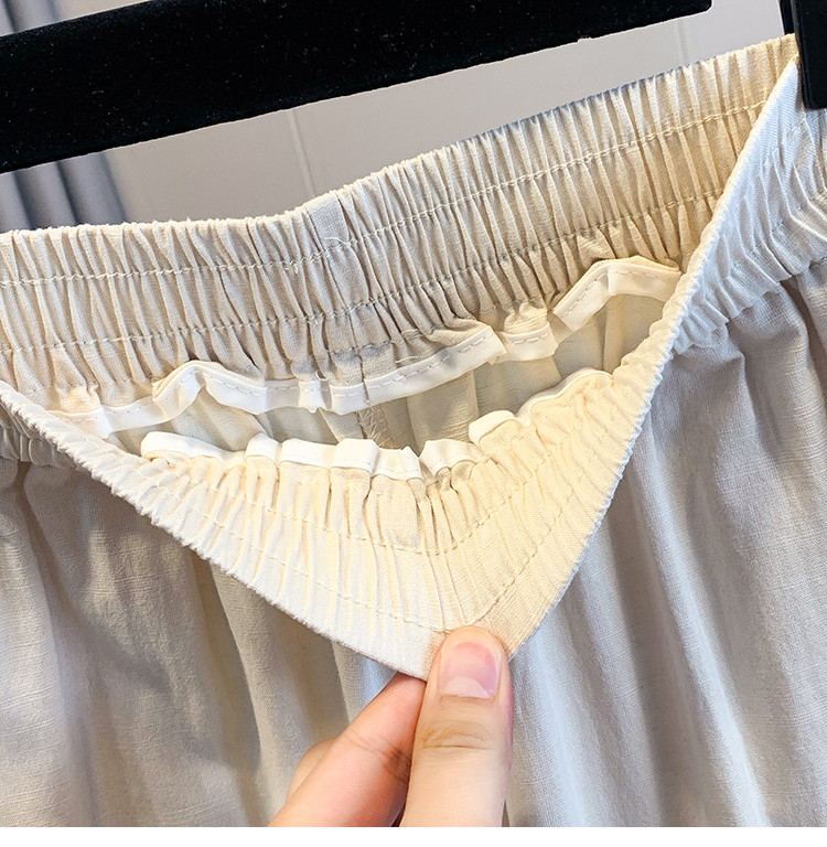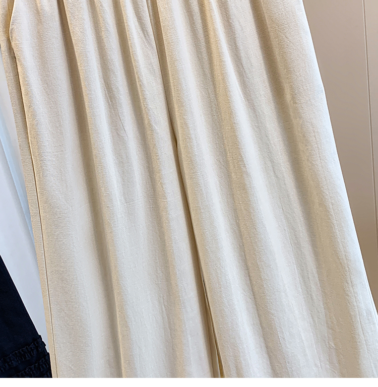 실사 여름 새로운 허리밴드 아마 목이버섯 레이스 루즈핏 9 포인트 와이드 레그 팬츠 여성 레저 다용도 스트레이트 팬츠