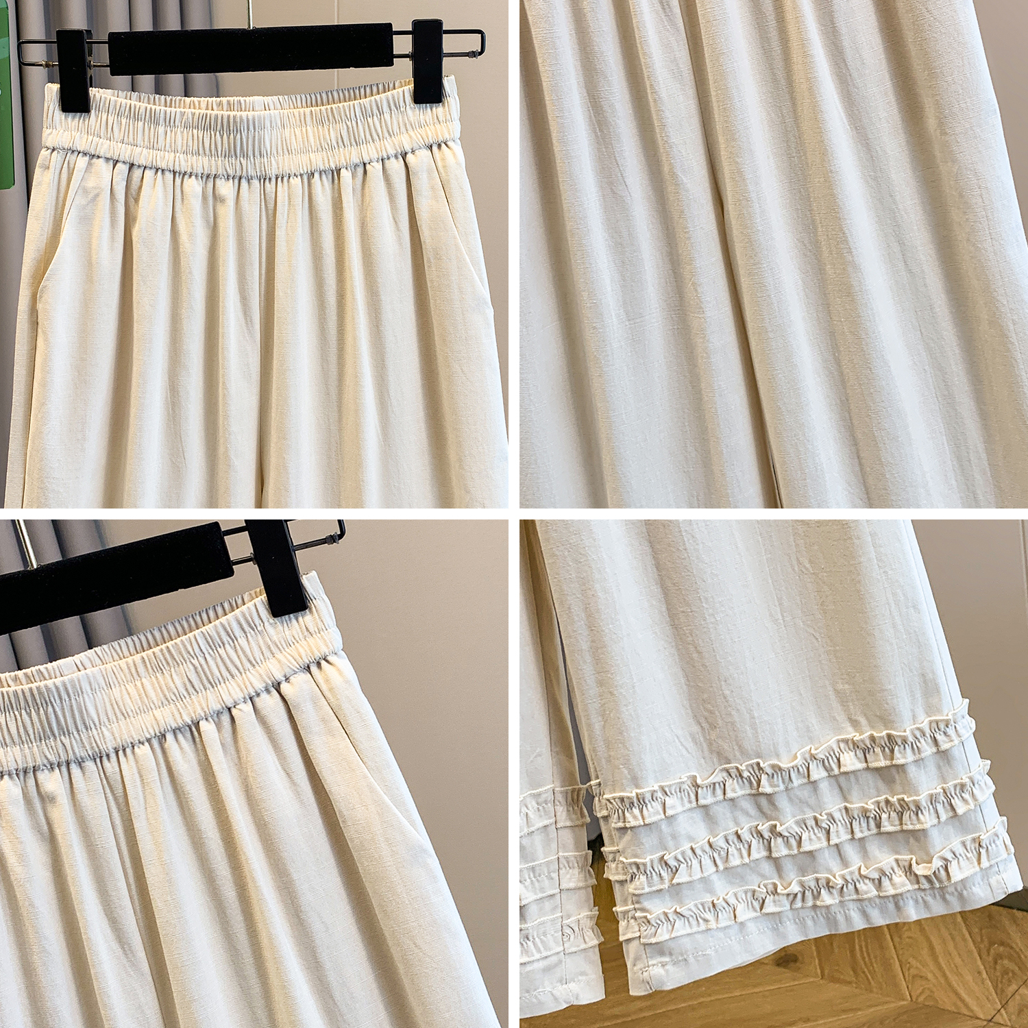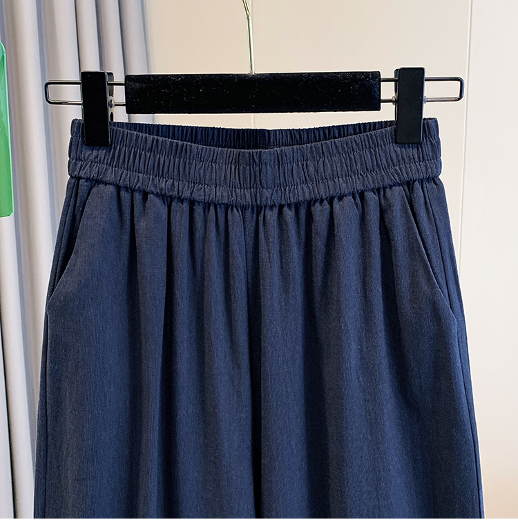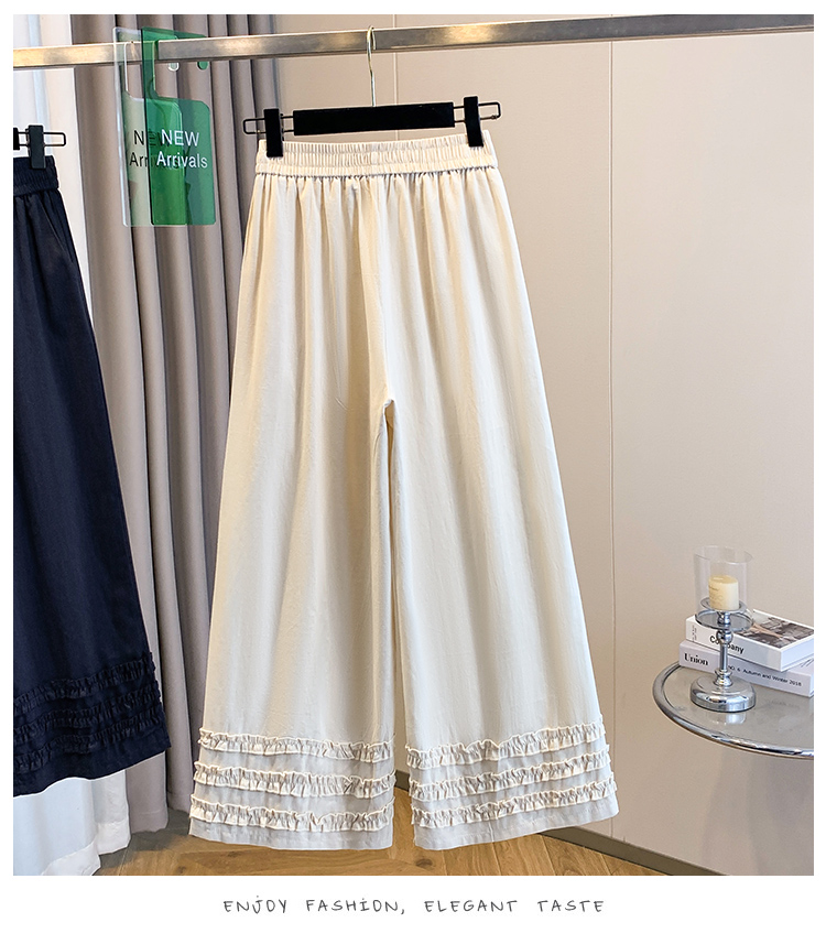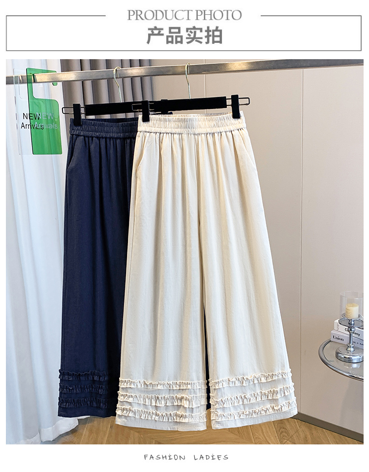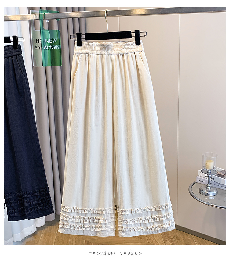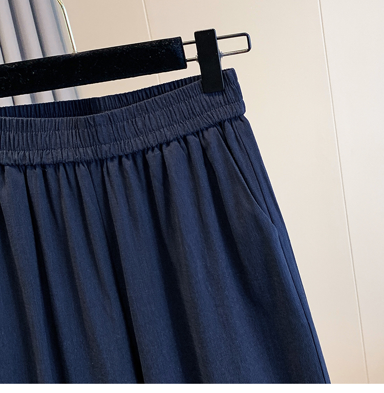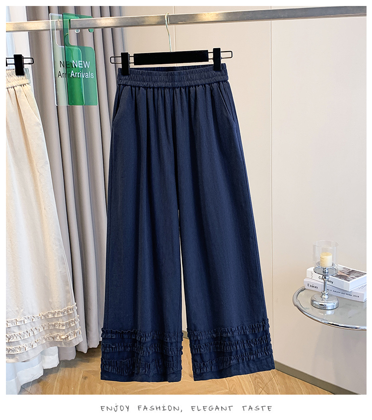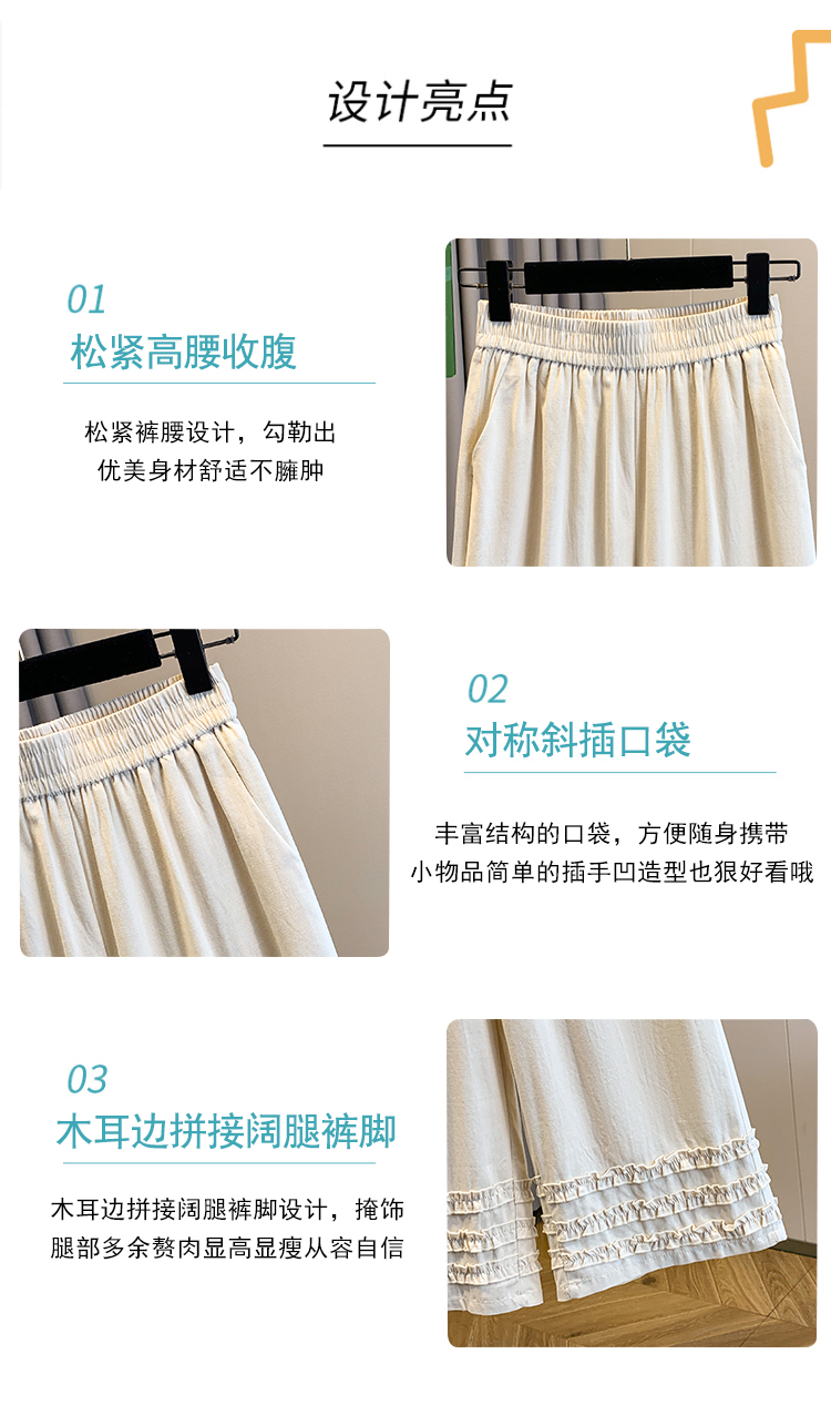실사 여름 새로운 허리밴드 아마 목이버섯 레이스 루즈핏 9 포인트 와이드 레그 팬츠 여성 레저 다용도 스트레이트 팬츠