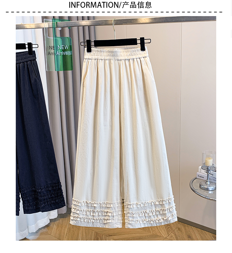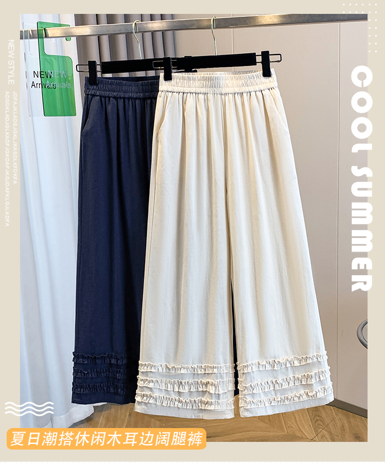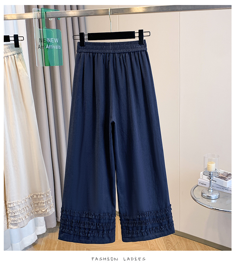 2026 여름 새로운 주간 실크 데님 프릴 넓은 다리 9부 바지 슬림해 보이는 다용도 루즈핏 캐주얼 스트레이트 긴 바지