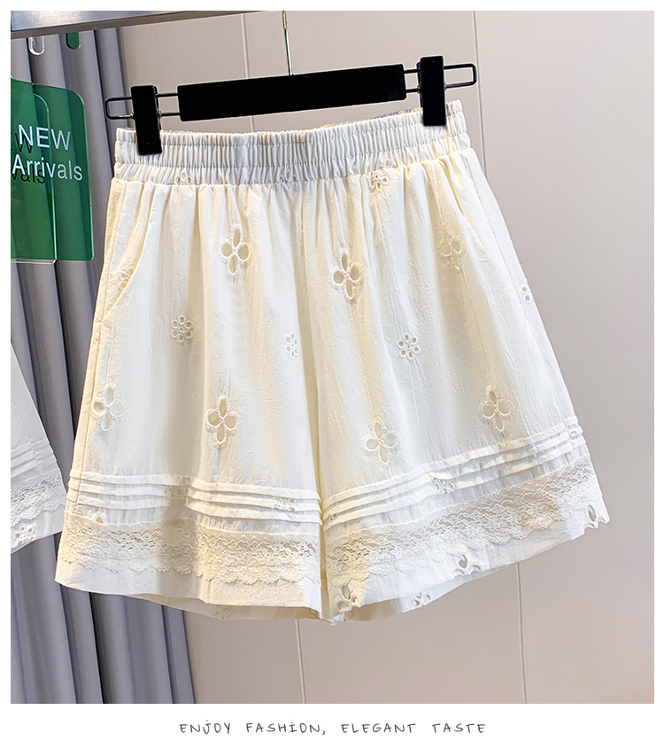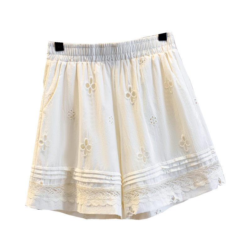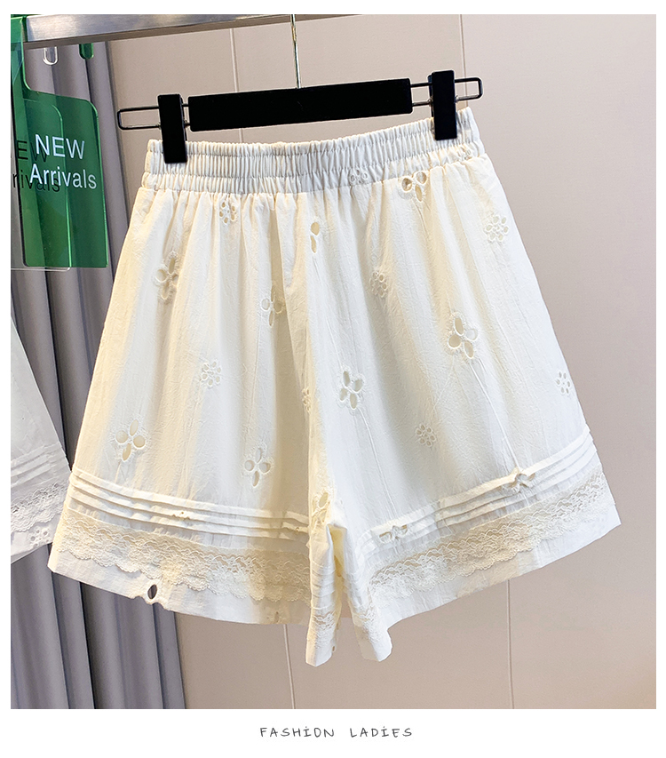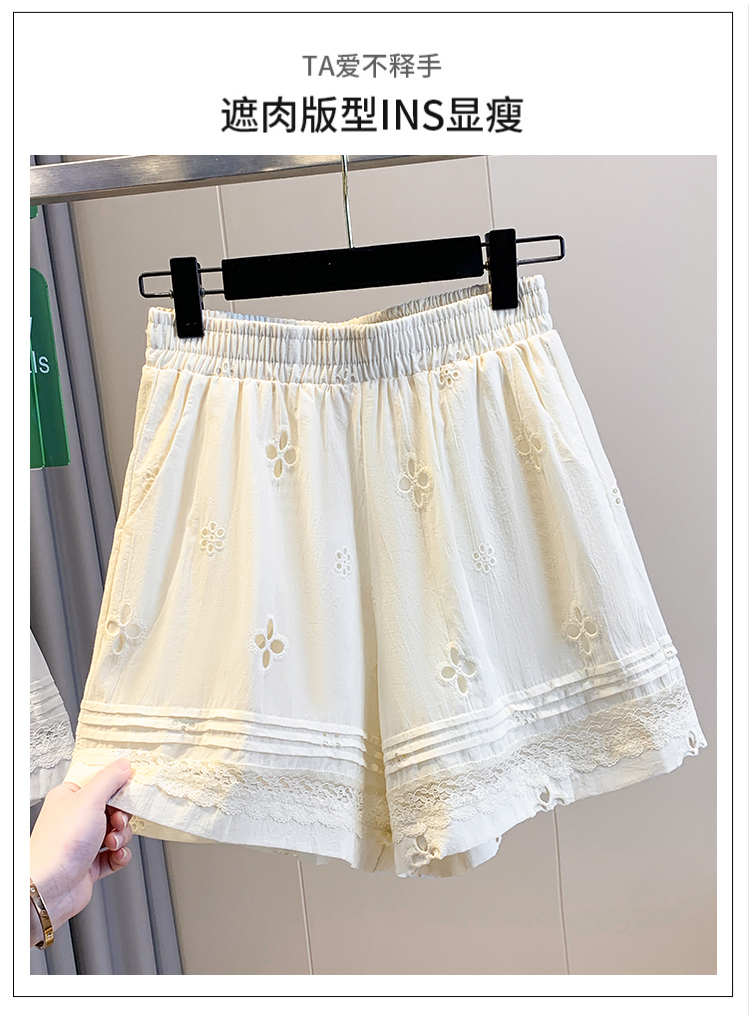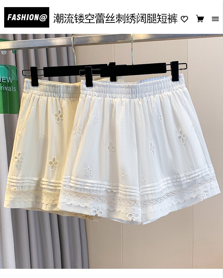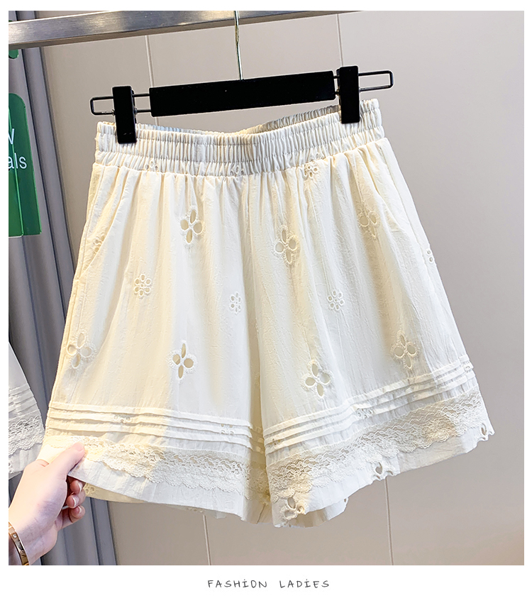 실사 레이스 조각 자수 홀로우 아웃 캐주얼 반바지 여성 2026 여름 새로운 하이웨이스트 루즈핏 넓은 다리 핫 바지