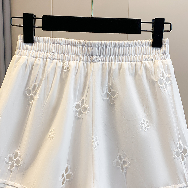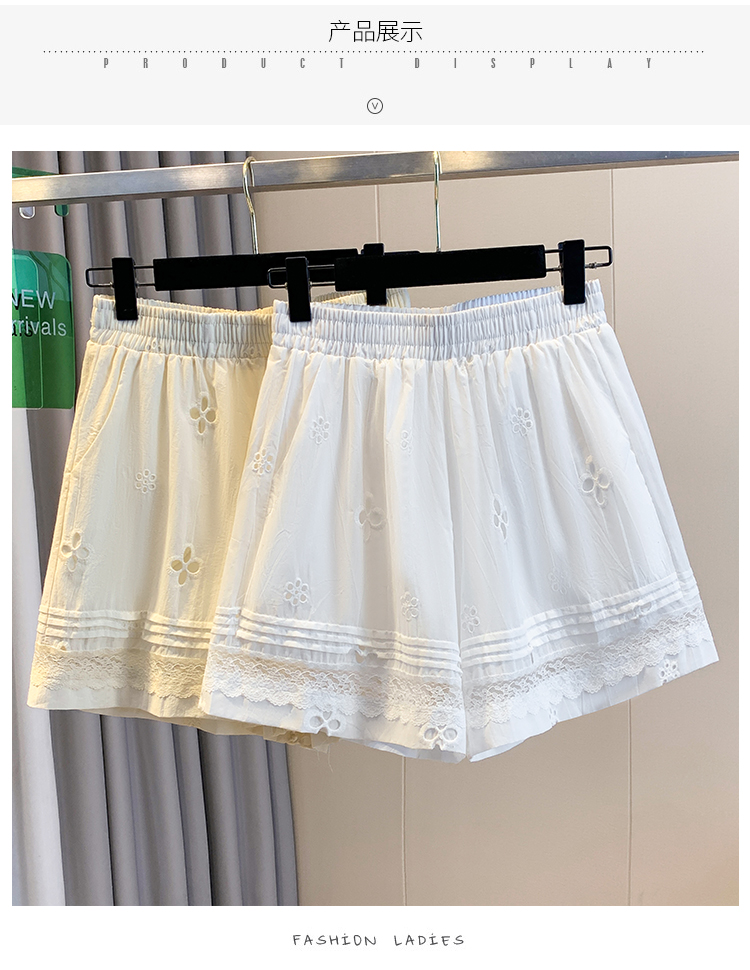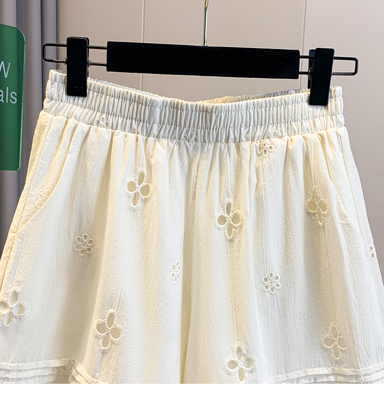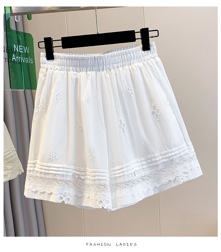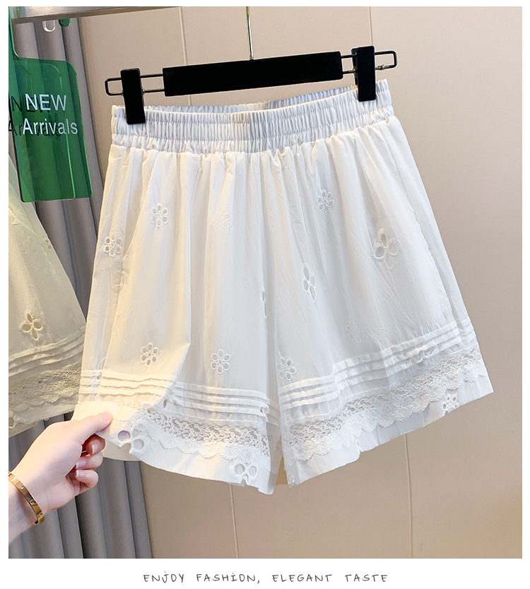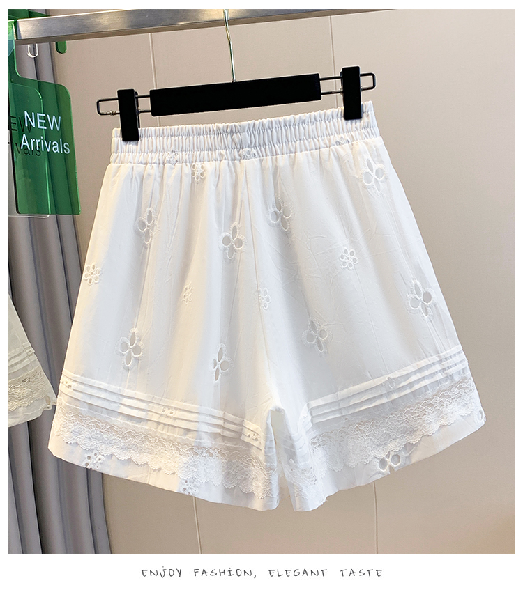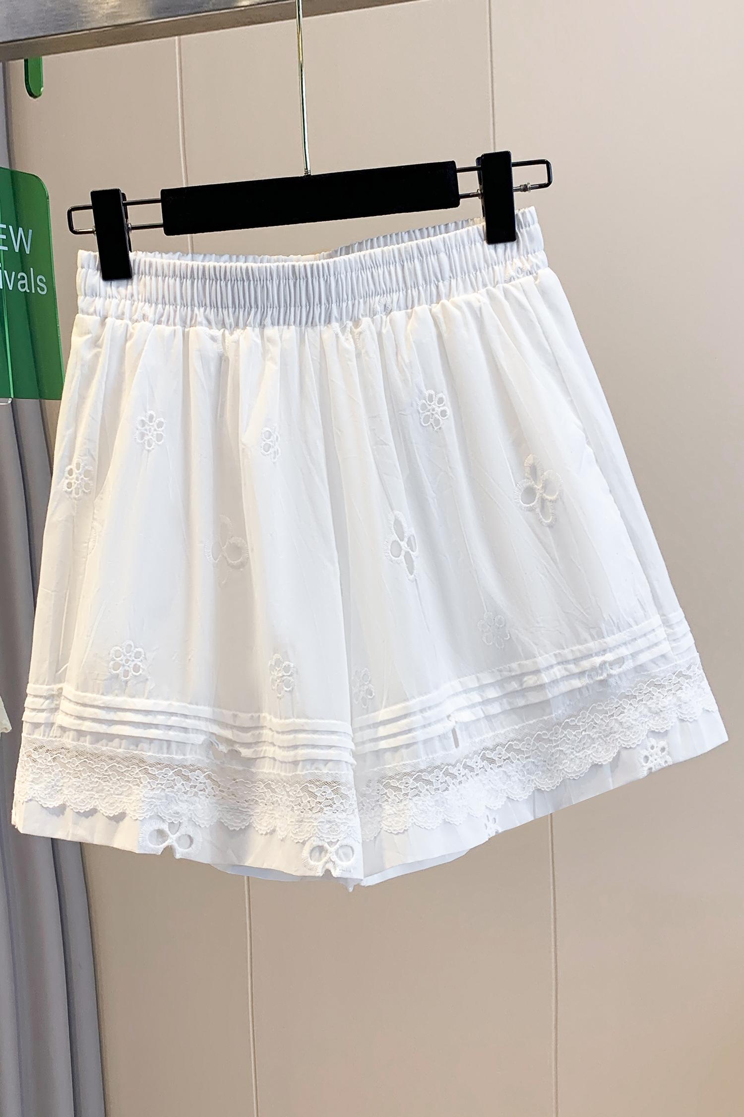 실사 레이스 조각 자수 홀로우 아웃 캐주얼 반바지 여성 2026 여름 새로운 하이웨이스트 루즈핏 넓은 다리 핫 바지