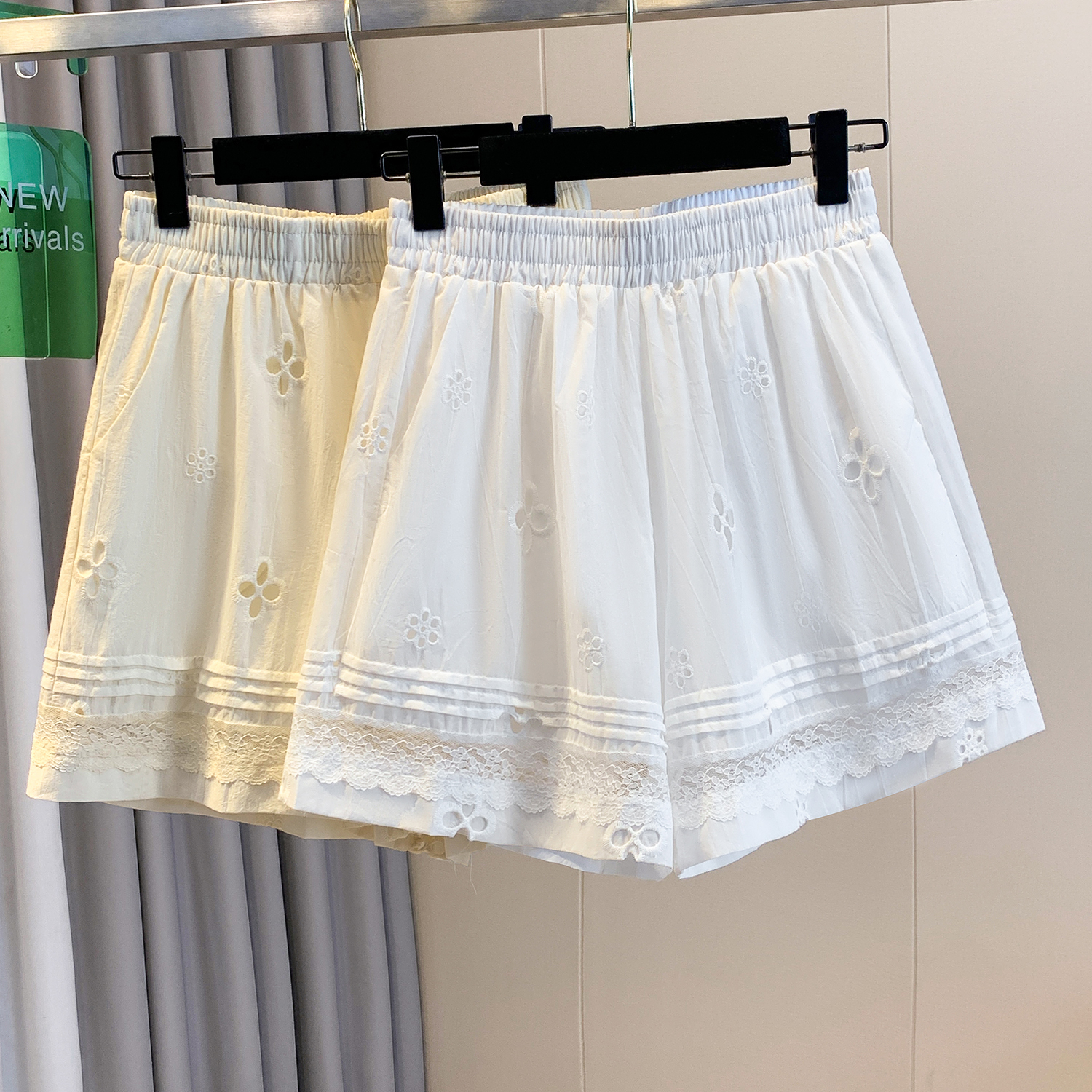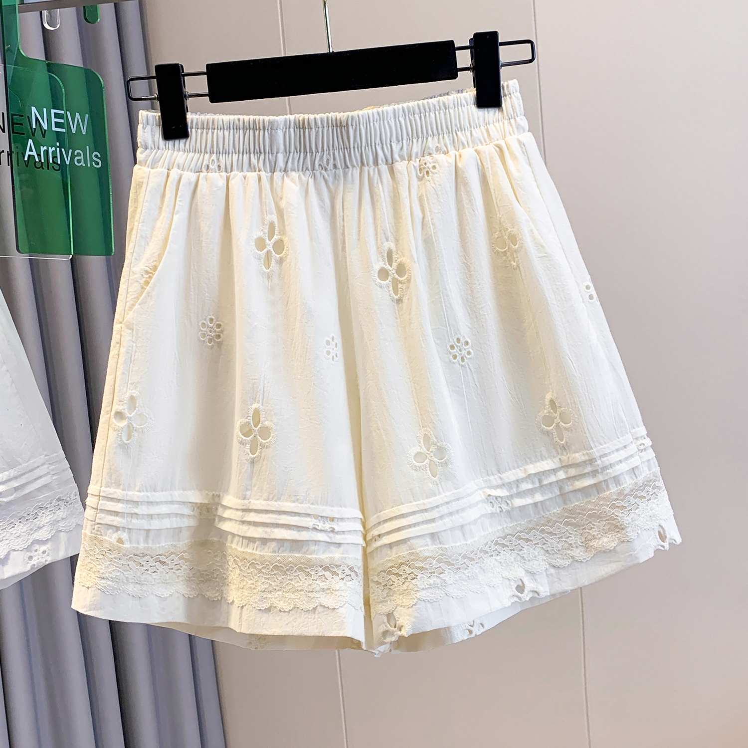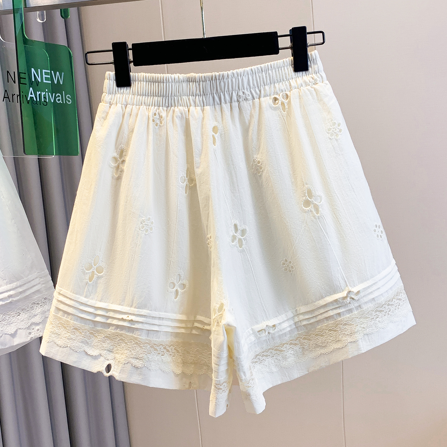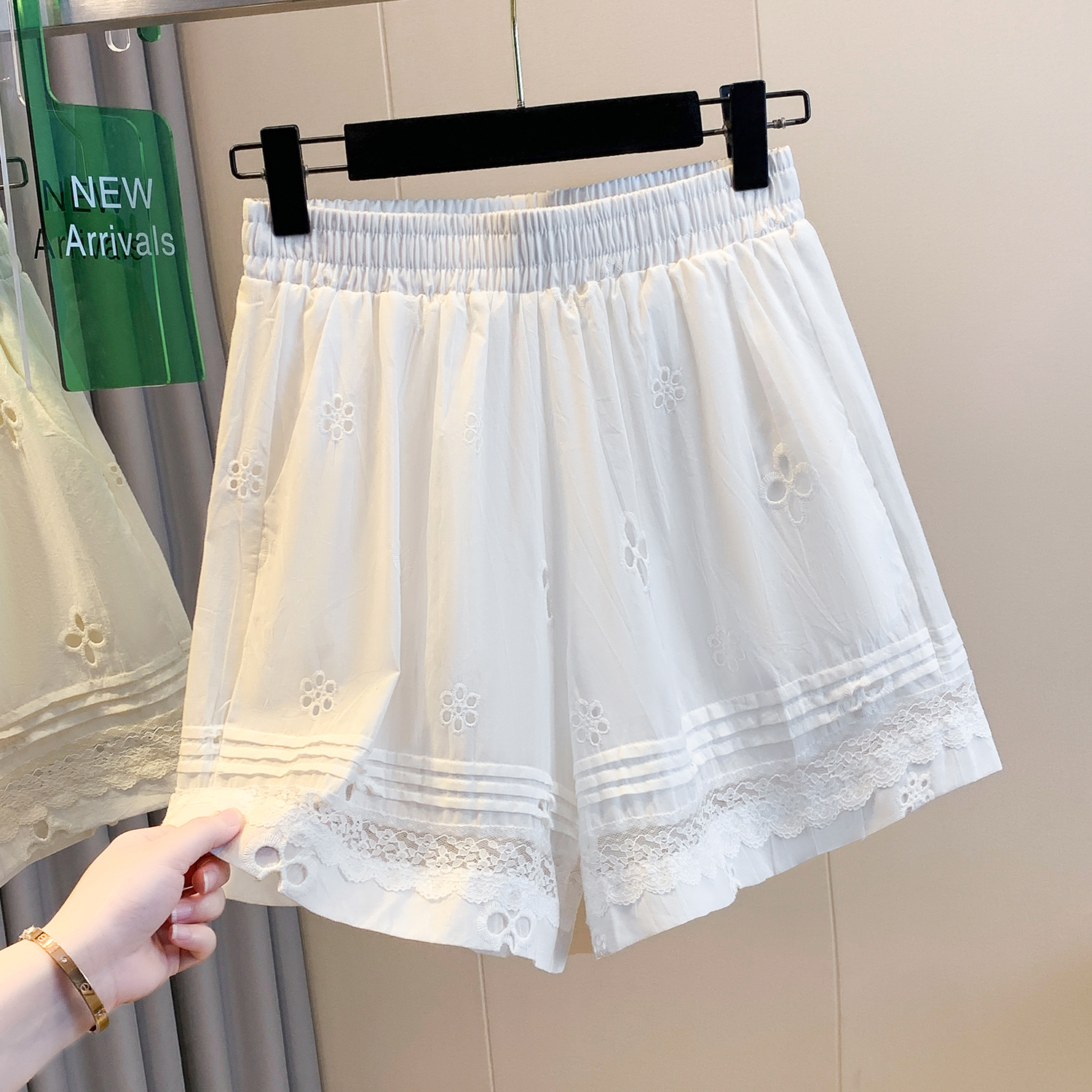 실사 레이스 조각 자수 홀로우 아웃 캐주얼 반바지 여성 2026 여름 새로운 하이웨이스트 루즈핏 넓은 다리 핫 바지