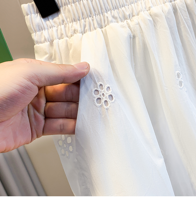 실사 여름 새로운 주간 실크 도루 센스 9 포인트 와이드 레깅스 바지 디자인 센스 레이스 홀로우 아웃 캐주얼 다용도 스트레이트 팬츠