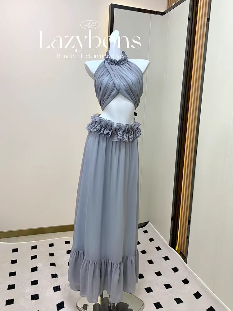 휴가 세트 여성 품격 명문 여성 순수한 욕망 섹시함 십자가 행침 목 맨위 3 차원 꽃 큰 진자 롱 스커트 투피스 세트