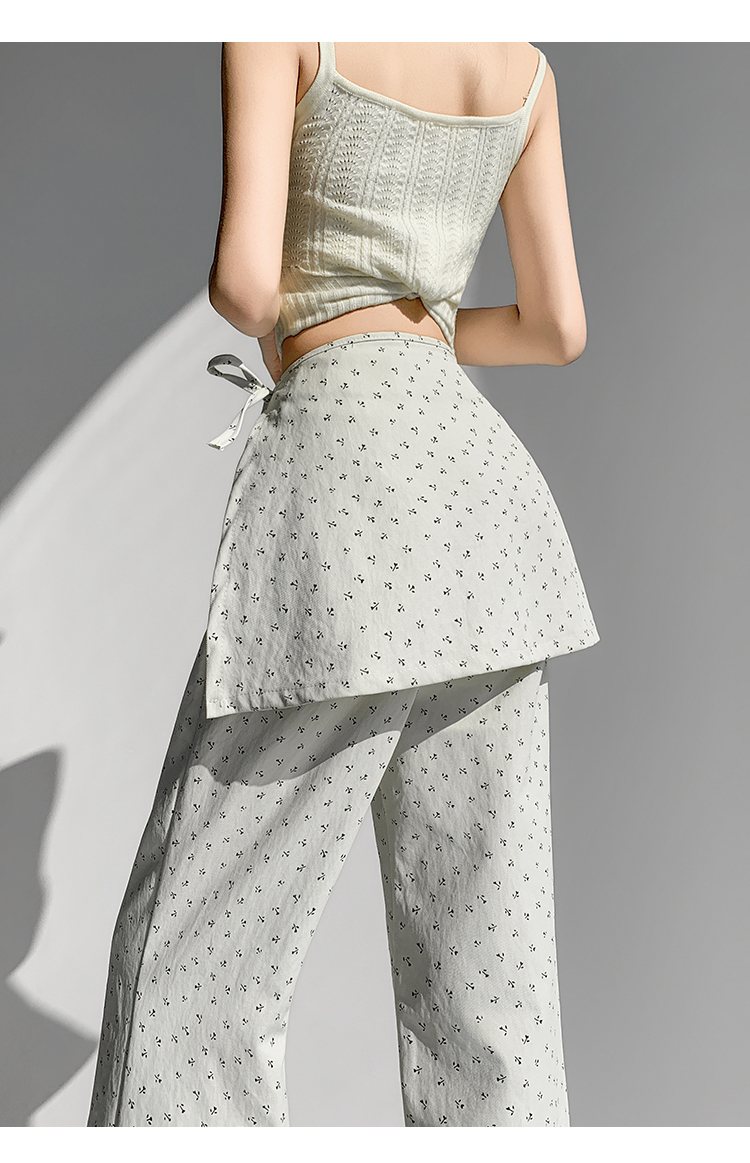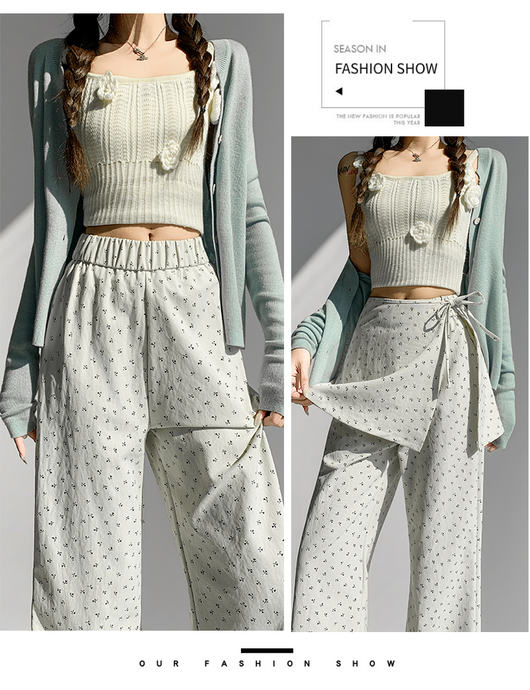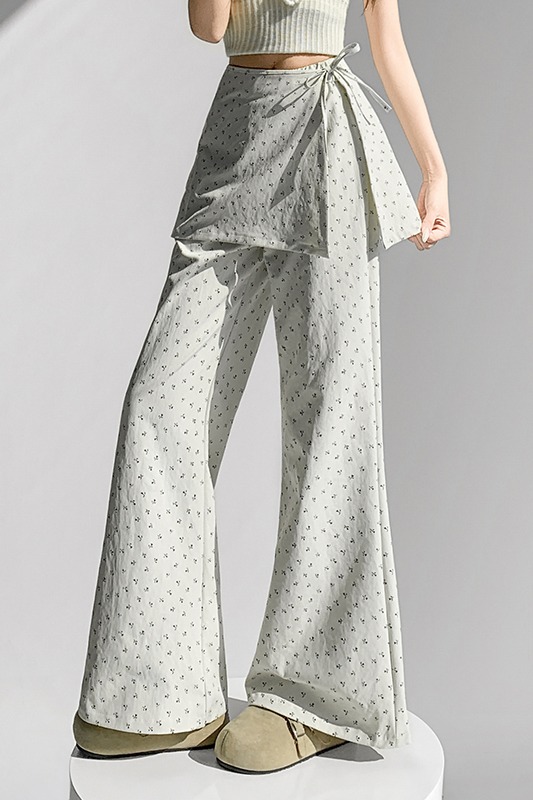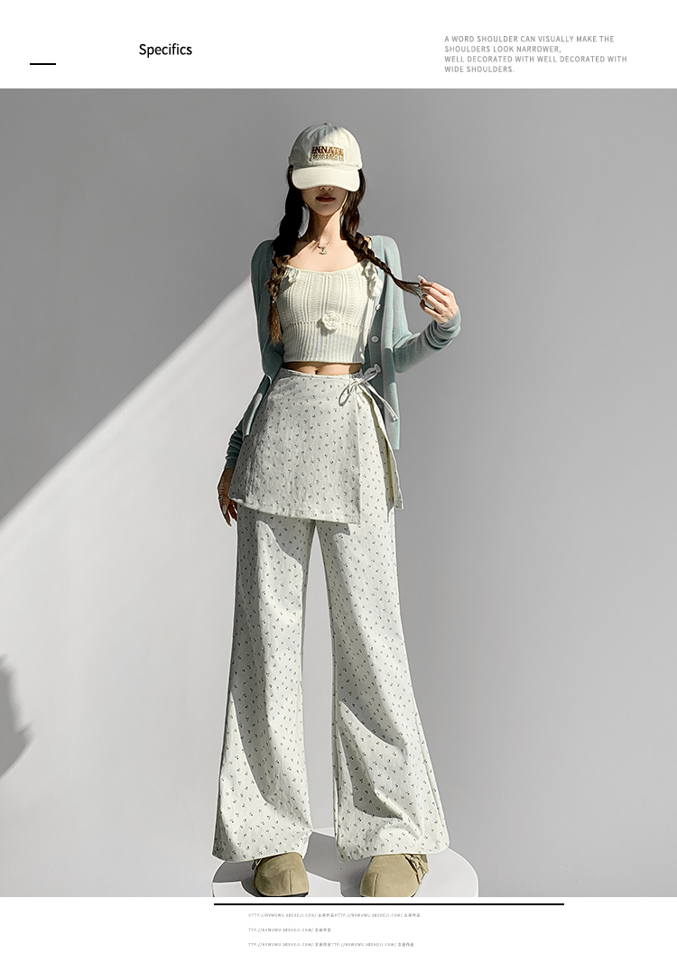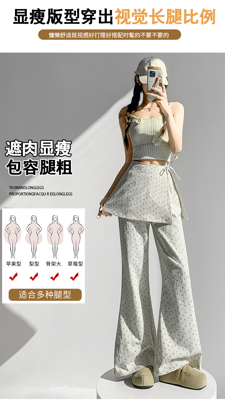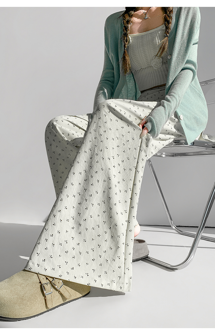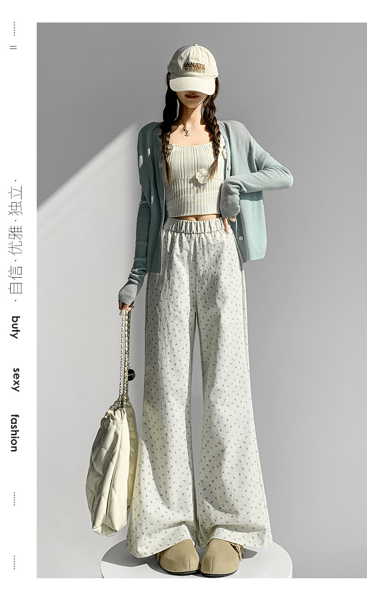 아메리칸 화이트 꽃무늬 캐주얼 와이드 레깅스 바지 2026 봄 축제 새로운 하이웨이스트 루즈핏 방귀 커튼 슬림해 보이는 바닥 청소 바지