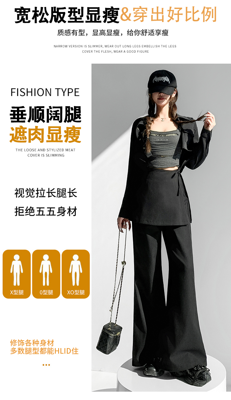 실사 2026 여름 새로운 핫픽스 정장 와이드 레그 팬츠 느긋한 하이웨이스트 도루 센스 캐주얼 스트레이트 바닥 청소 긴 바지 여성