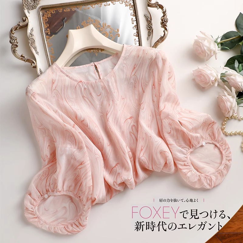 2026 봄 여름 새로운 프랑스식 도트 무늬 쉬폰 여성 셔츠 디자인 센스 작은 대중 7부 소매 맨위 부드러운 바람 슬림해 보이는