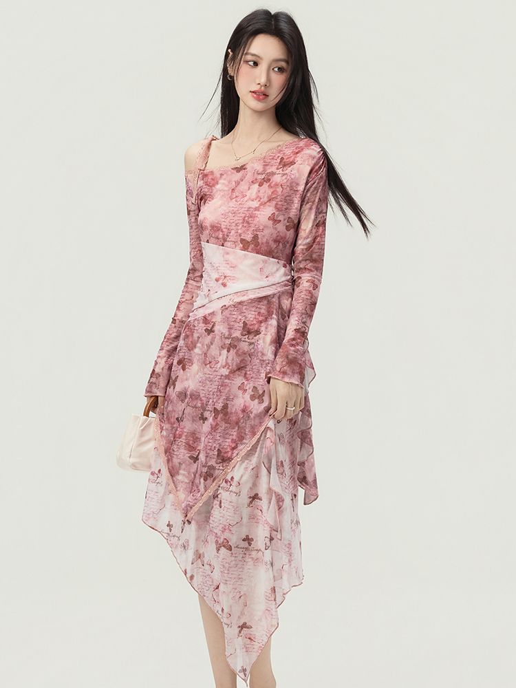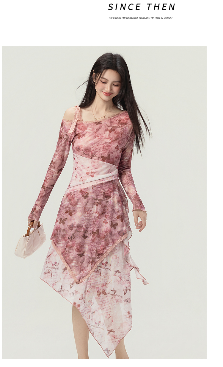 seenfaan 전체 프랑스식 낭만주의 바람 순수한 욕망 드레스 몸매 가꾸기 비대칭 밑단 디자인 센스 품격 치마