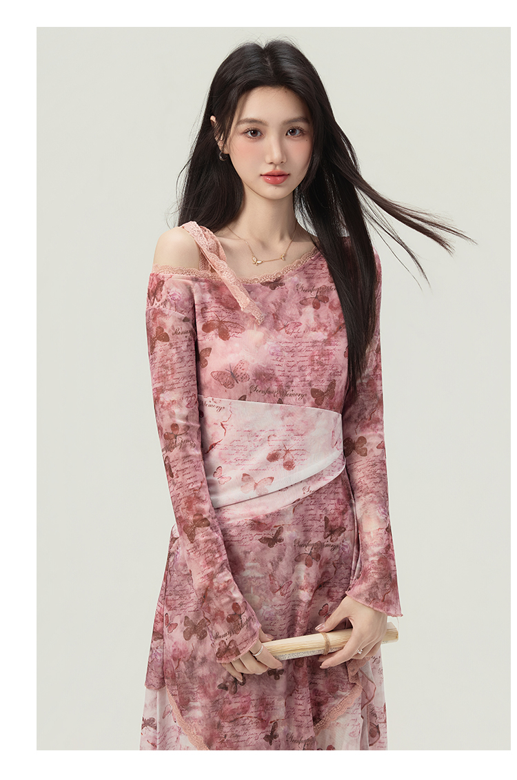 2026 여름 새로운 프랑스식 핑크색 꽃무늬 레이스 드레스 여성 의류 고급 센스 품격 허리 수축 치마