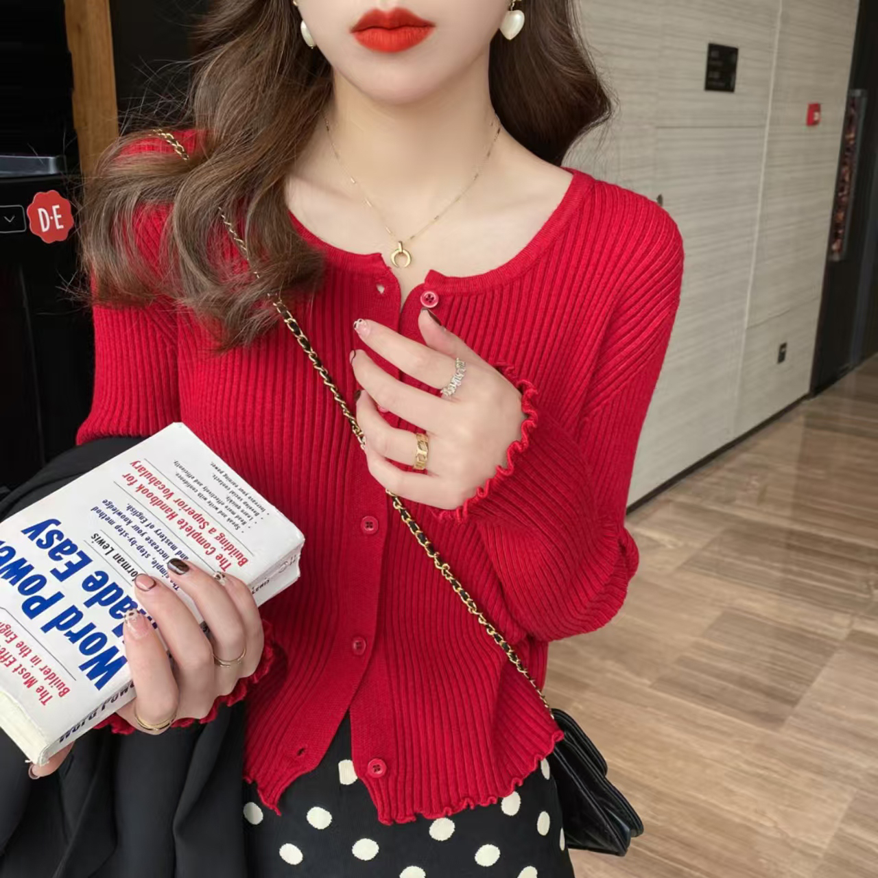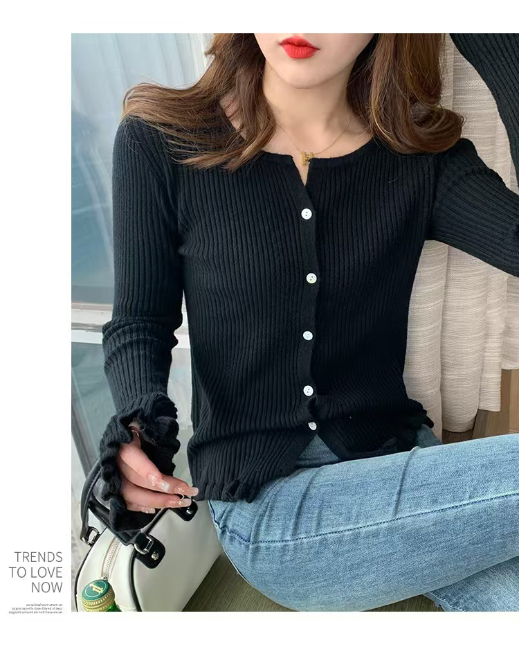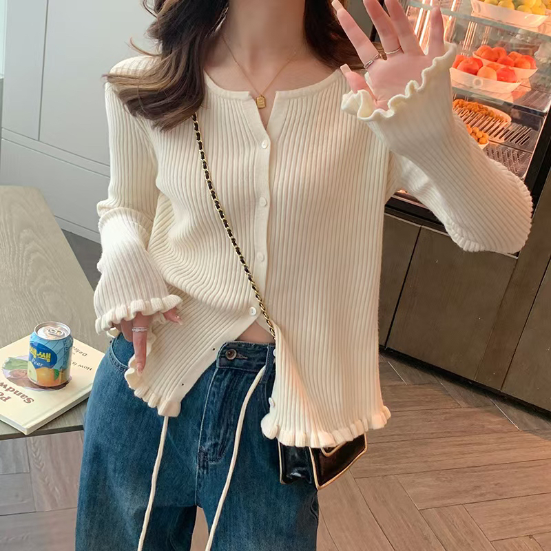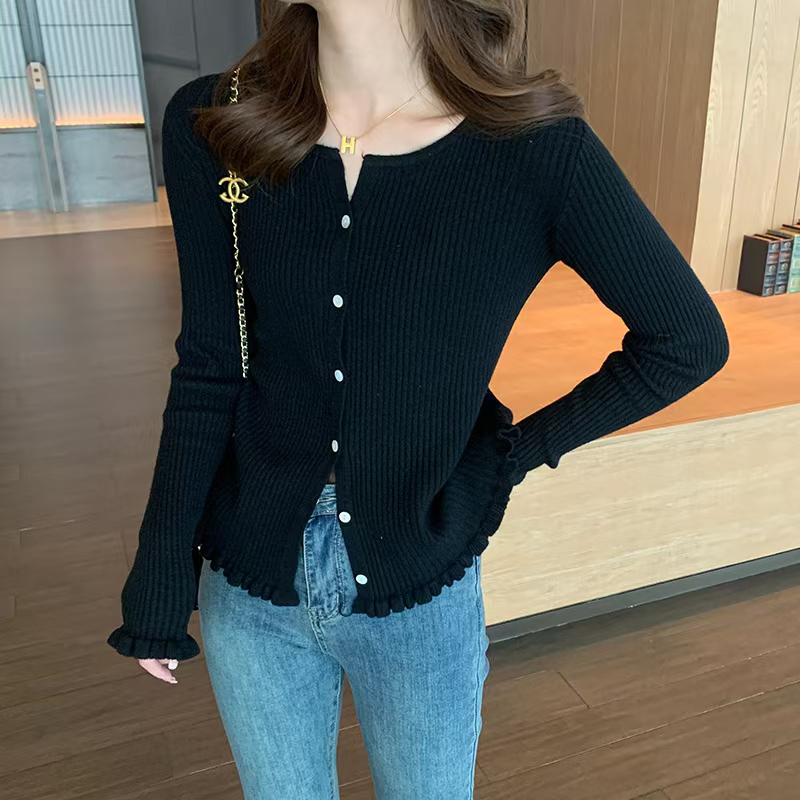 한 부서 작은 말 자수 색상 버클 얇은 스타일 니트 오픈 가디건 맨위 여성 출퇴근 다용도 슬림해 보이는 반팔 니트 오픈 가디건