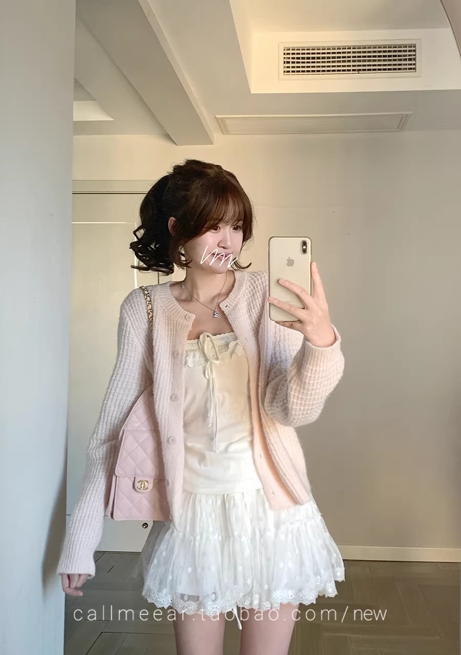 후아 남편 그리드 스웨터 니트 오픈 가디건 여성 이른 봄 새로운 루즈핏 슬림해 보이는 긴팔 맨위