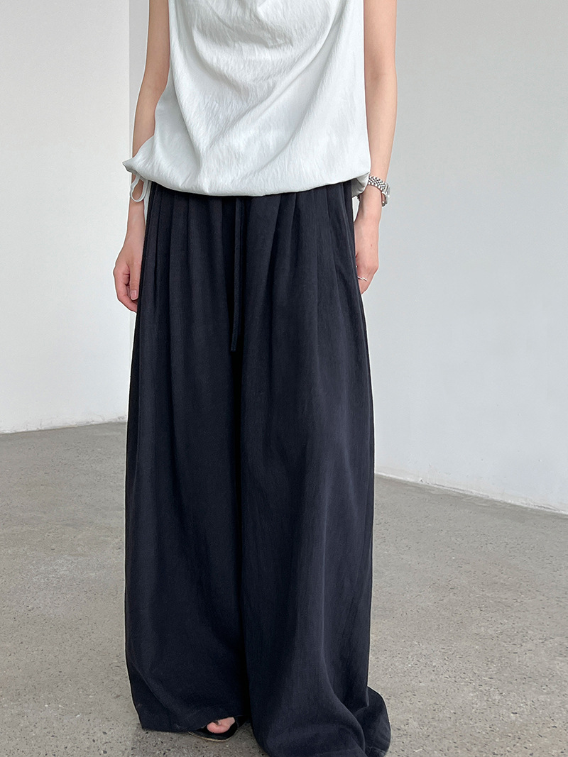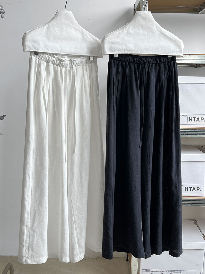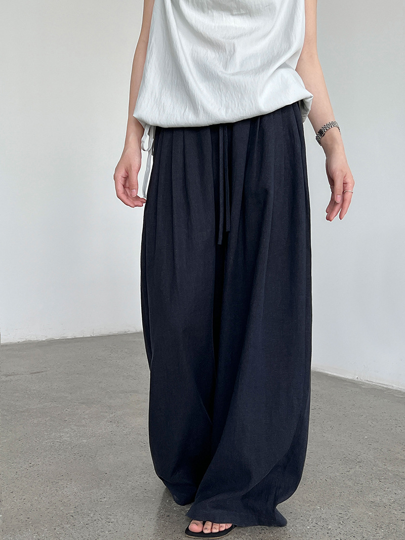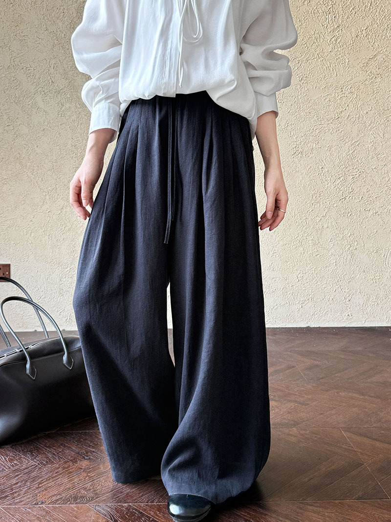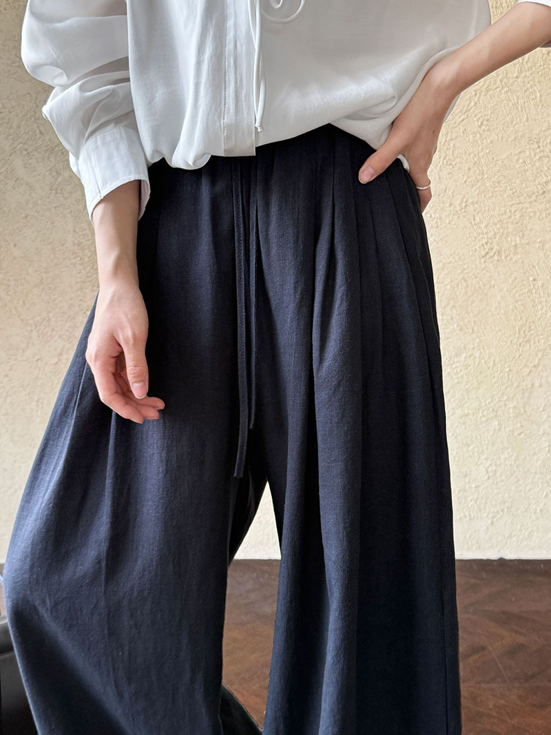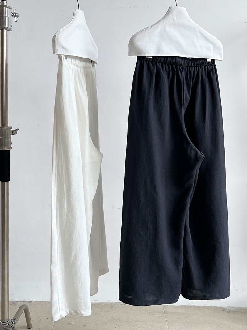 일본식 야마모토 바지 다용도 캐주얼 슬림해 보이는 와이드 레깅스 바지 여름 출퇴근 면 라미 긴 바지 얇은 스타일