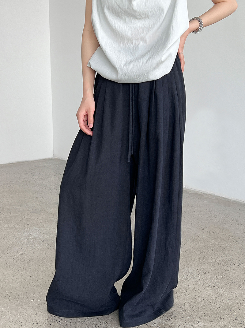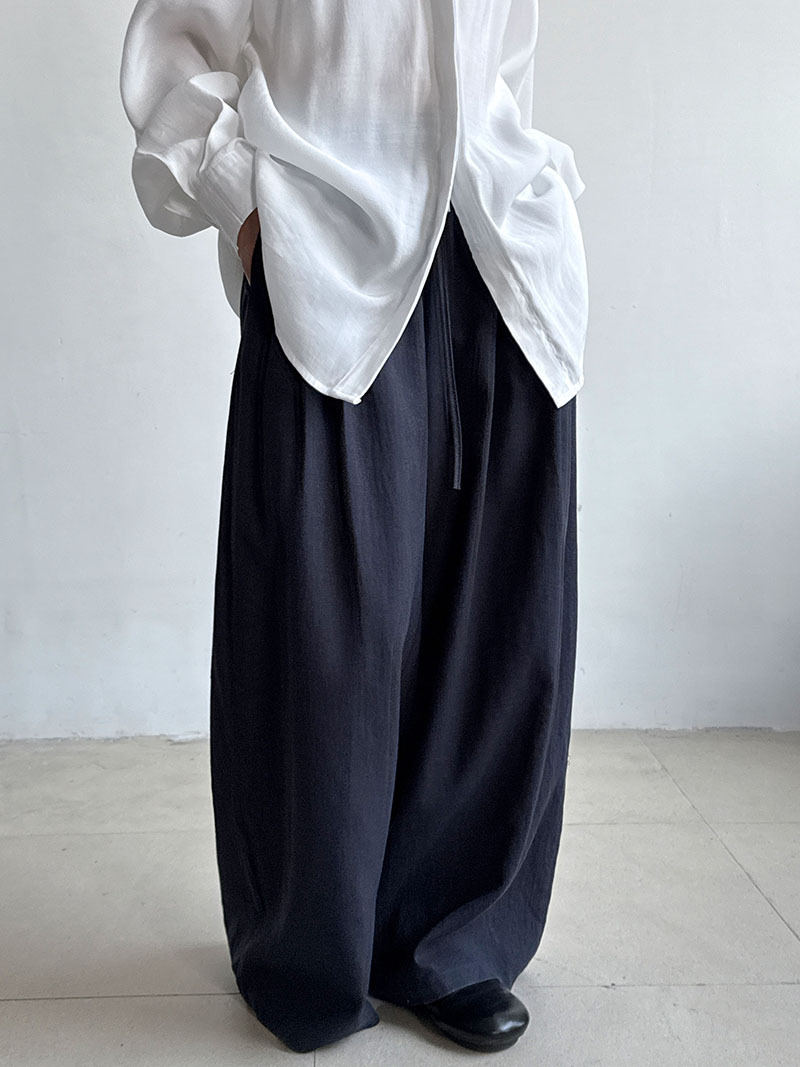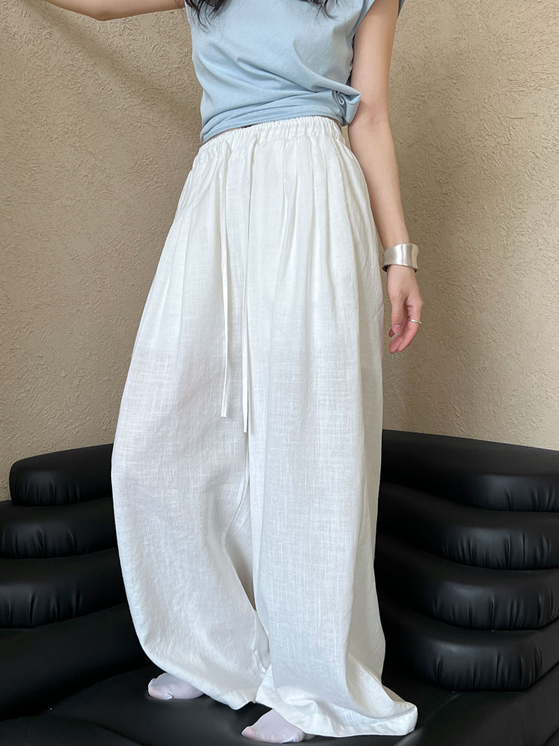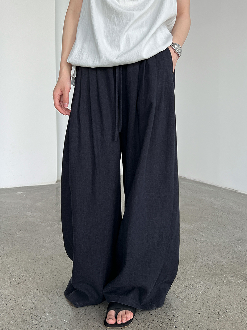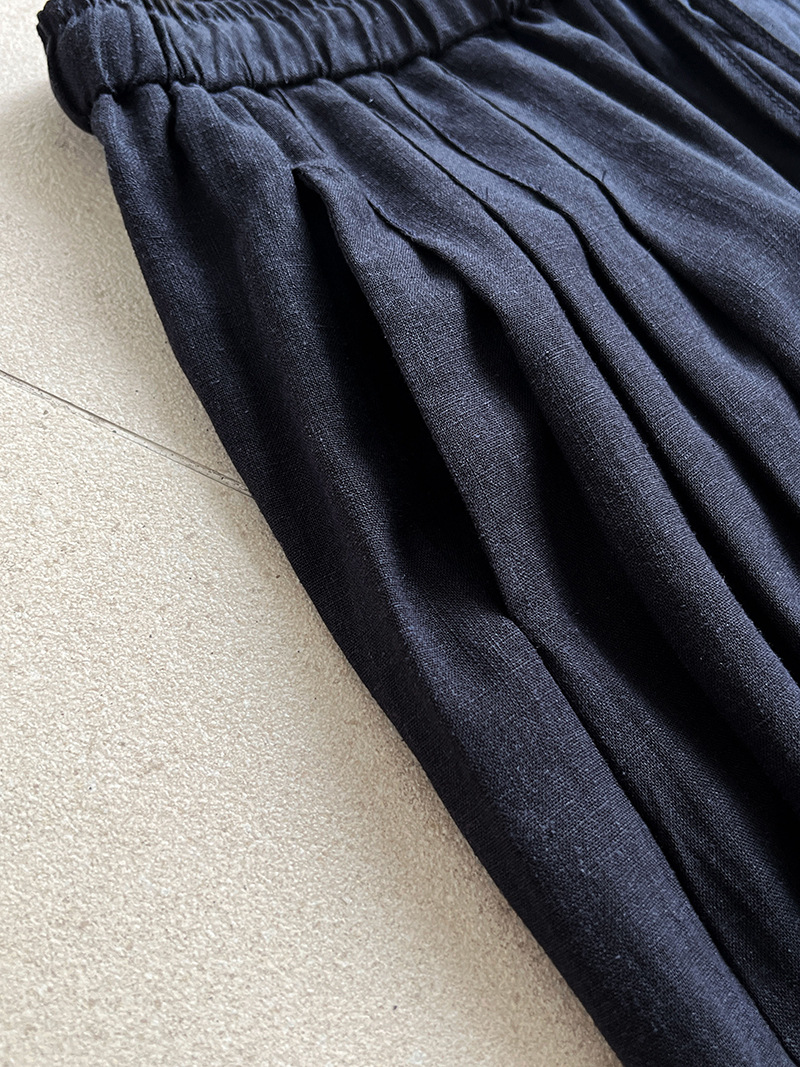 일본식 야마모토 바지 다용도 캐주얼 슬림해 보이는 와이드 레깅스 바지 여름 출퇴근 면 라미 긴 바지 얇은 스타일