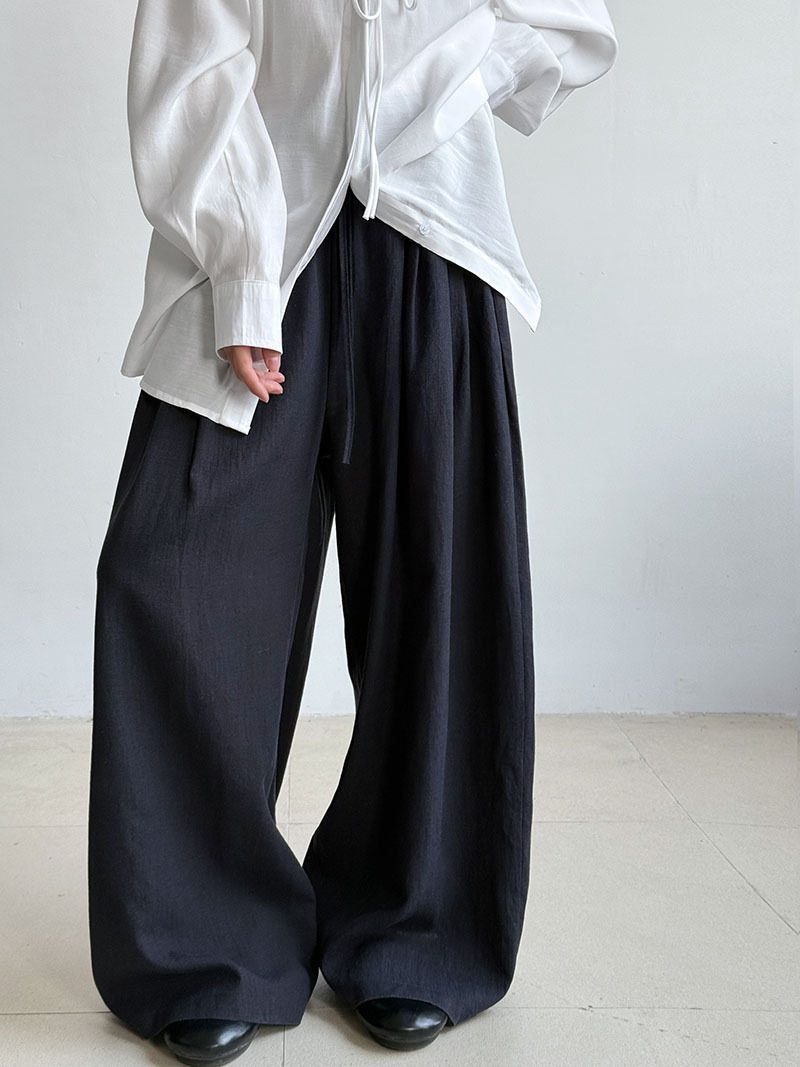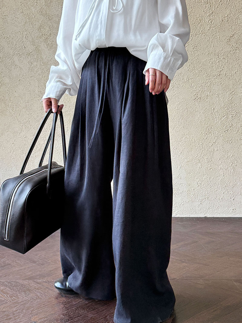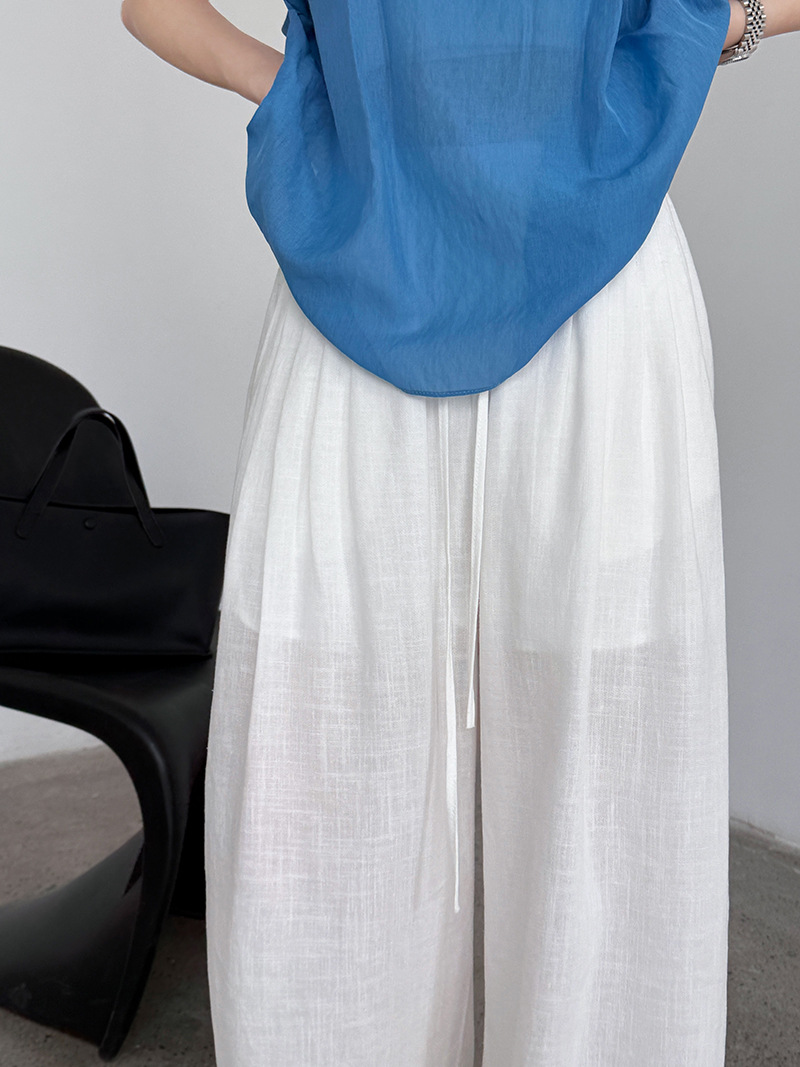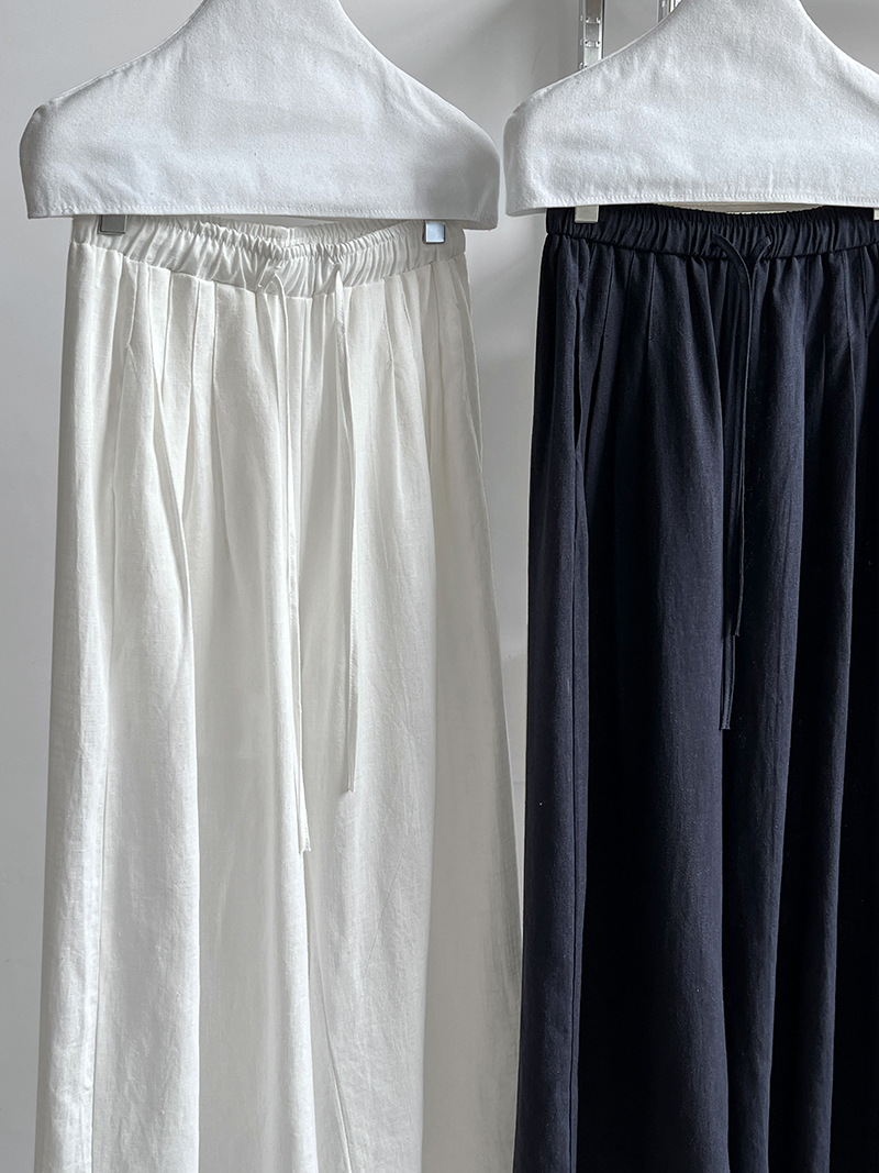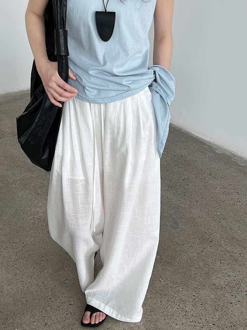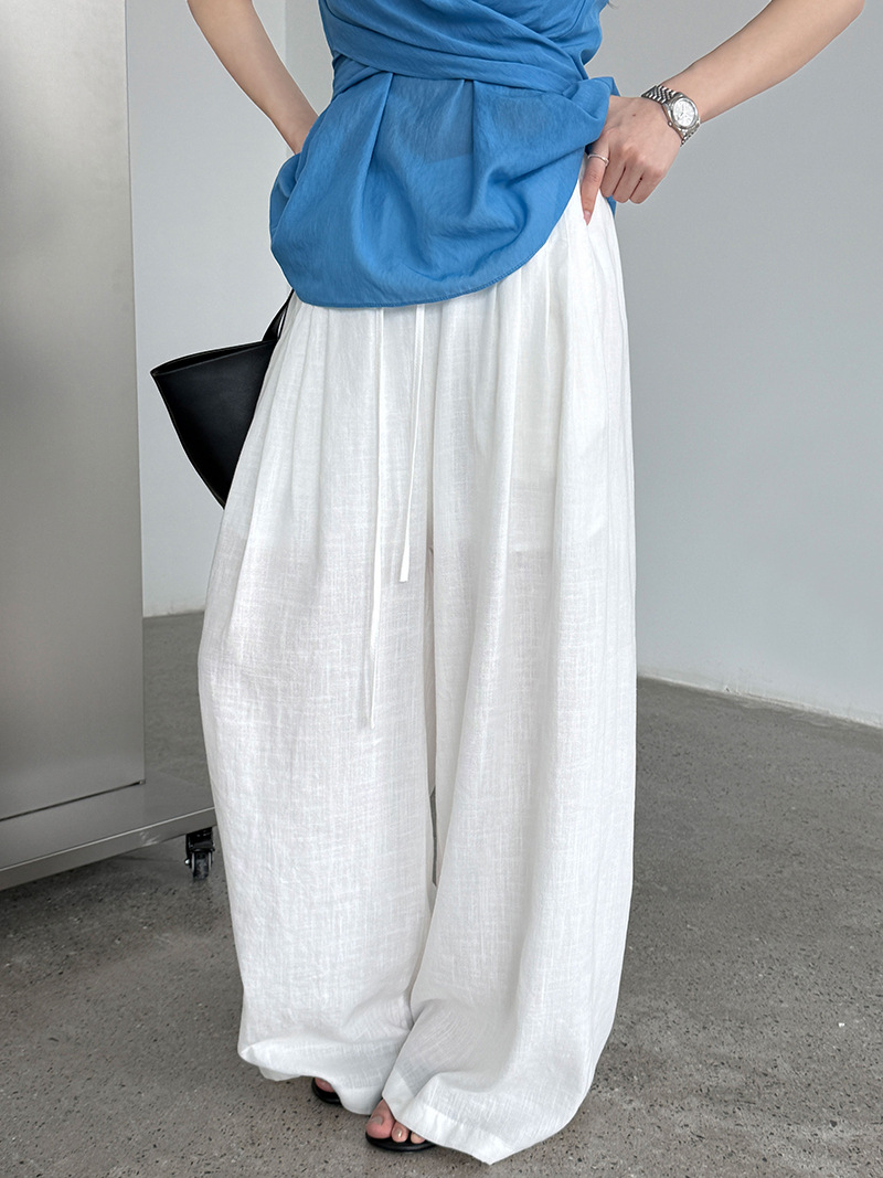일본식 야마모토 바지 다용도 캐주얼 슬림해 보이는 와이드 레깅스 바지 여름 출퇴근 면 라미 긴 바지 얇은 스타일