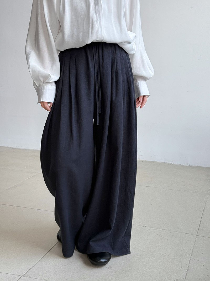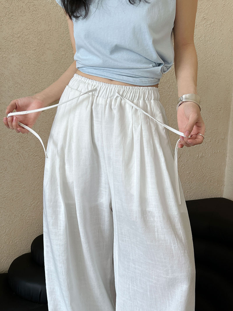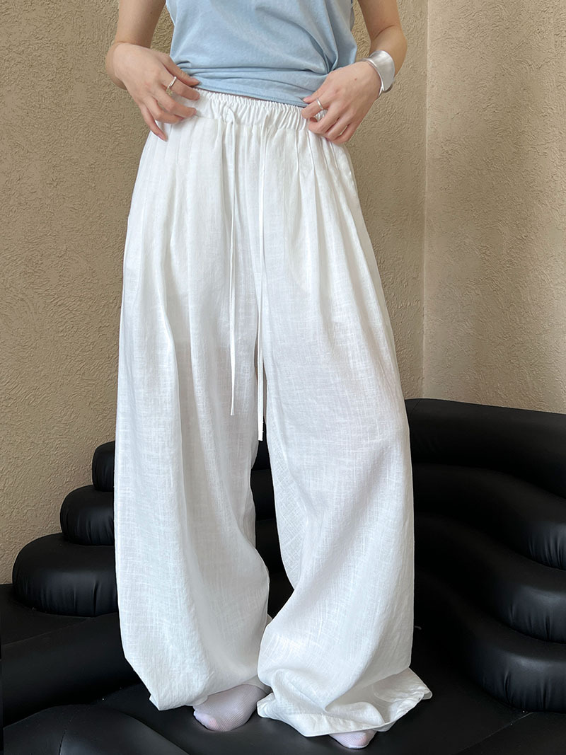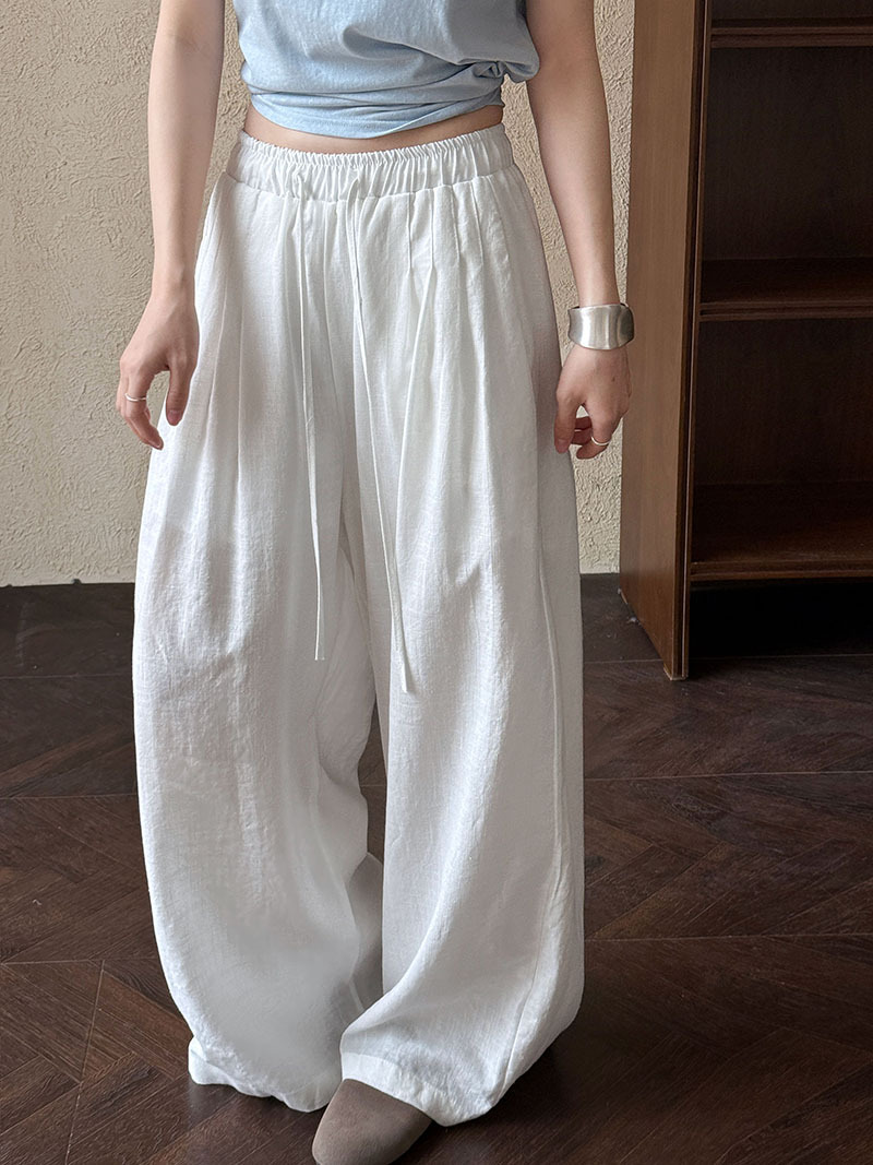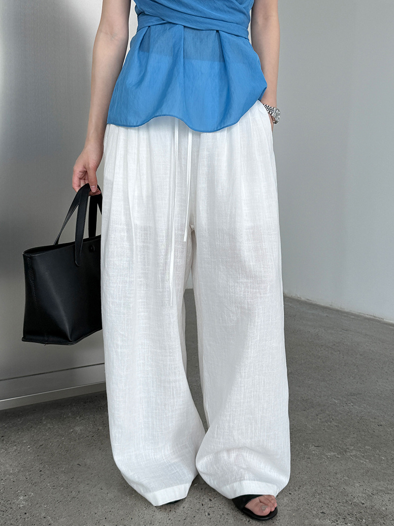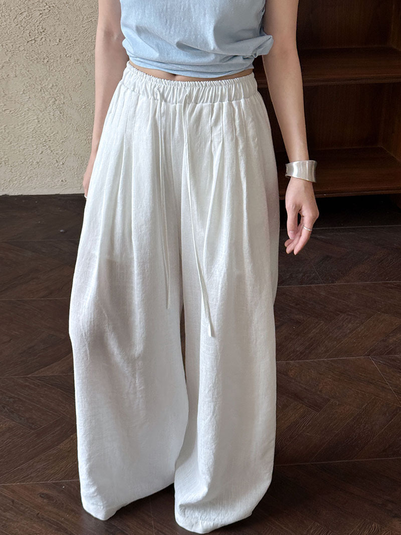 일본식 야마모토 바지 다용도 캐주얼 슬림해 보이는 와이드 레깅스 바지 여름 출퇴근 면 라미 긴 바지 얇은 스타일