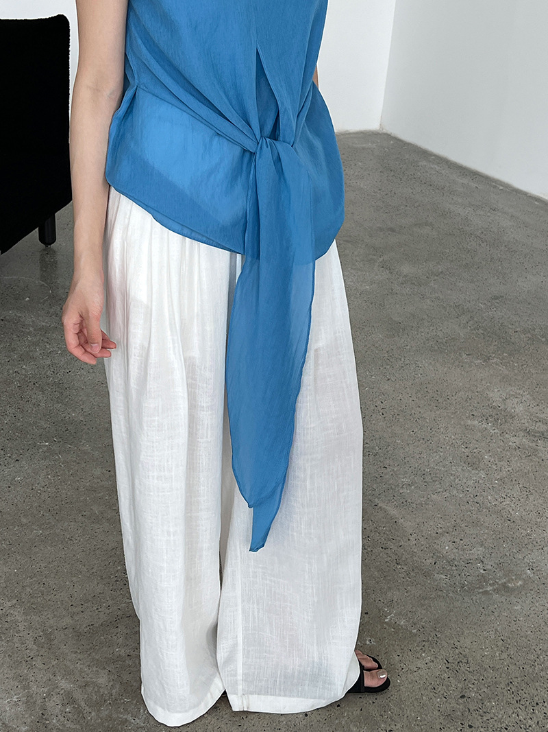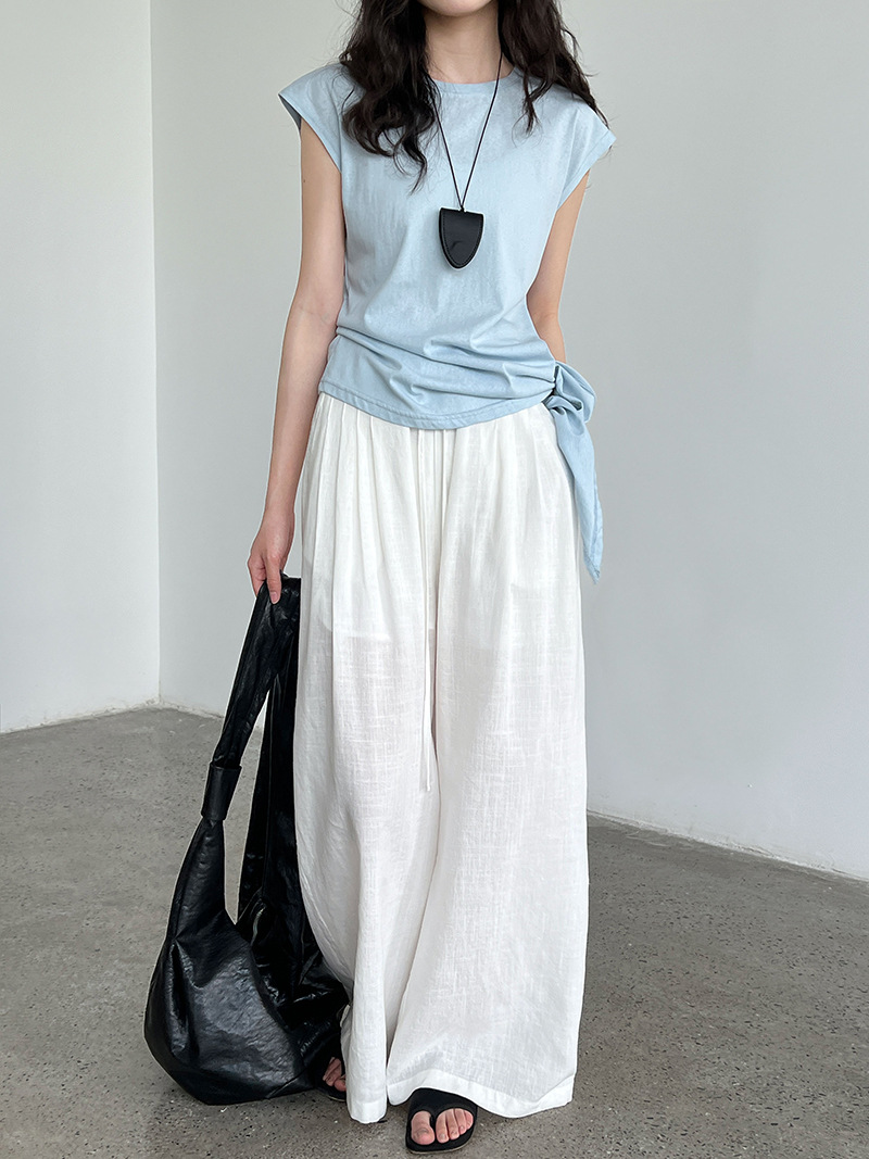 오래된 돈 바람 V넥 아마 스트랩 허리 수축 민소매 맨위 캐주얼 바지 여름 새로운 투피스 세트