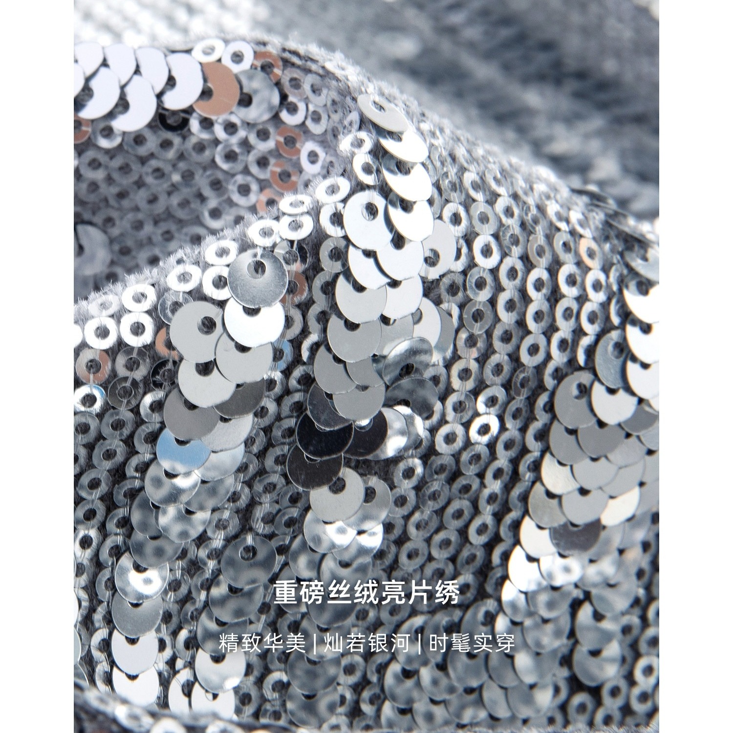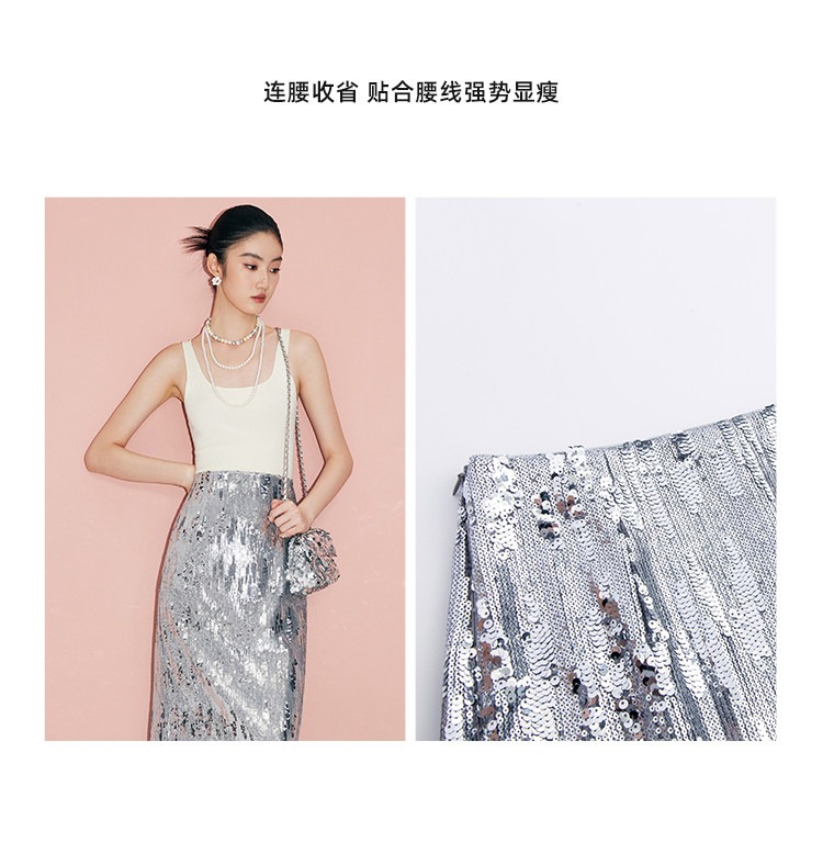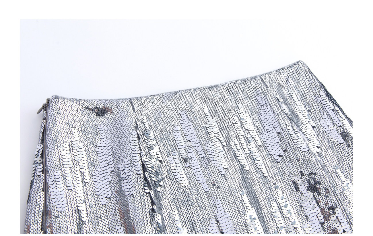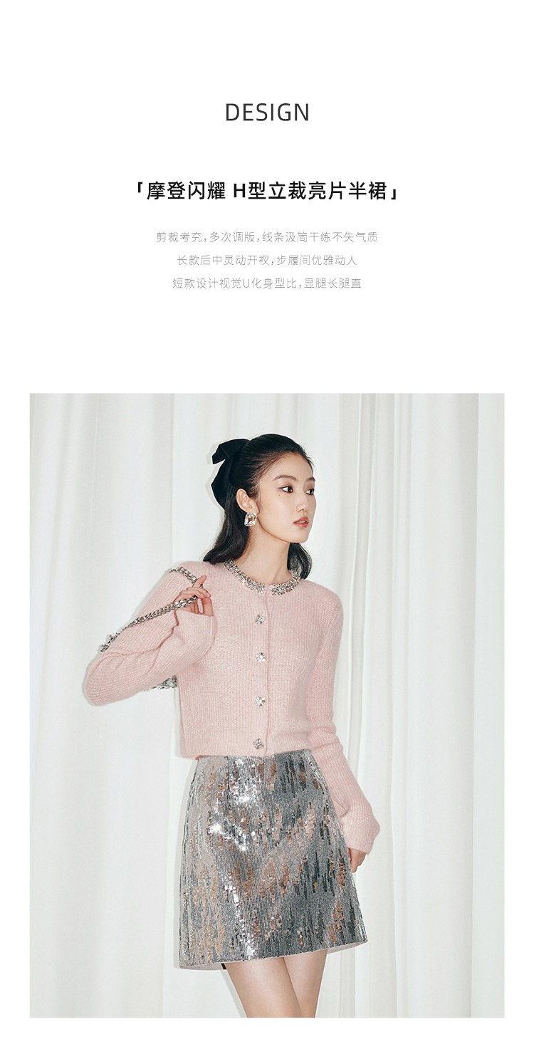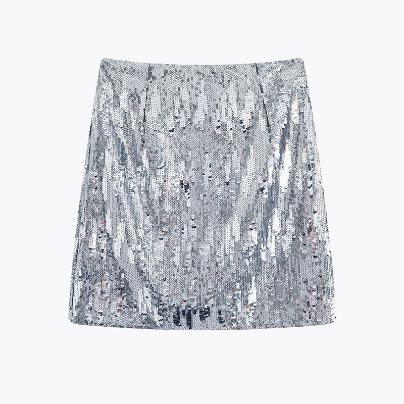 실버 구슬 조각 자수 벨벳 스팽글 반신 스커트 여성 봄 품격 슬림해 보이는 짧은 치마