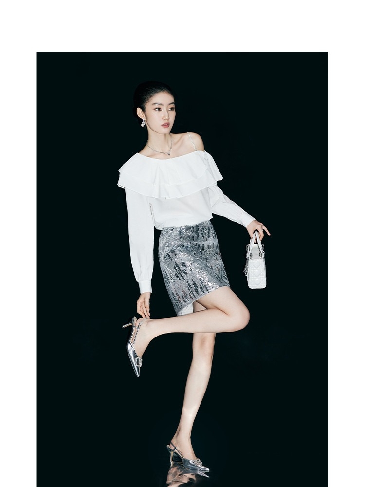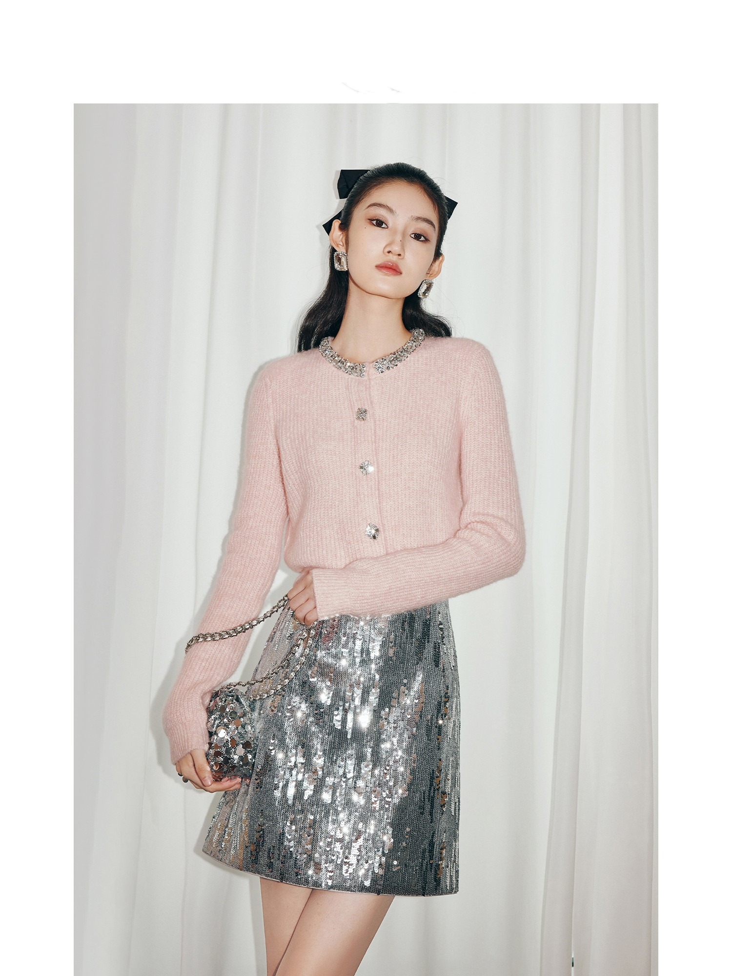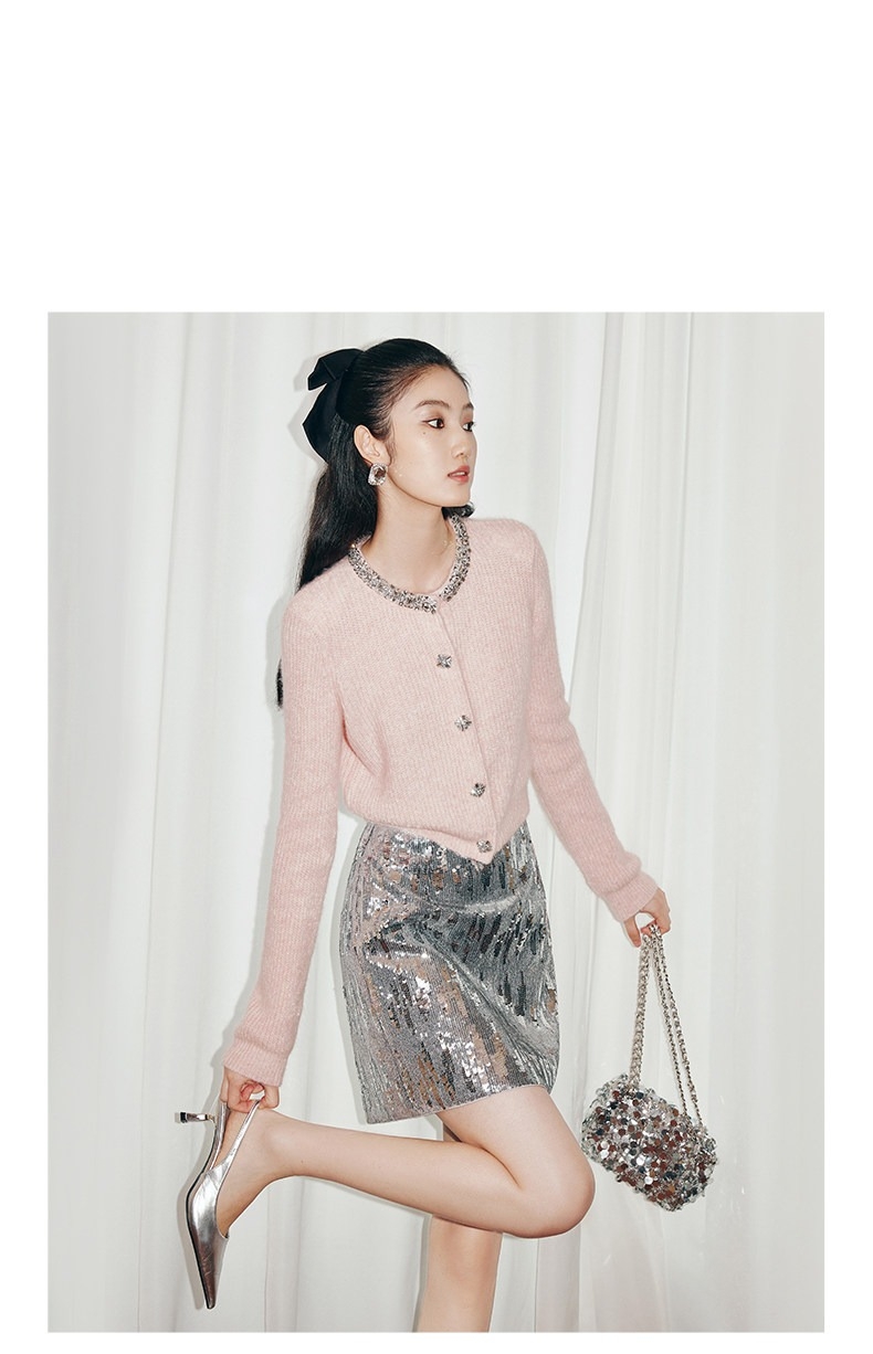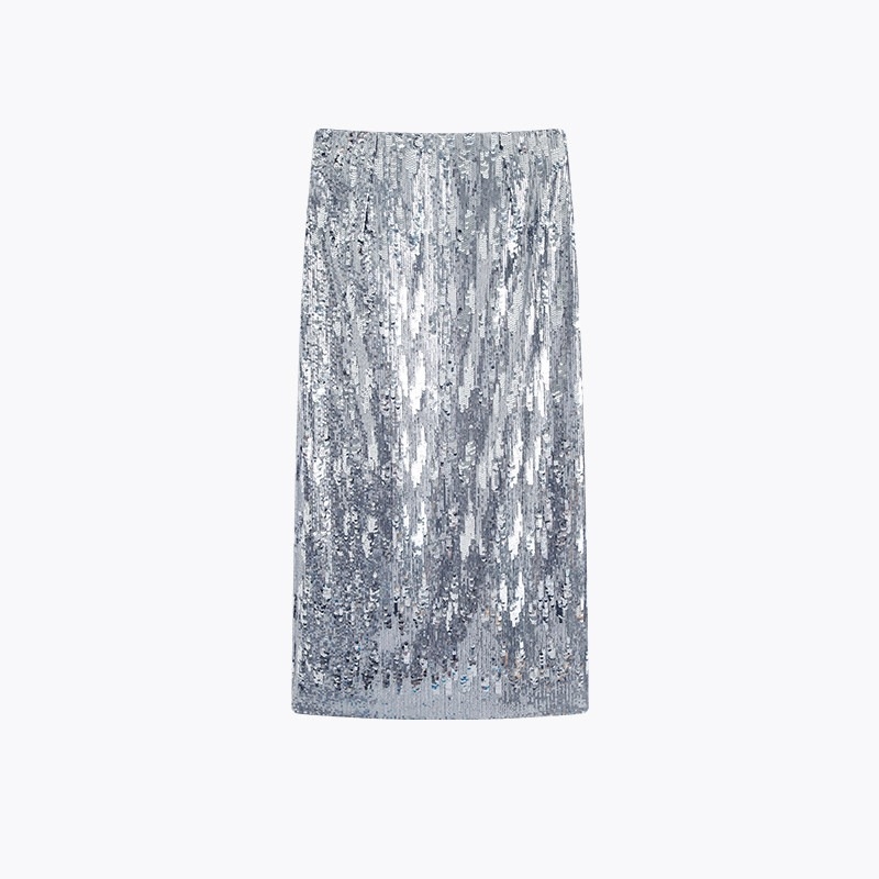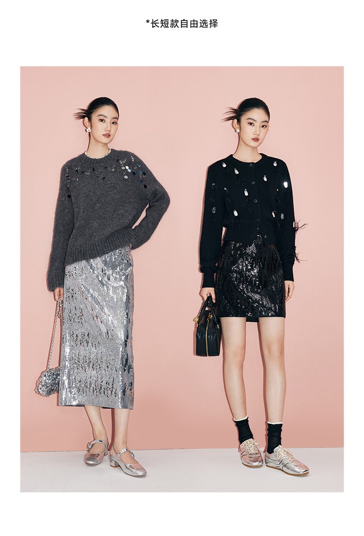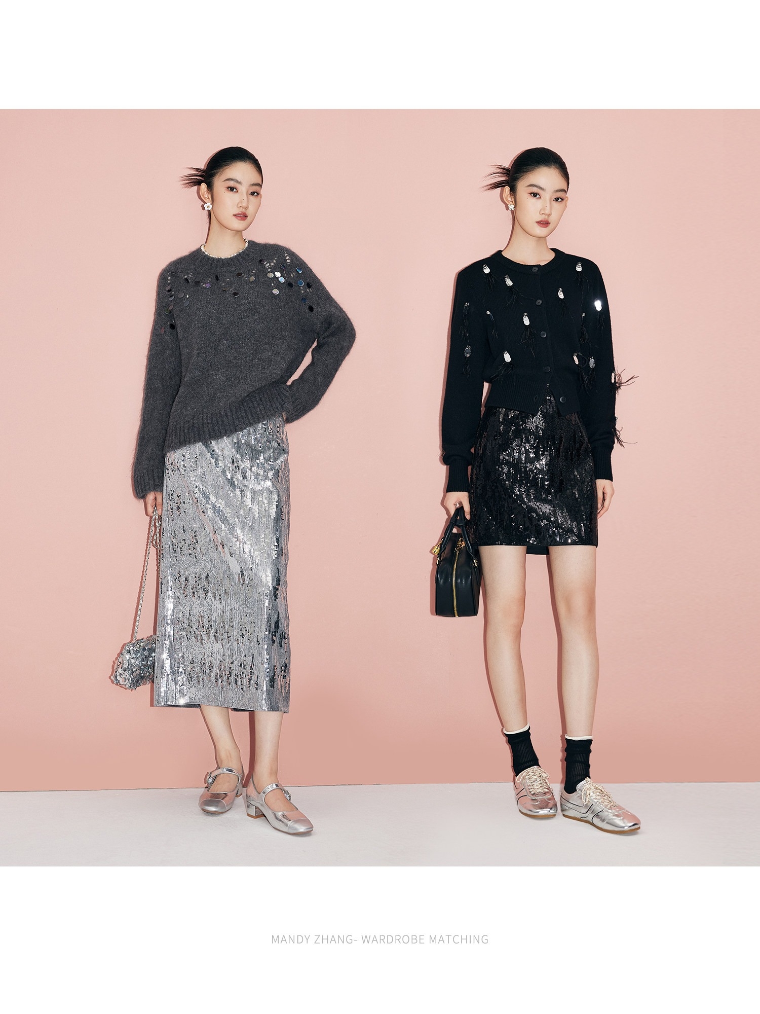 실버 구슬 조각 자수 벨벳 스팽글 반신 스커트 여성 봄 품격 슬림해 보이는 짧은 치마