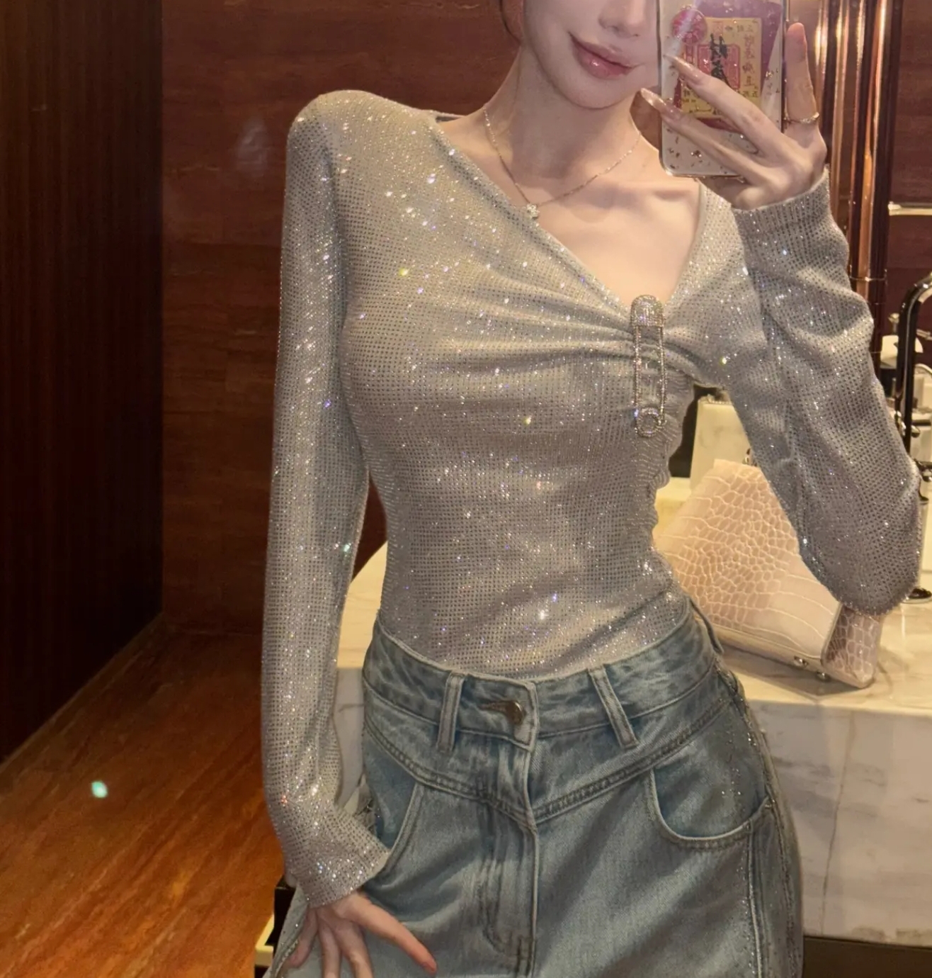제인 제인 홈 오프숄더 비스듬한 어깨 반팔 품격 새틴 하이웨이스트 다용도 도루 센스 슬림해 보이는 플리츠 반신 치마 세트