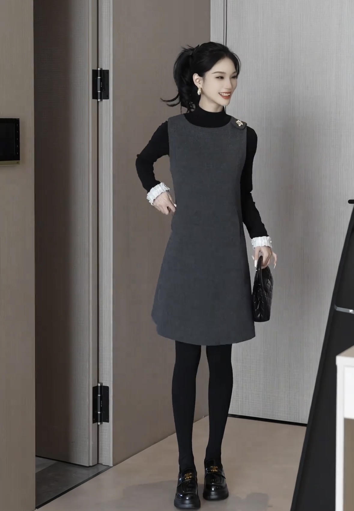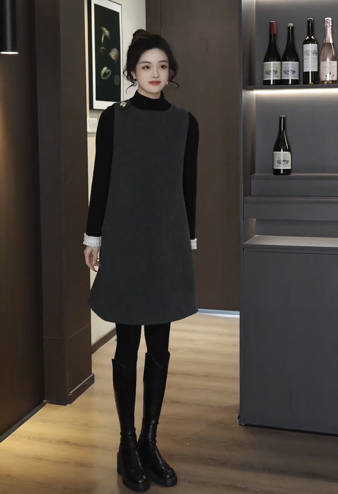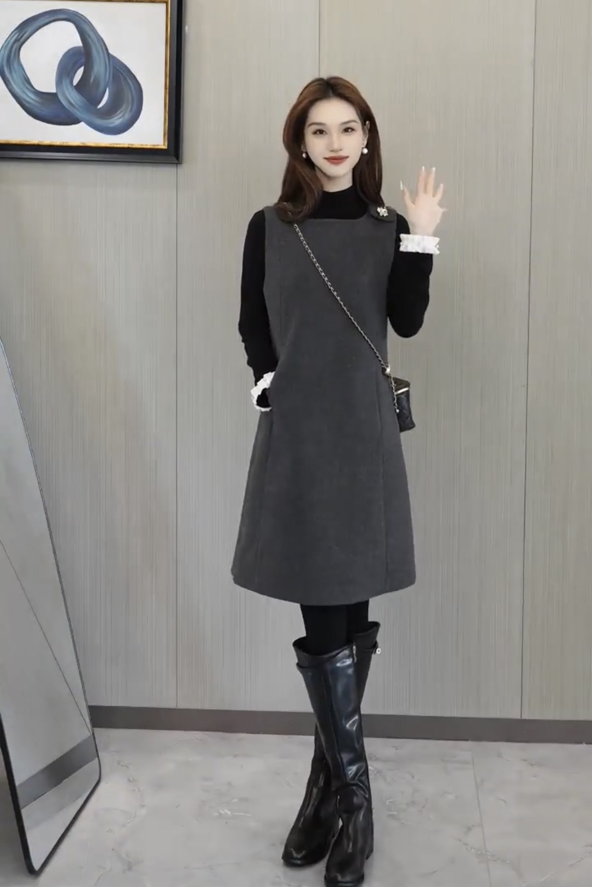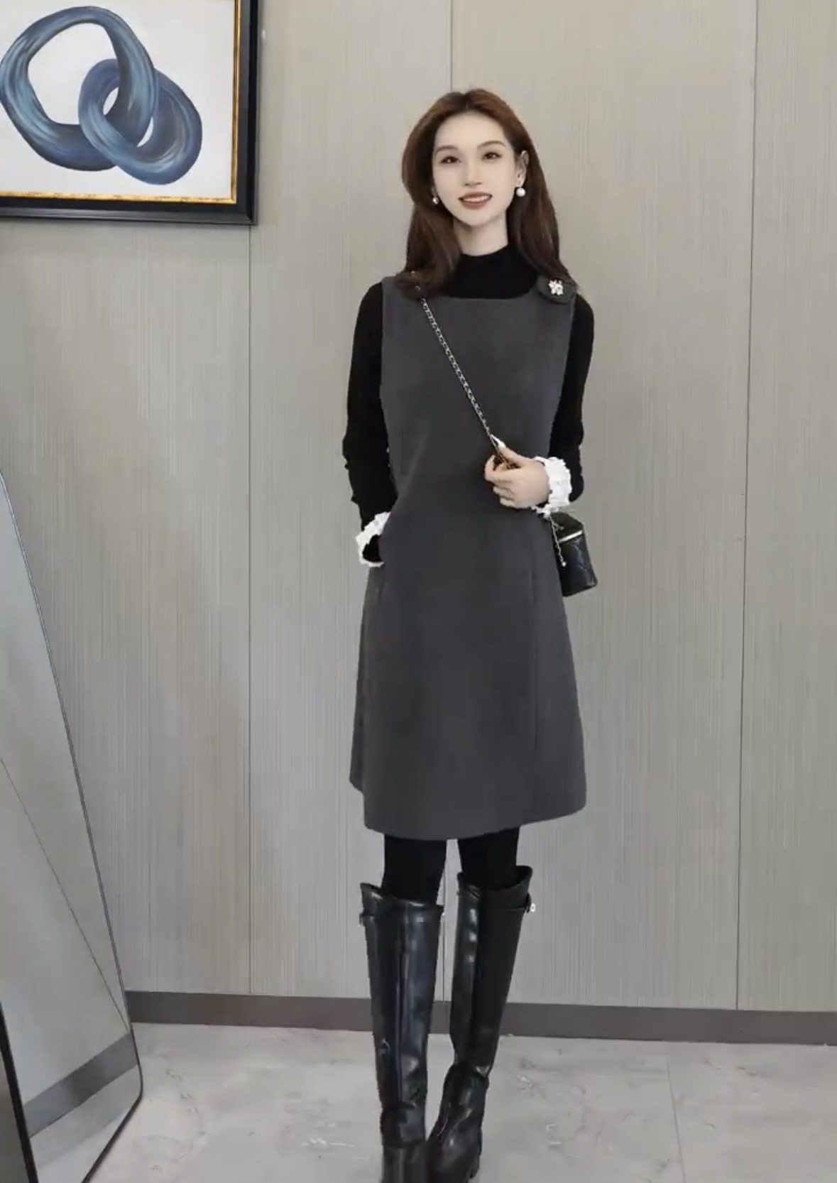 있음 선적 SEVEN 안뜰 겨울 작은 샤넬 스타일 비즈 박기 작은 버전 슬림해 보이는 품격 민소매 베스트 치마 8240# 만나는