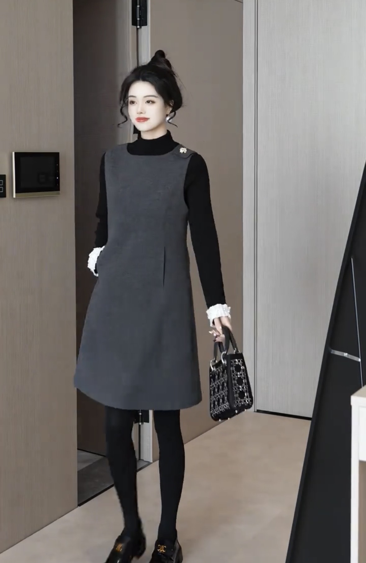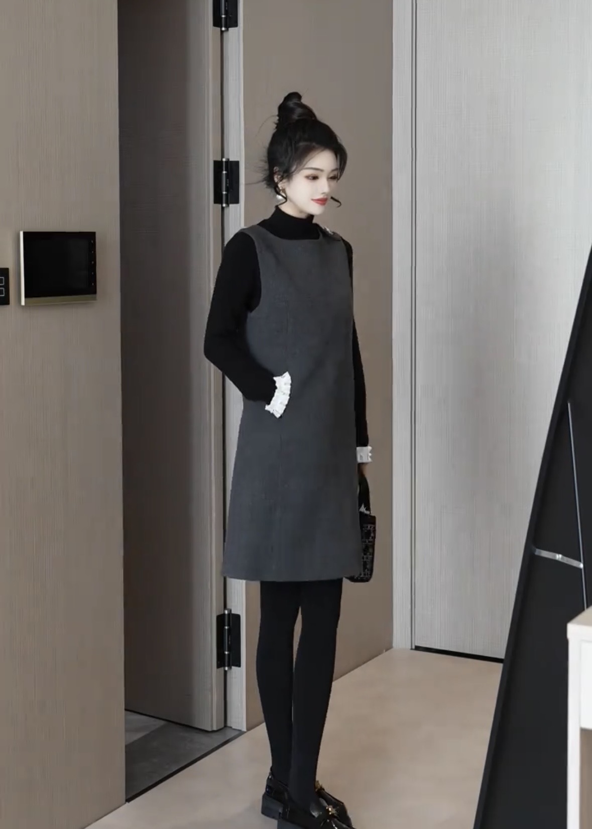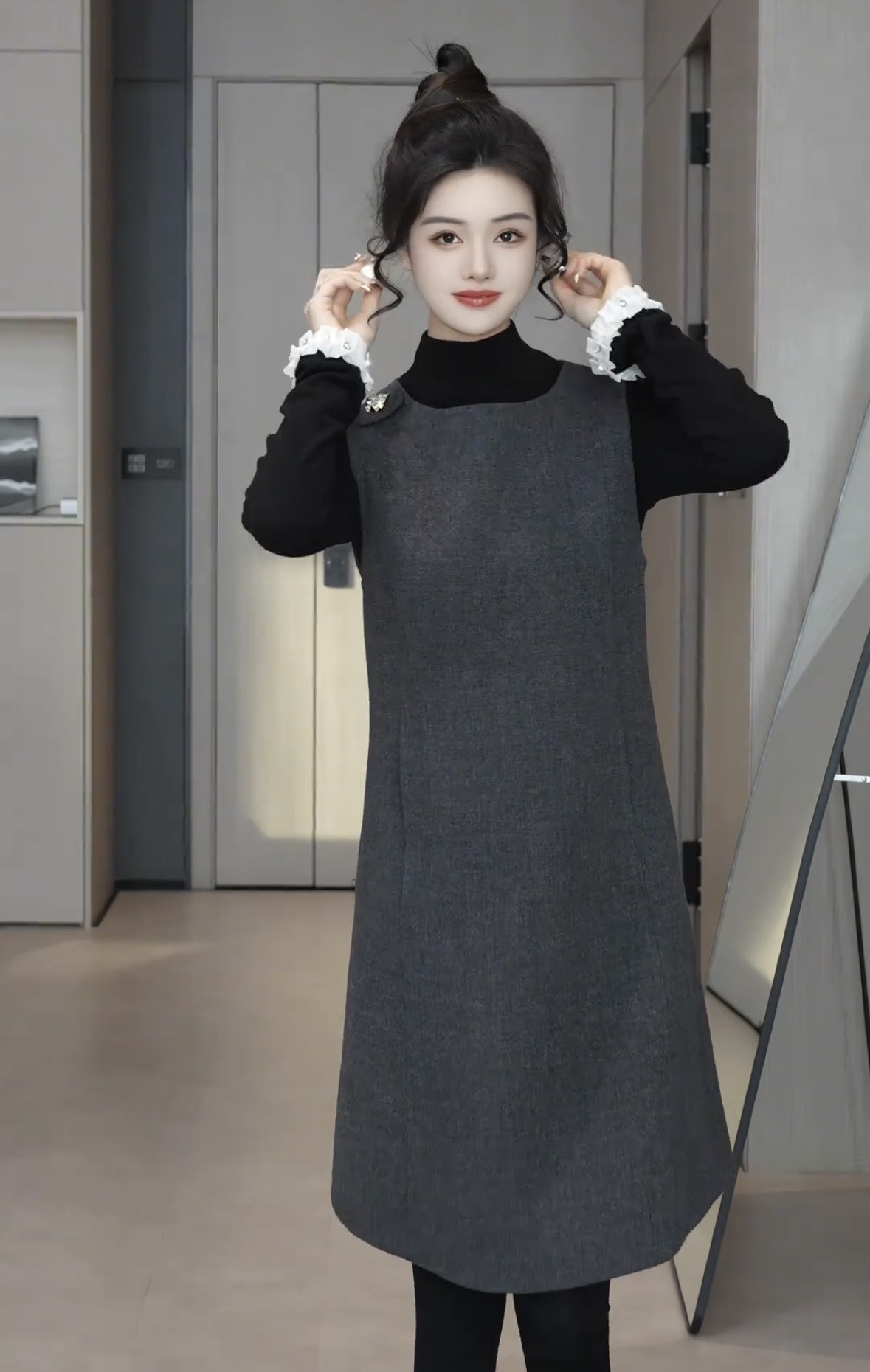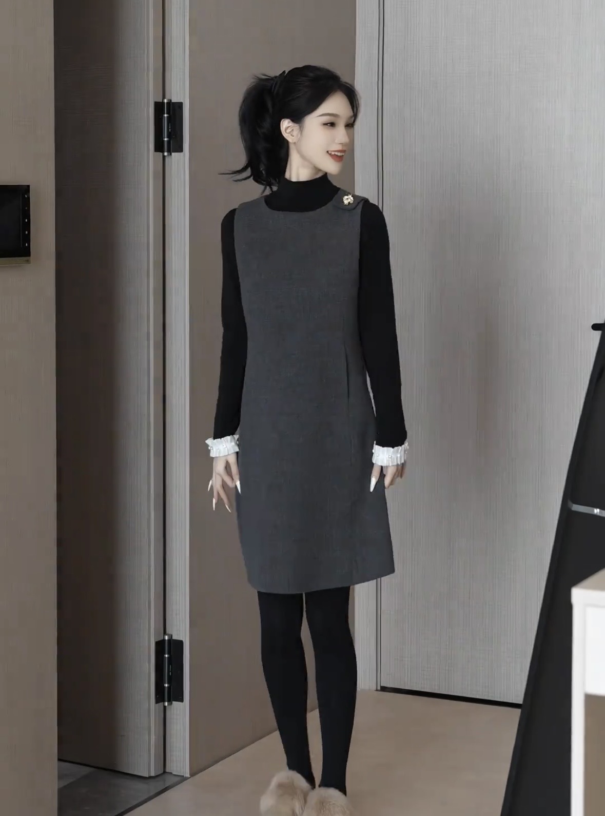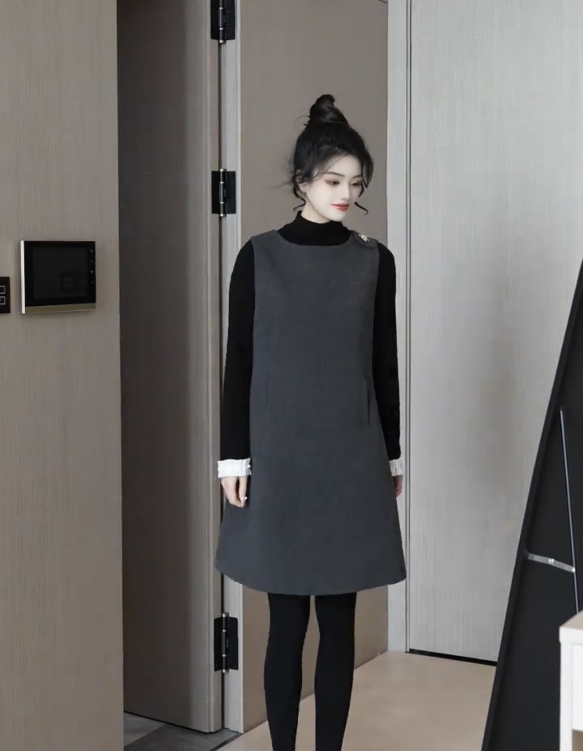 있음 선적 SEVEN 안뜰 겨울 작은 샤넬 스타일 비즈 박기 작은 버전 슬림해 보이는 품격 민소매 베스트 치마 8240# 만나는