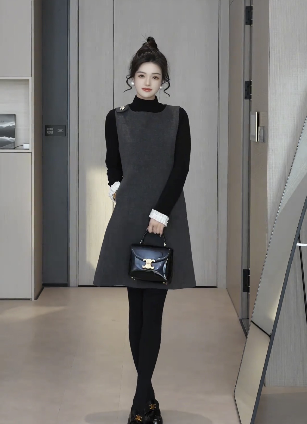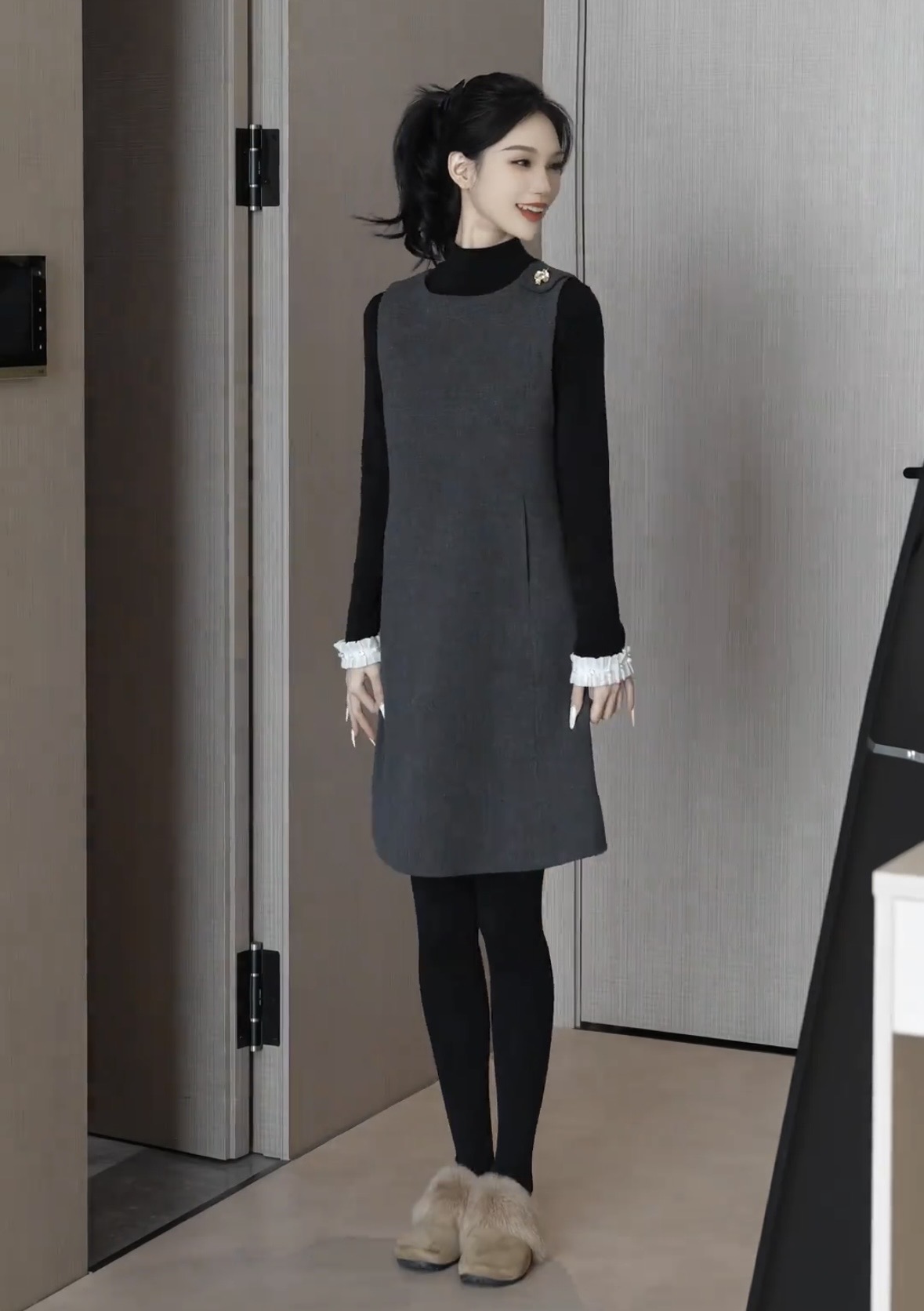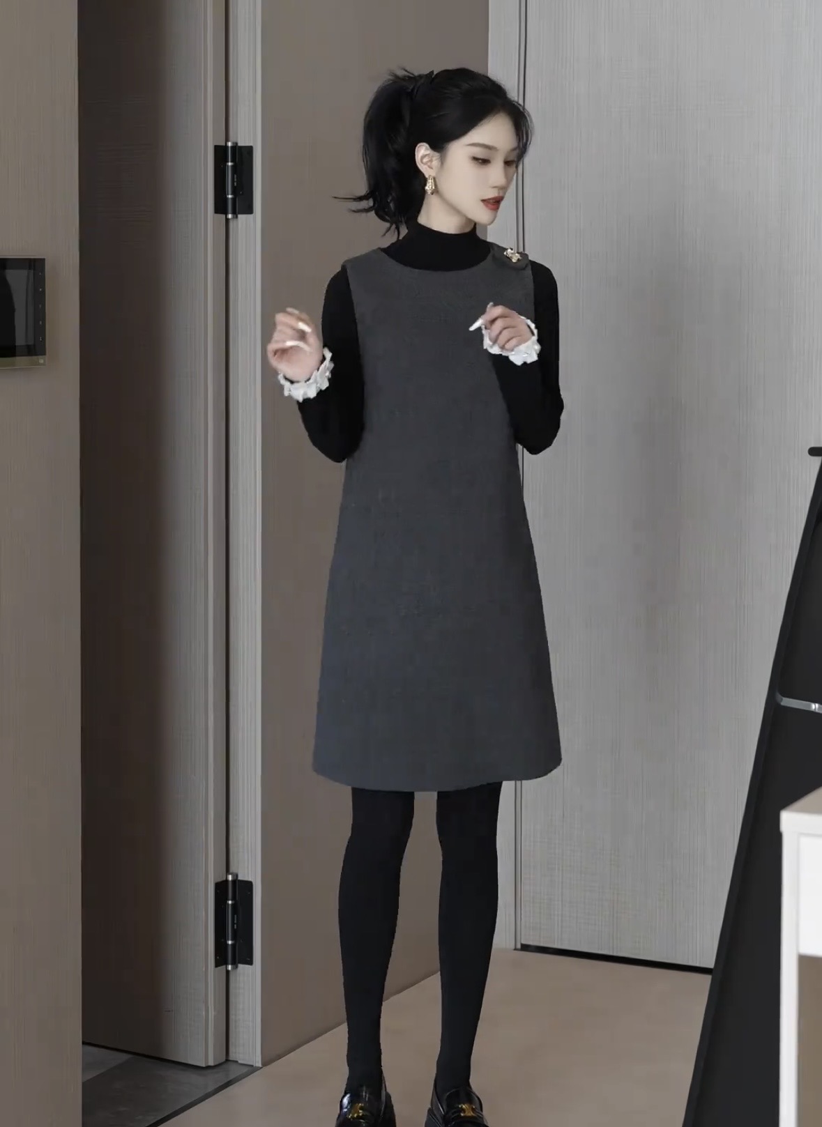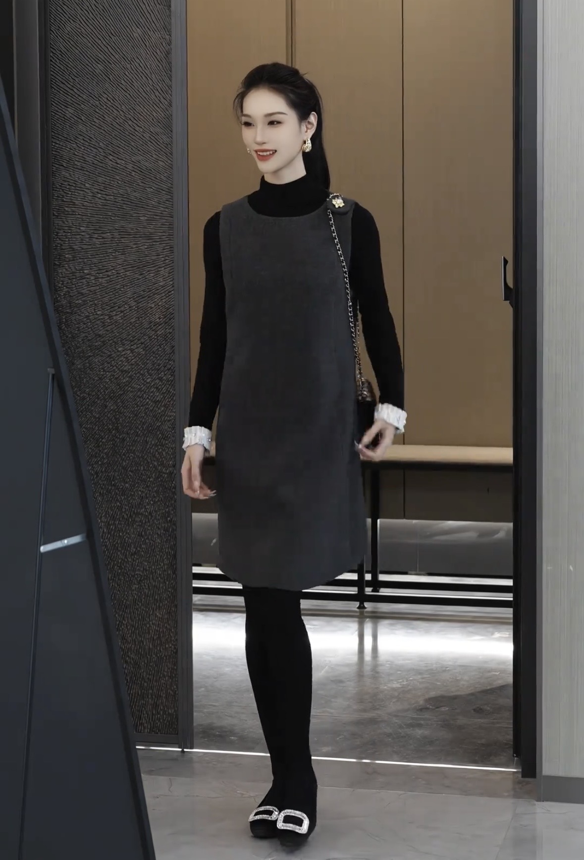 있음 선적 SEVEN 안뜰 겨울 작은 샤넬 스타일 비즈 박기 작은 버전 슬림해 보이는 품격 민소매 베스트 치마 8240# 만나는
