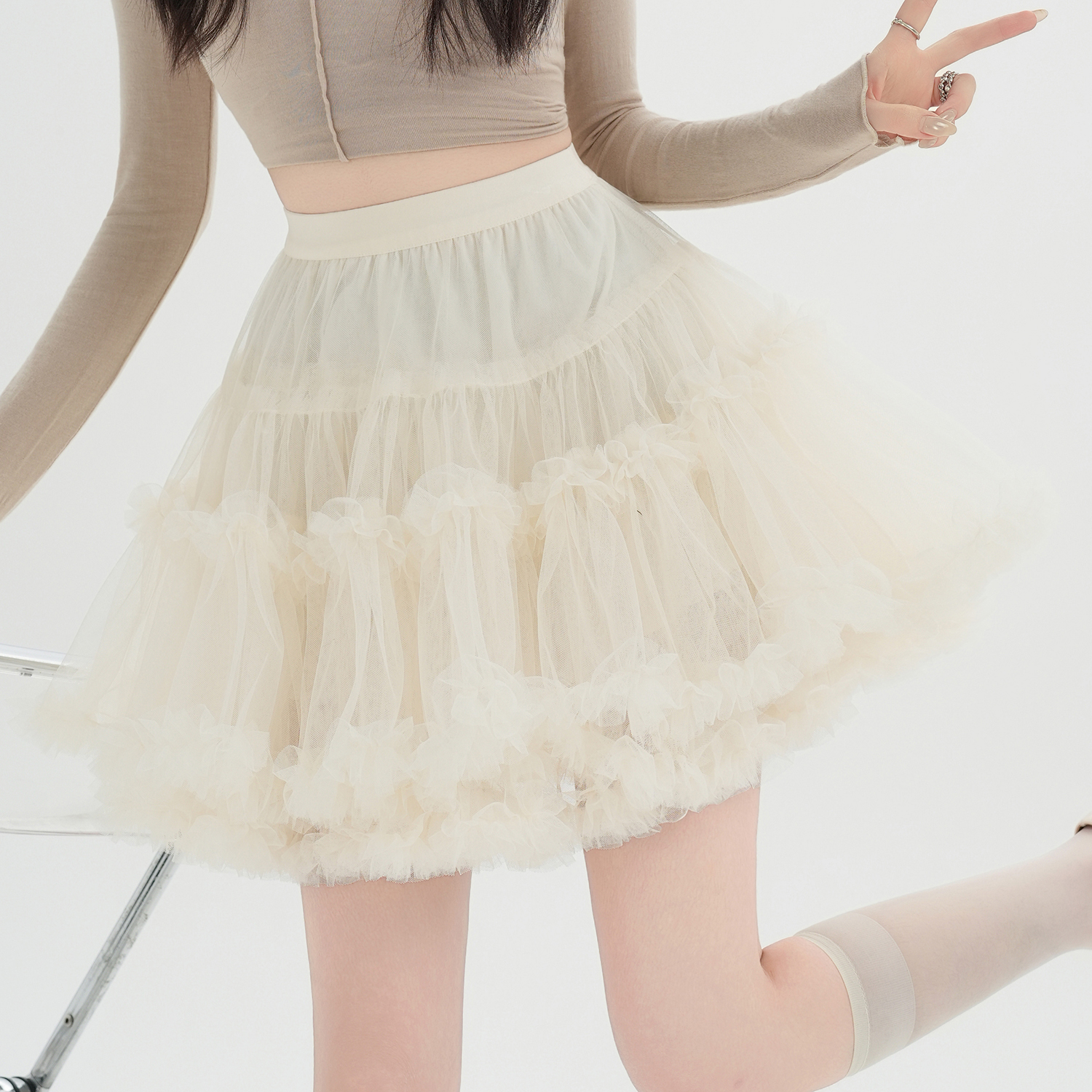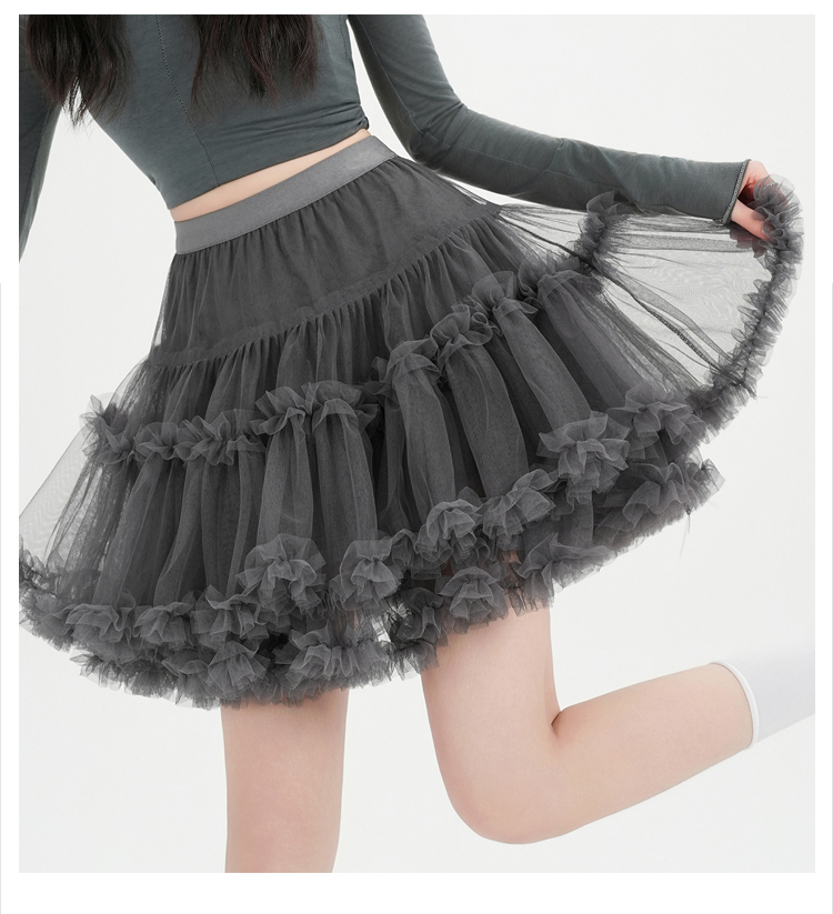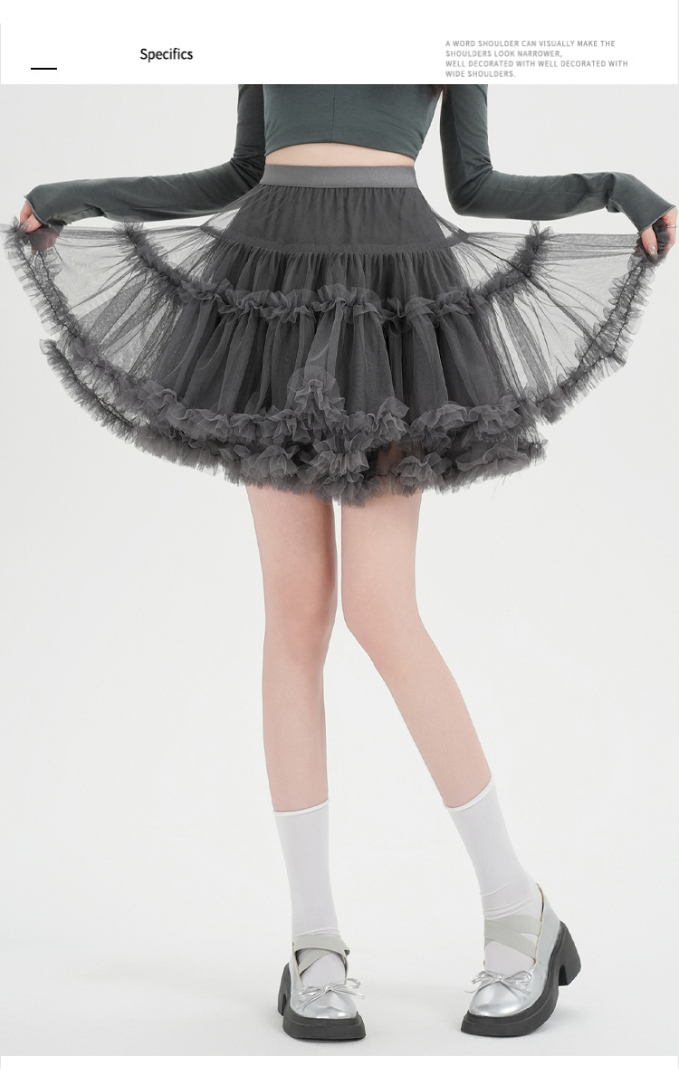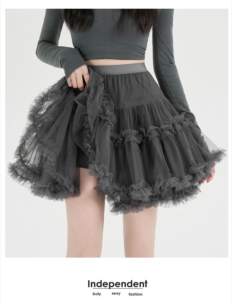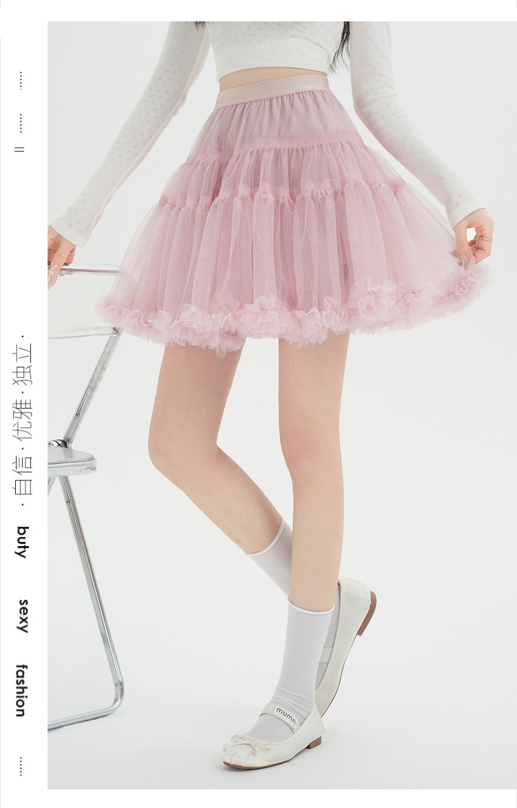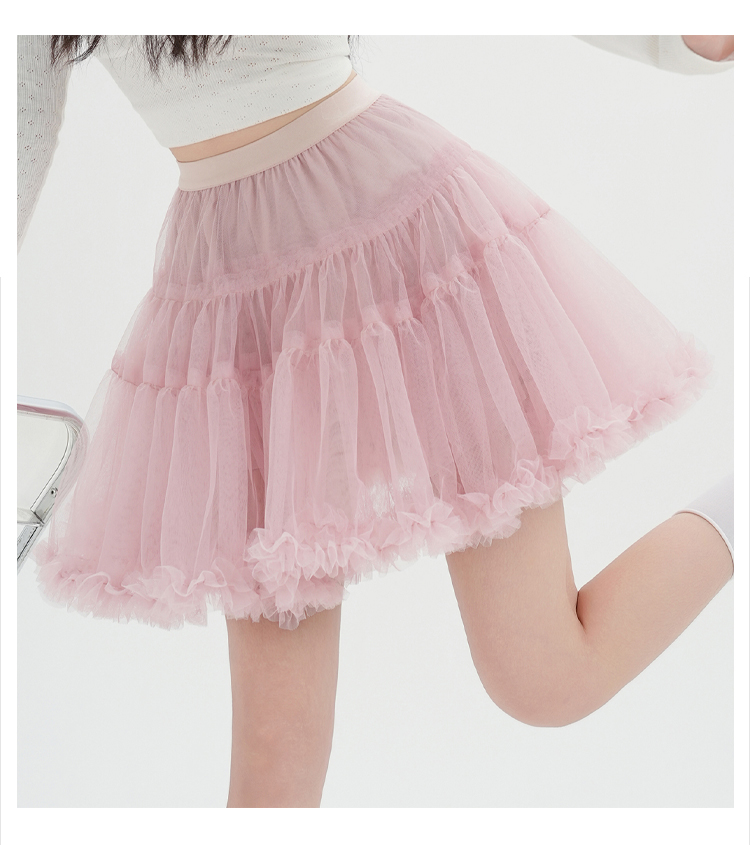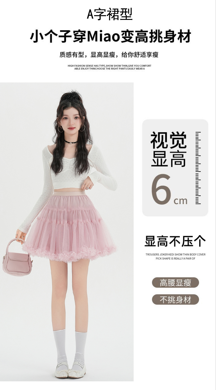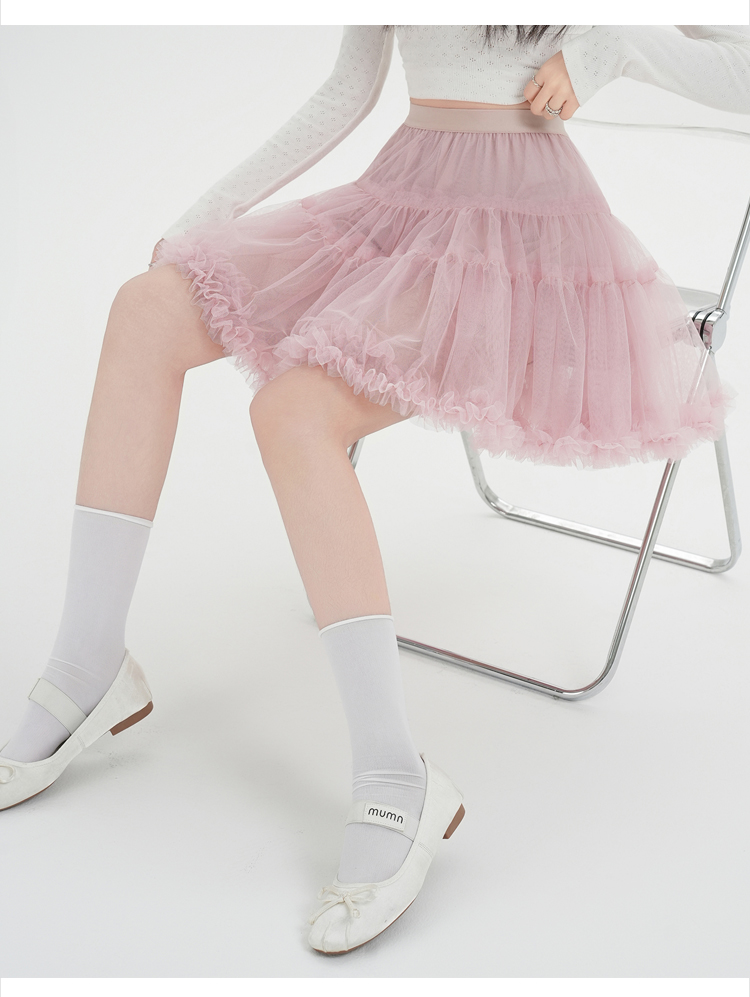 실사 2026 봄 여름 새로운 발레 바람 망사 케이크 드레스 허리밴드 퍼프 프릴 미니 스커트 A라인 스커트