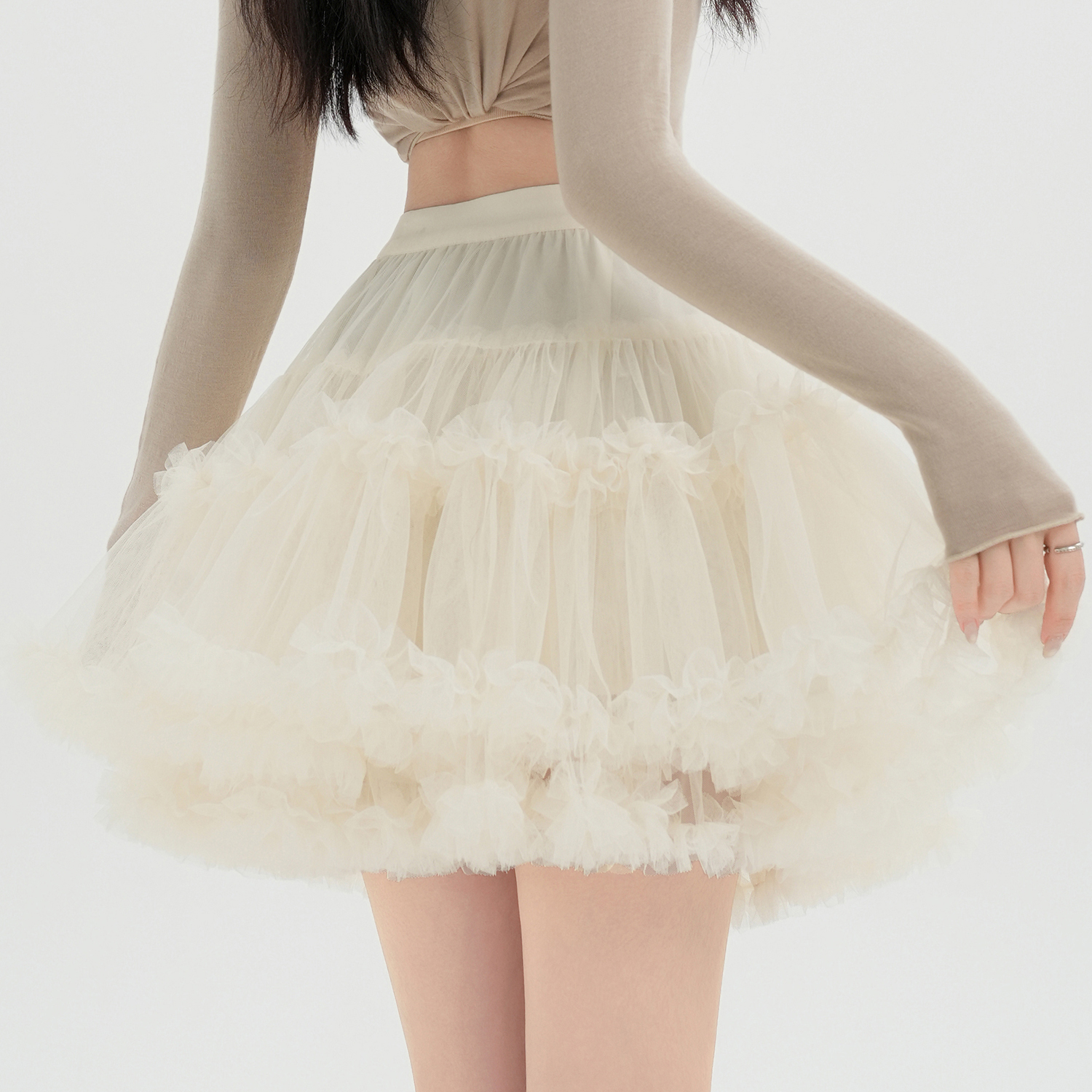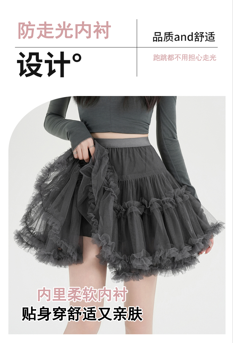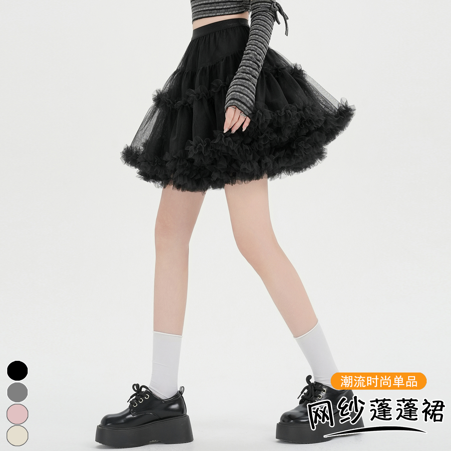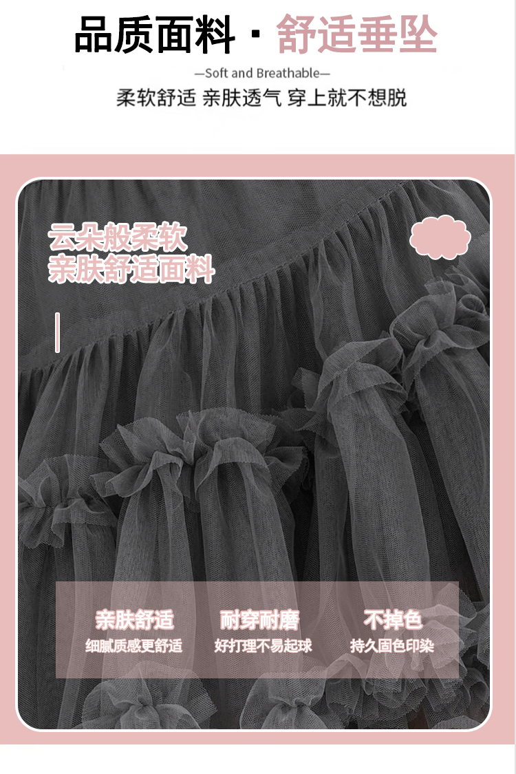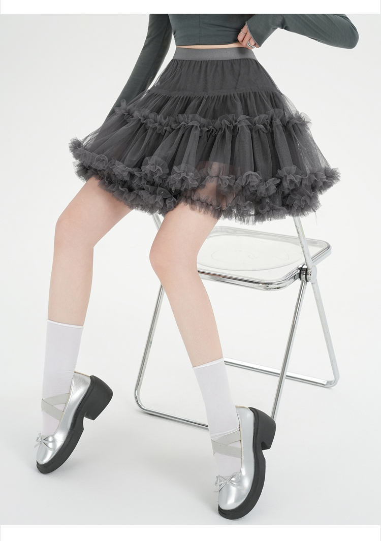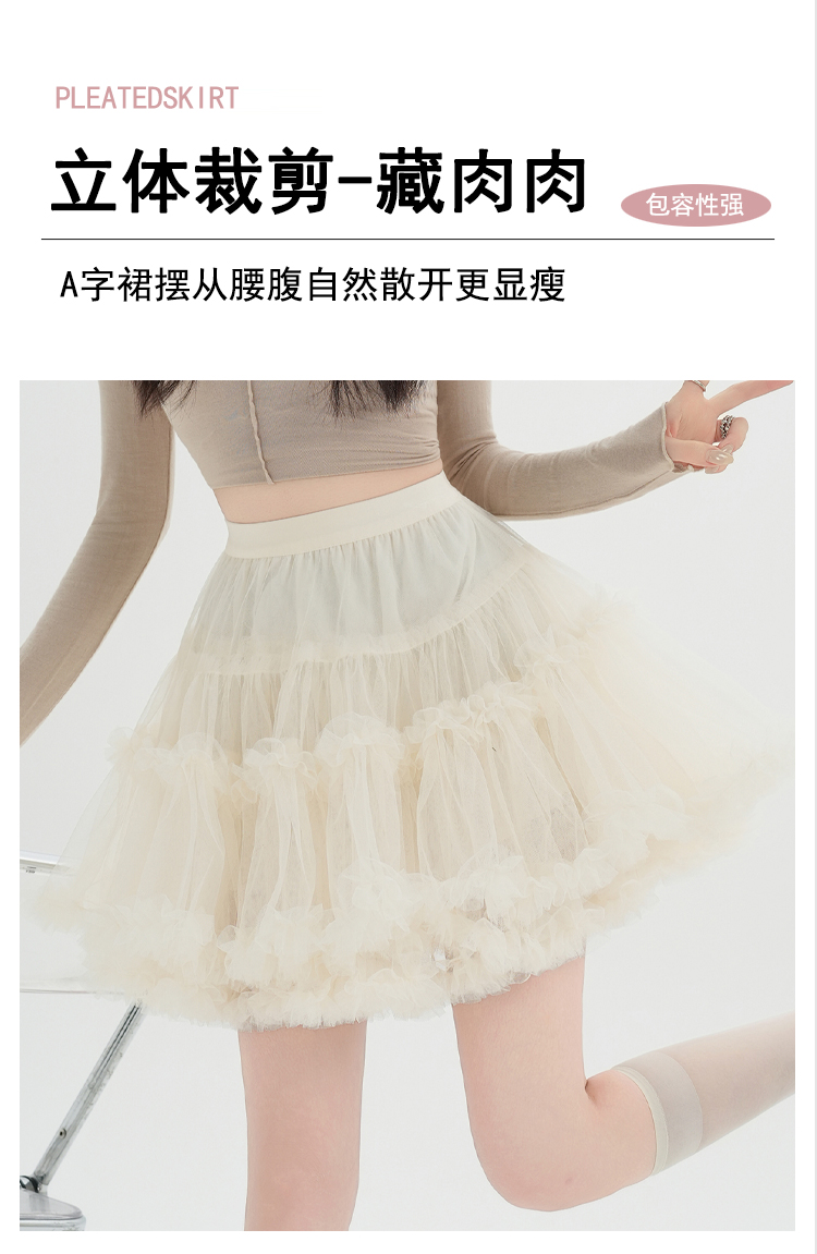 실사 2026 봄 여름 새로운 발레 바람 망사 케이크 드레스 허리밴드 퍼프 프릴 미니 스커트 A라인 스커트
