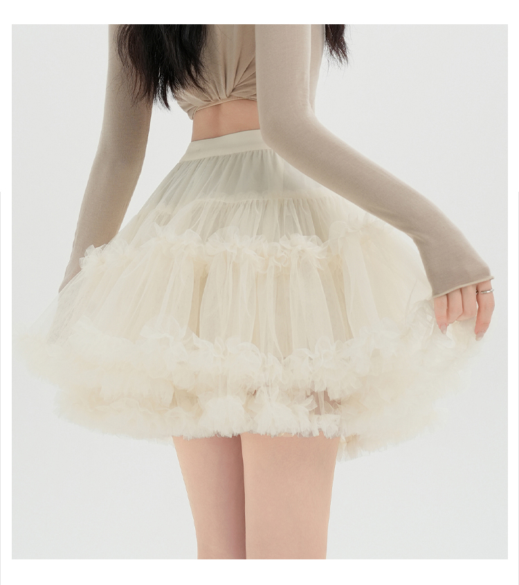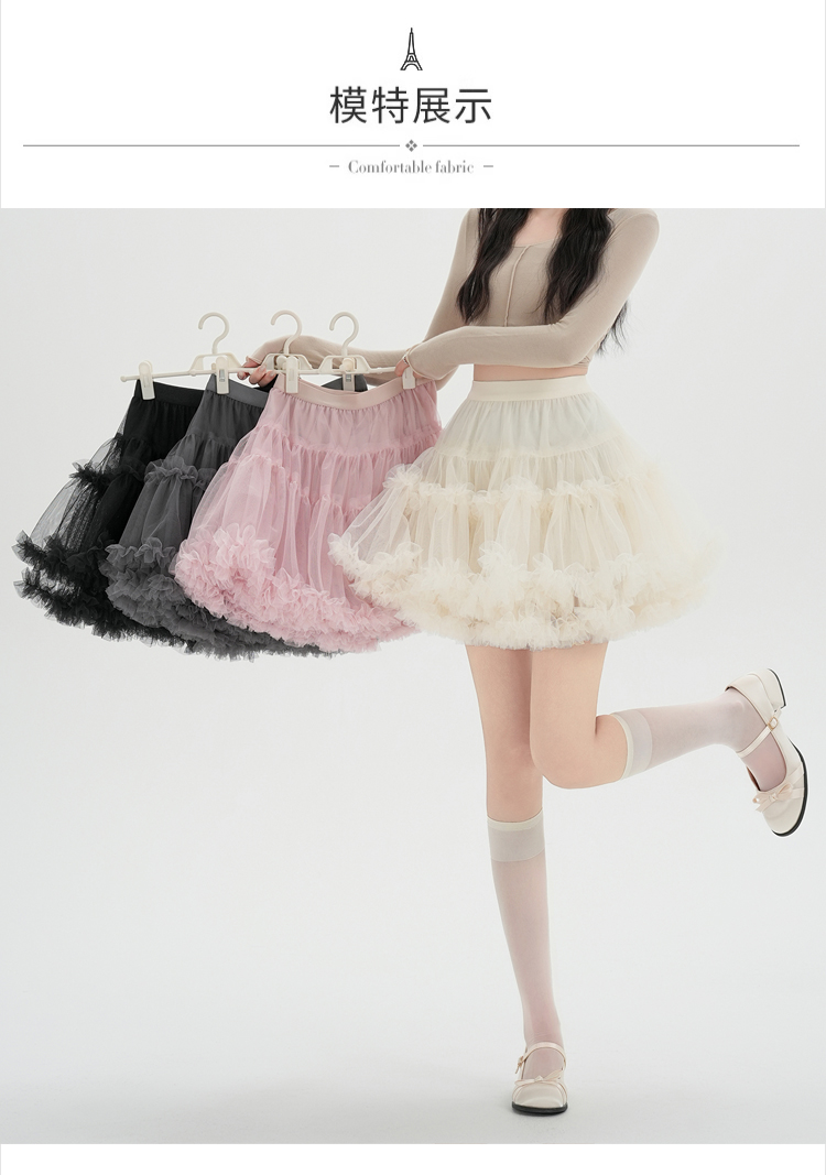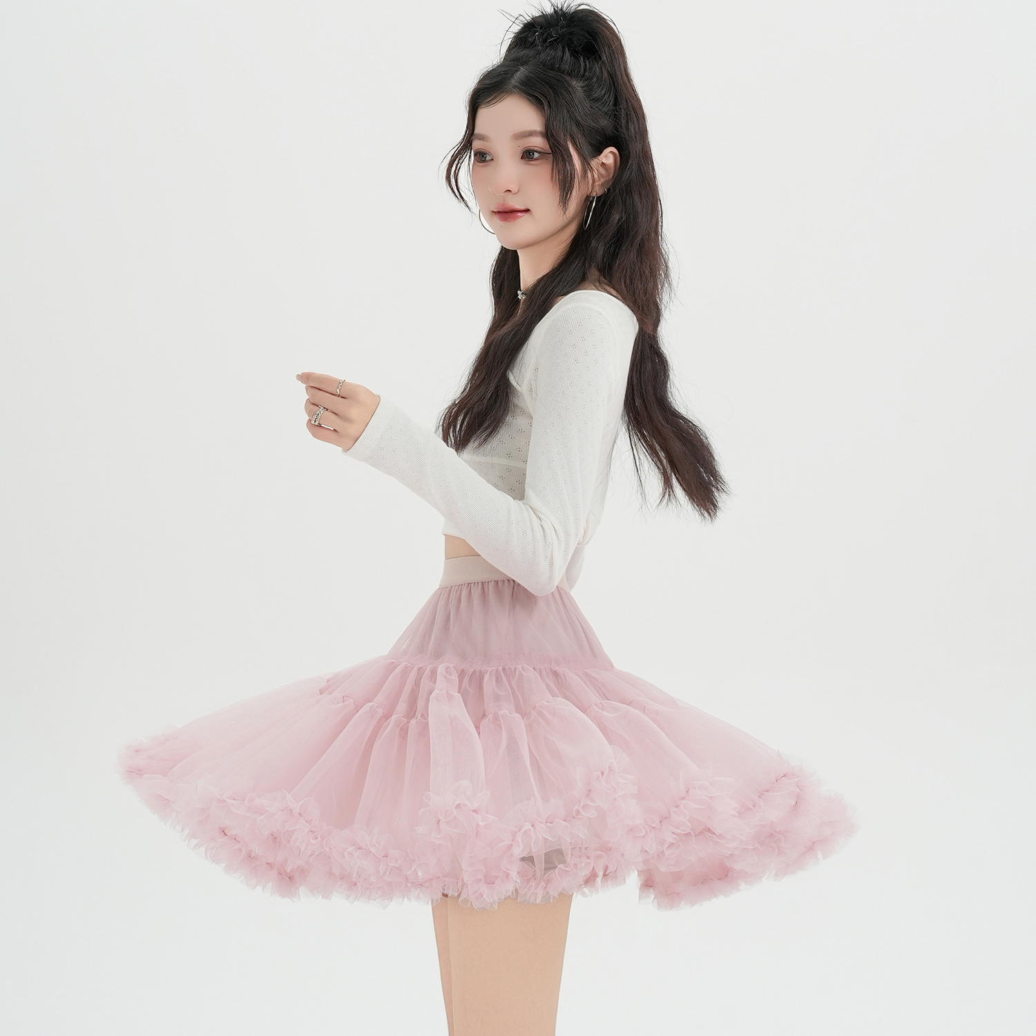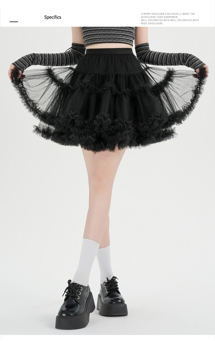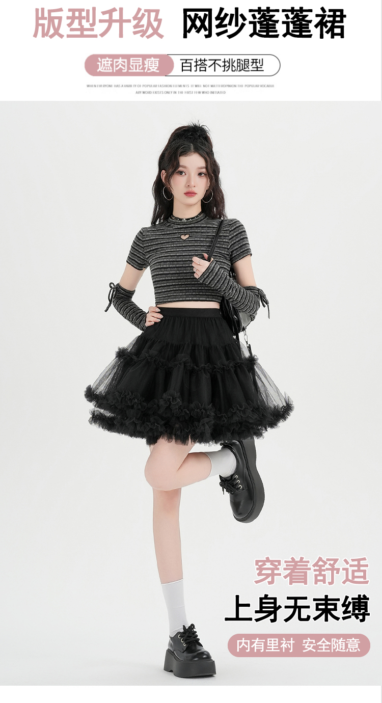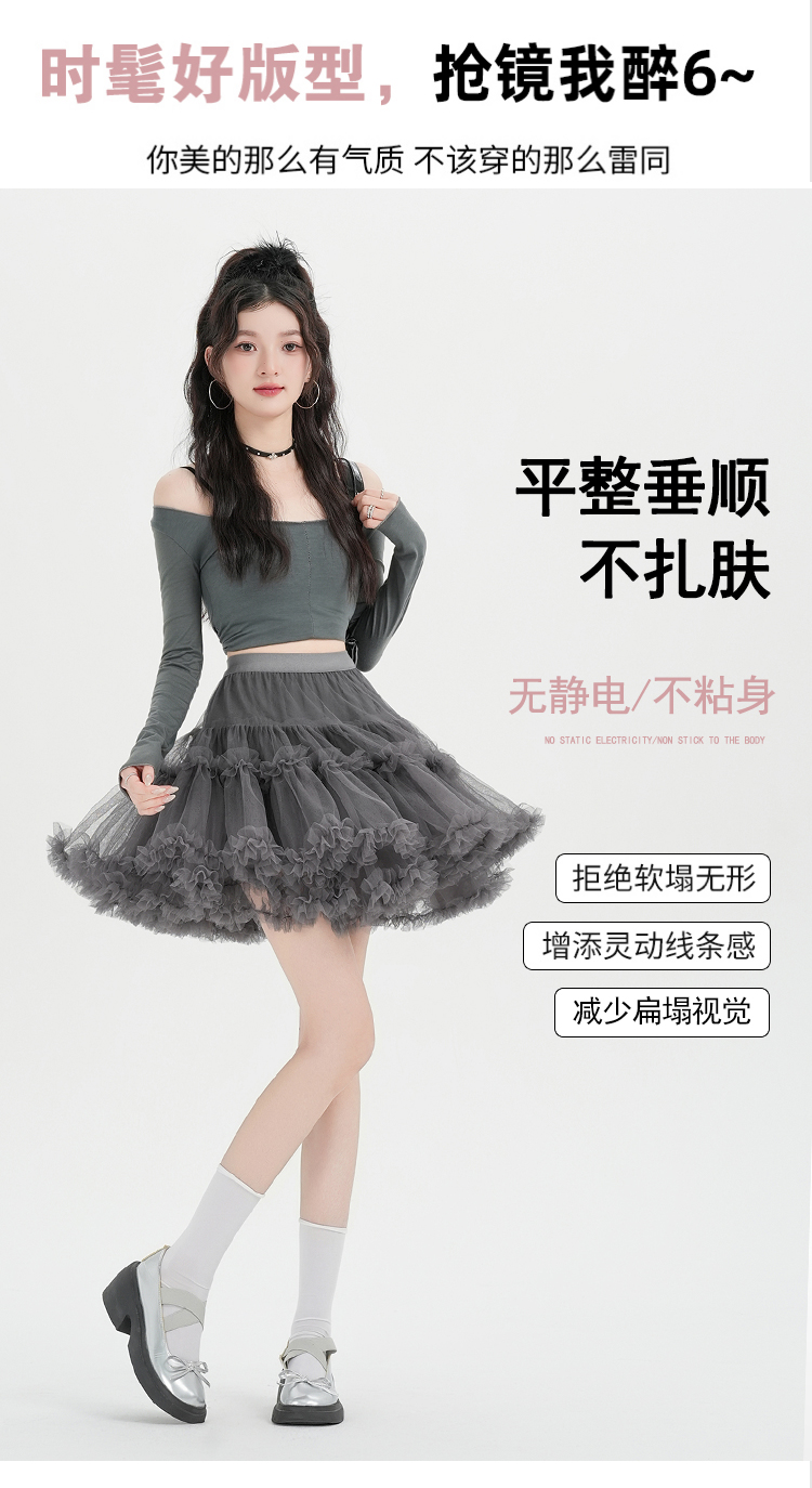 실사 2026 봄 여름 새로운 발레 바람 망사 케이크 드레스 허리밴드 퍼프 프릴 미니 스커트 A라인 스커트