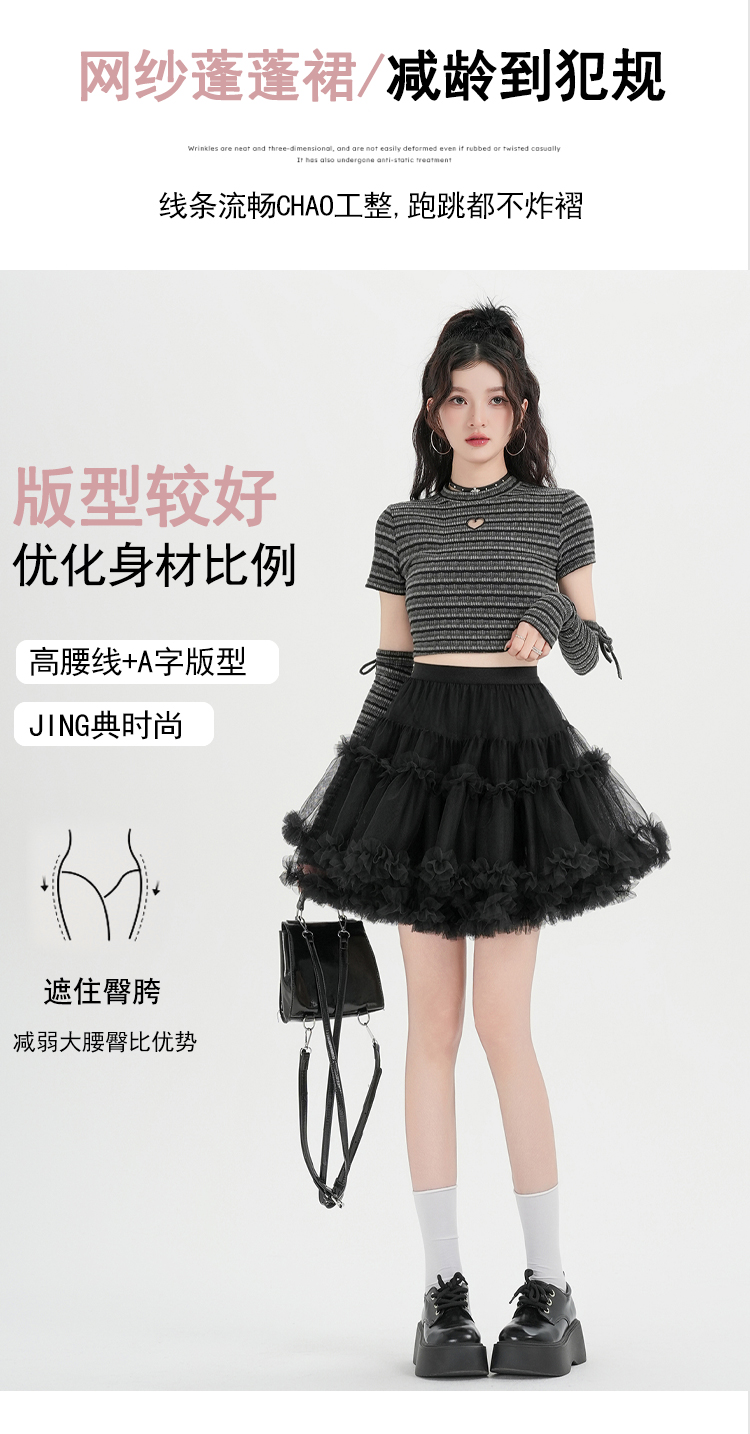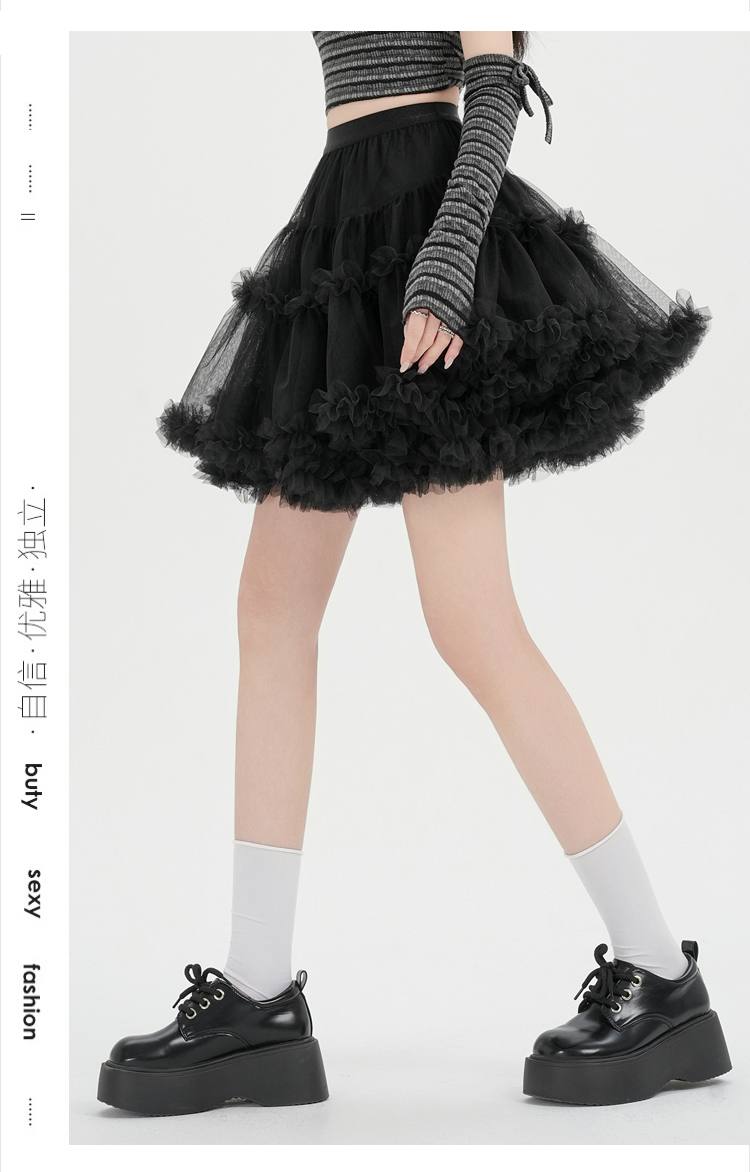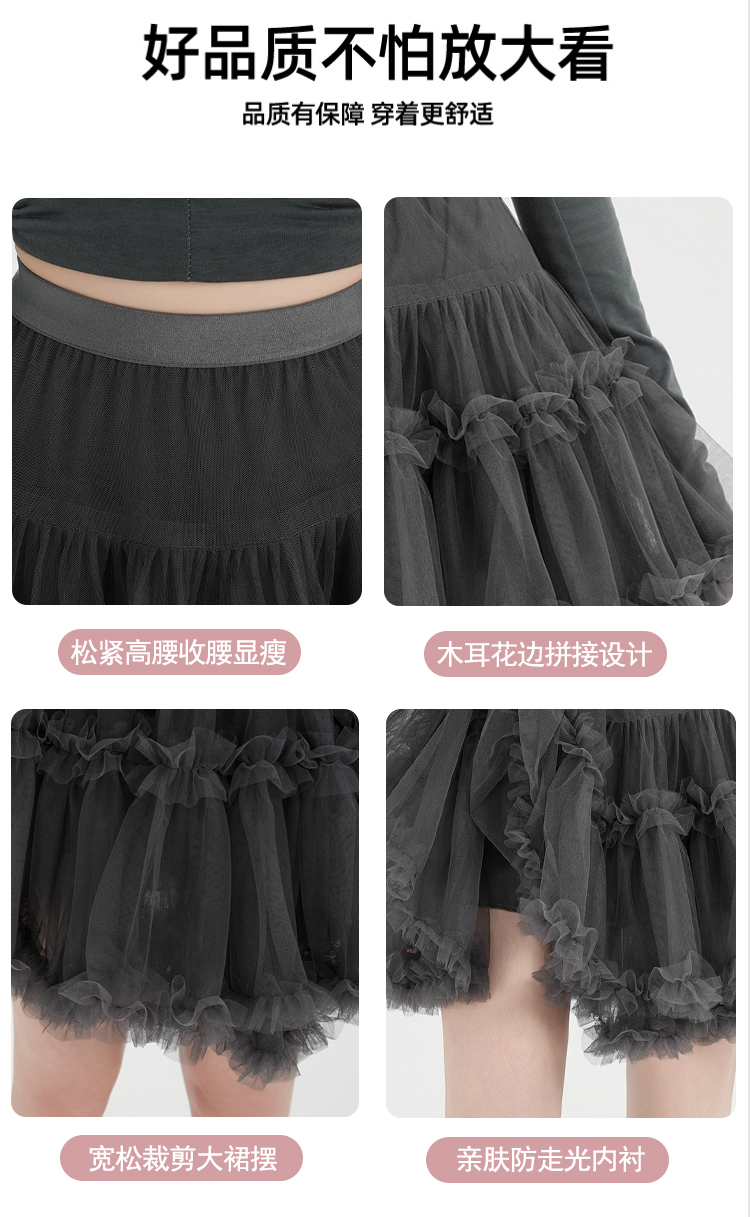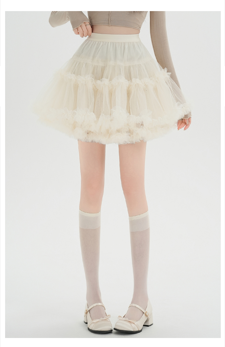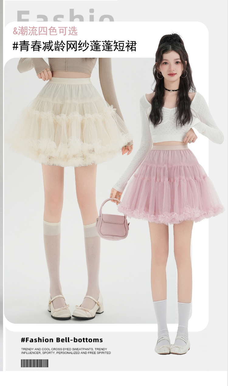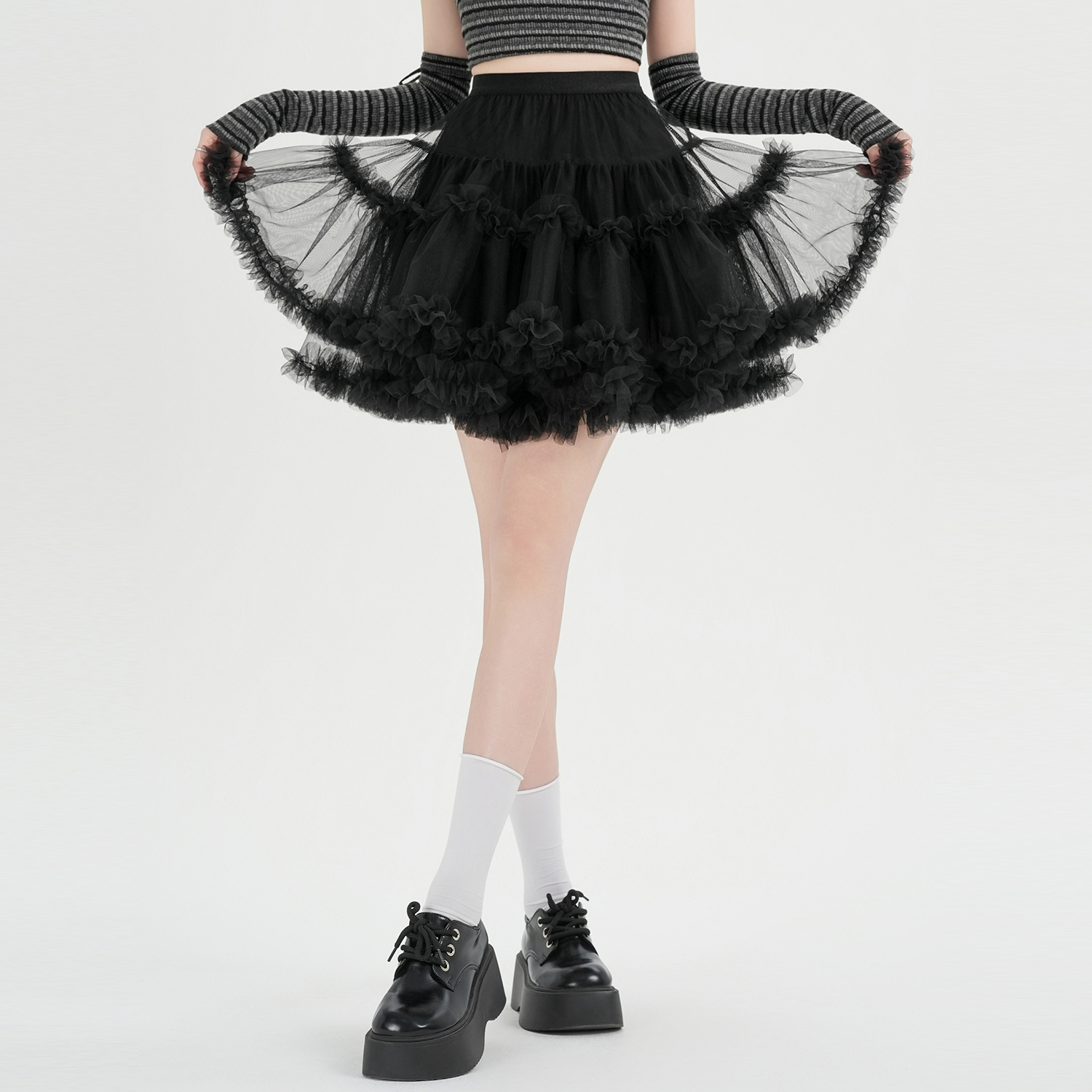 실사 2026 봄 여름 새로운 발레 바람 망사 케이크 드레스 허리밴드 퍼프 프릴 미니 스커트 A라인 스커트