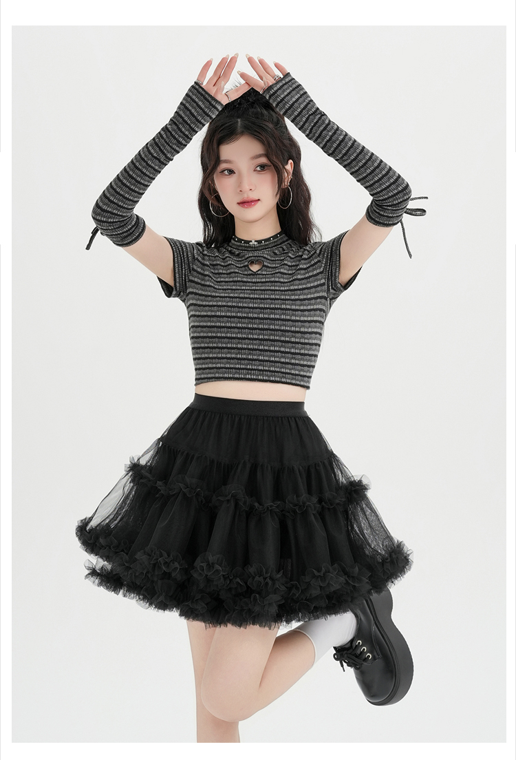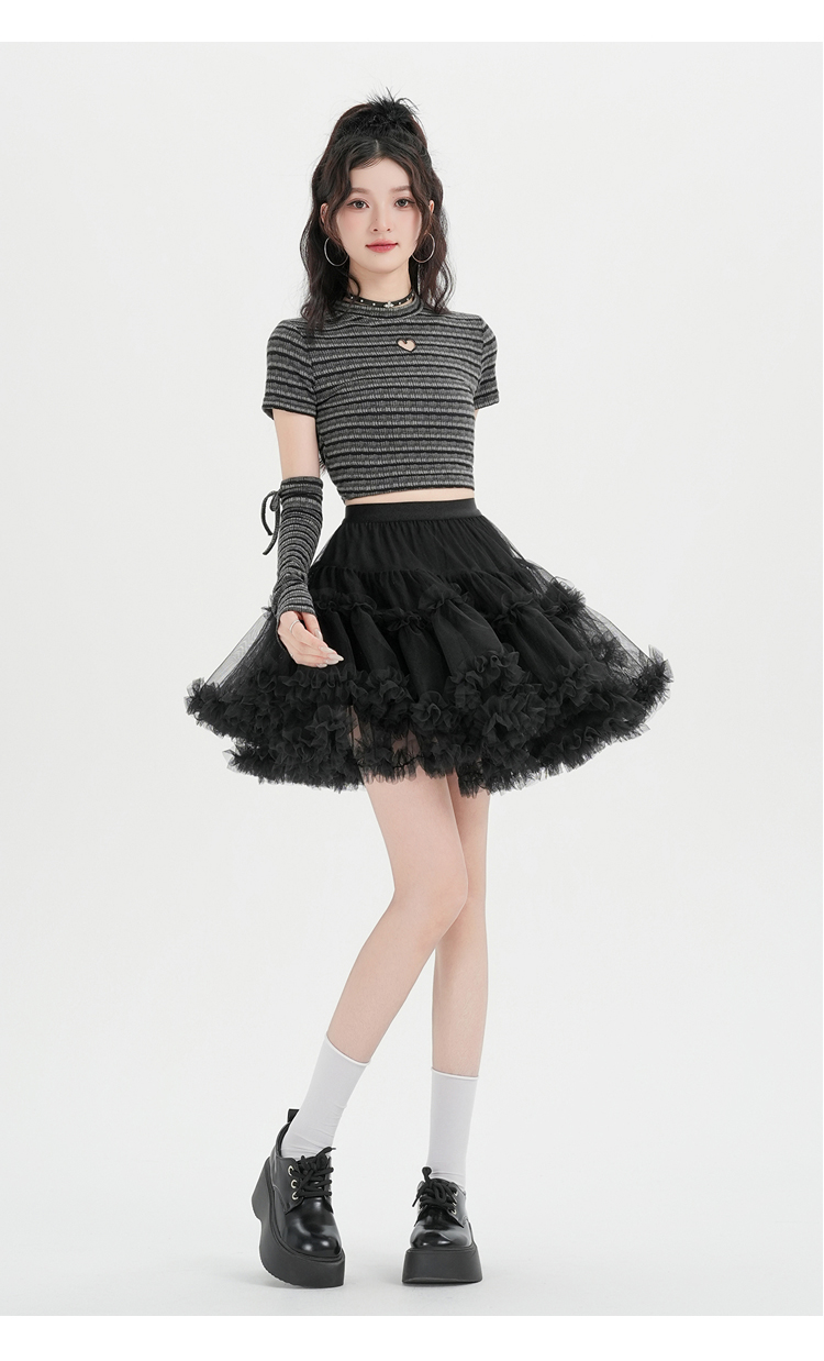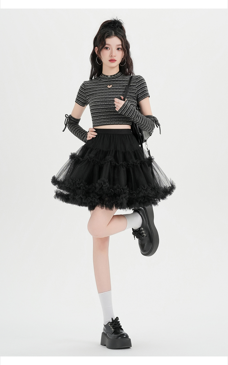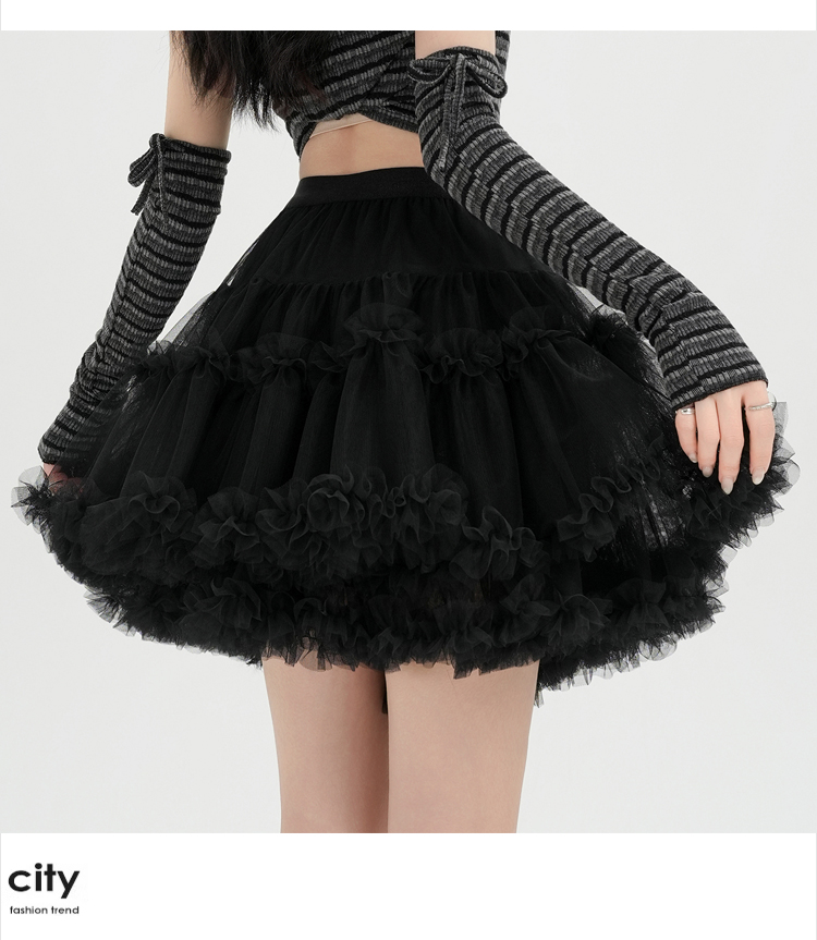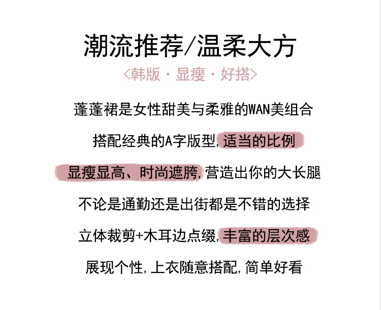 실사 한국 스타일 다용도 슬림해 보이는 케이크 드레스 표지 십자가 프릴 중간 스커트 한 마디 반신 스커트