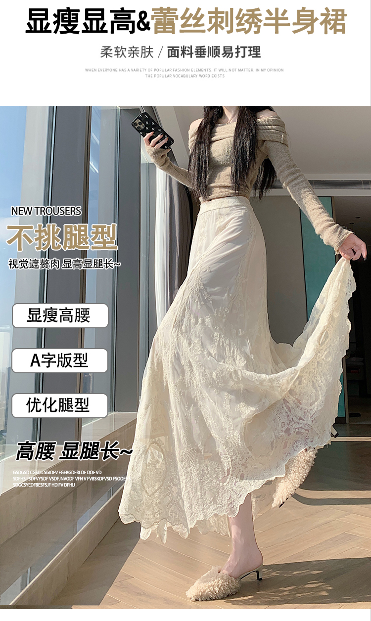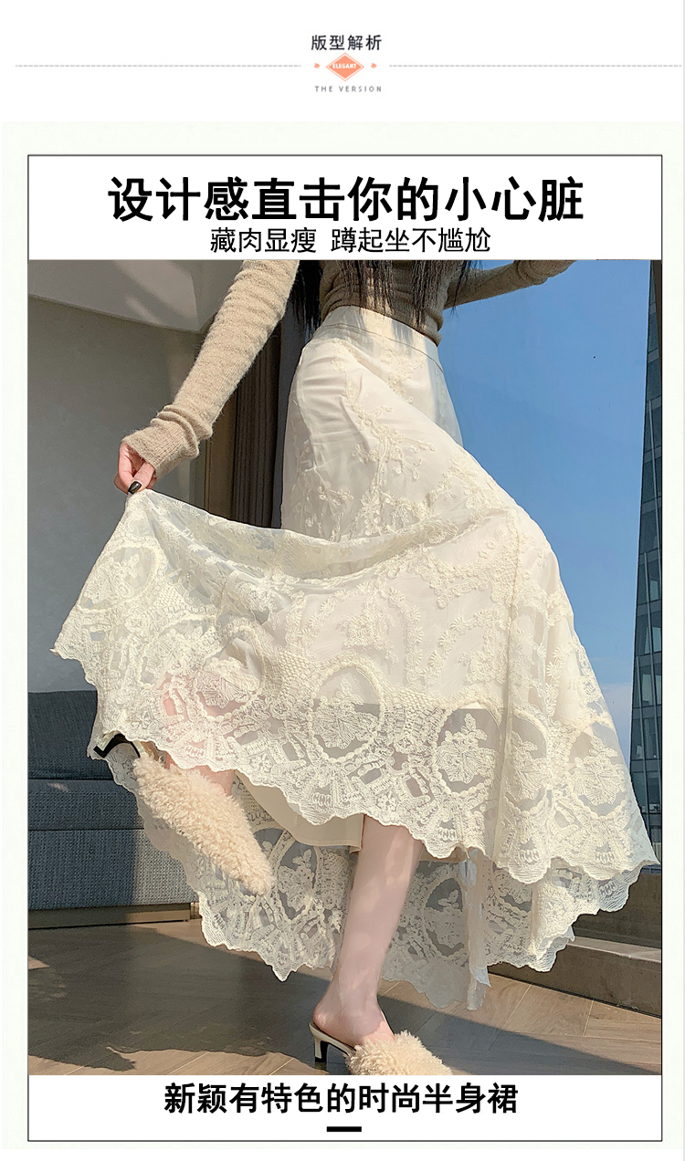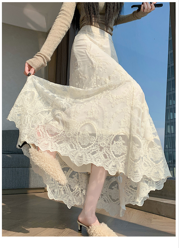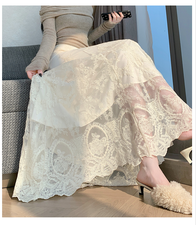 실사 불규칙 패치워크 프릴 반신 스커트 봄 여름 새로운 슬림해 보이는 다용도 레이스 케이크 롱 스커트 A라인 스커트